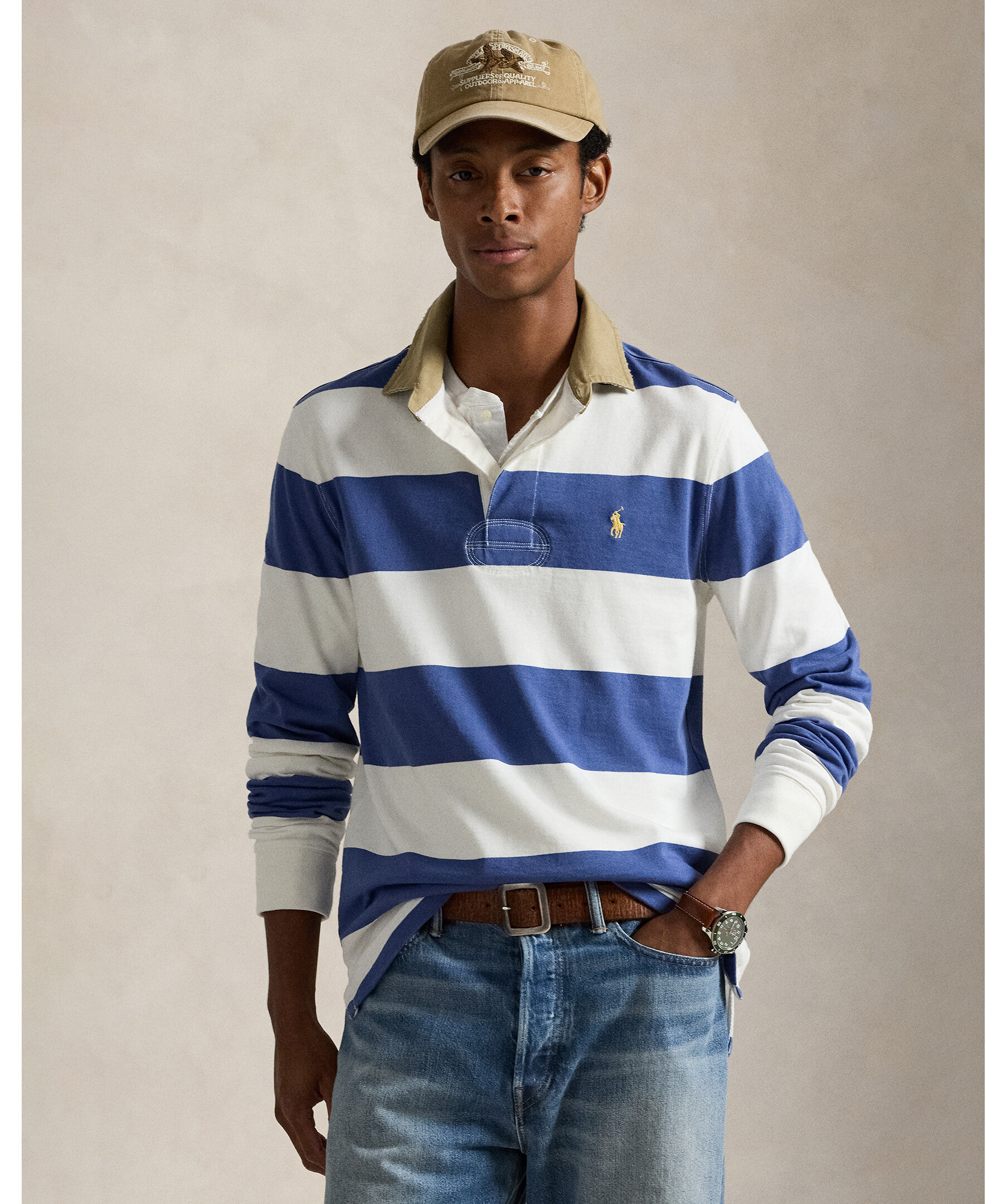 Rugby‑inspirerad långärmad tröja från Polo Ralph Lauren med klassisk krage och randigt mönster i Old Royal/Trophy Cream. Tröjan har en regular fit och är tillverkad i mjuk bomullsjersey — ett stilrent och avslappnat basplagg för vardag och preppy looks.