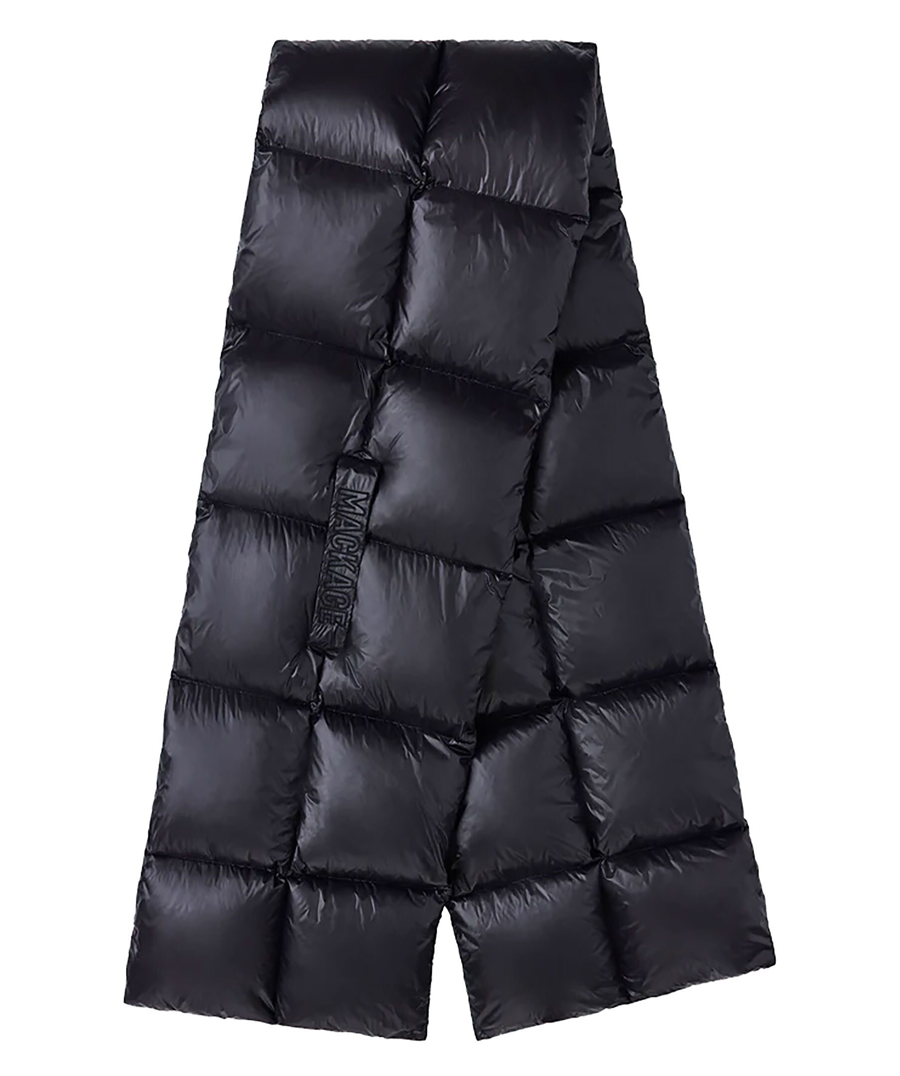 Svart puffig dunhalsduk från Mackage. Överdimensionerad siluett ca 200cm lång och 33cm bred.