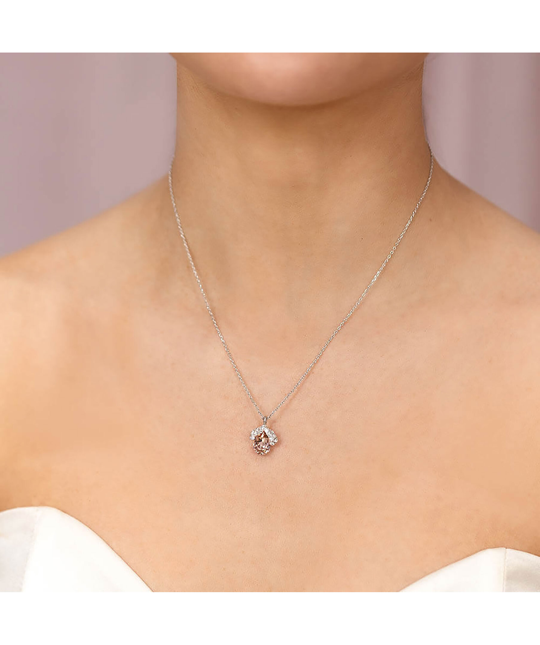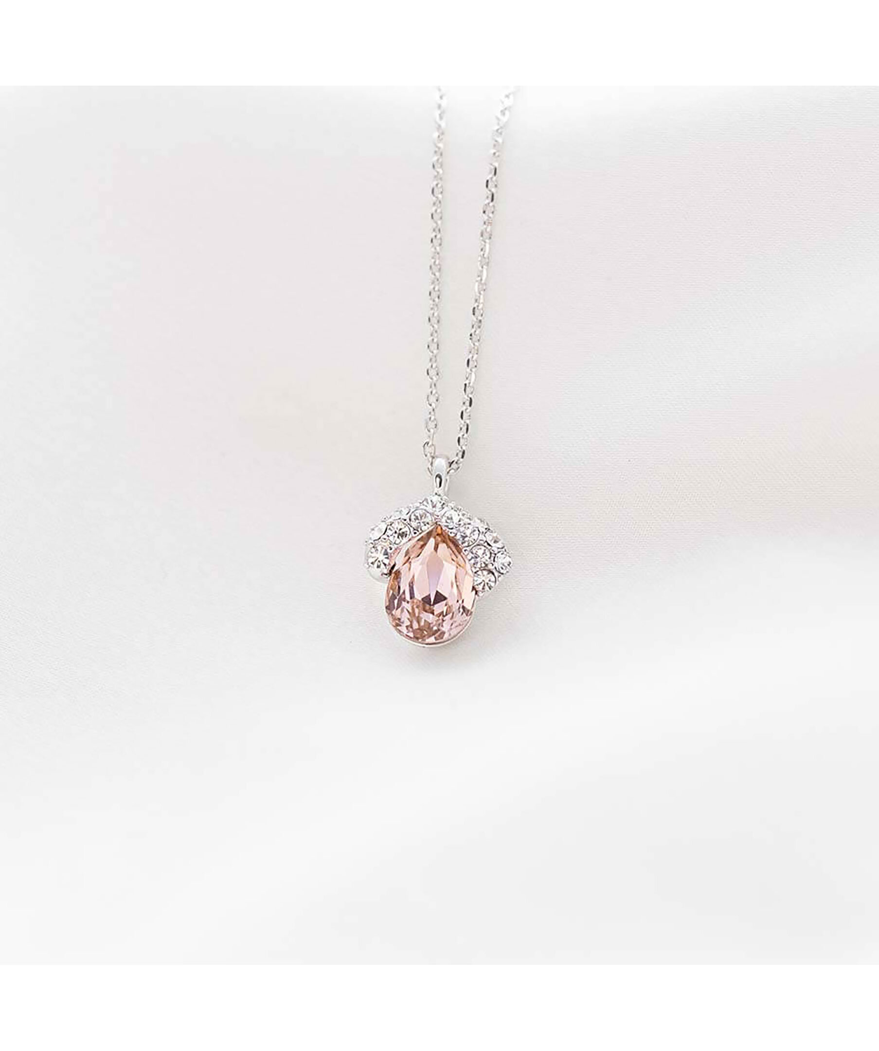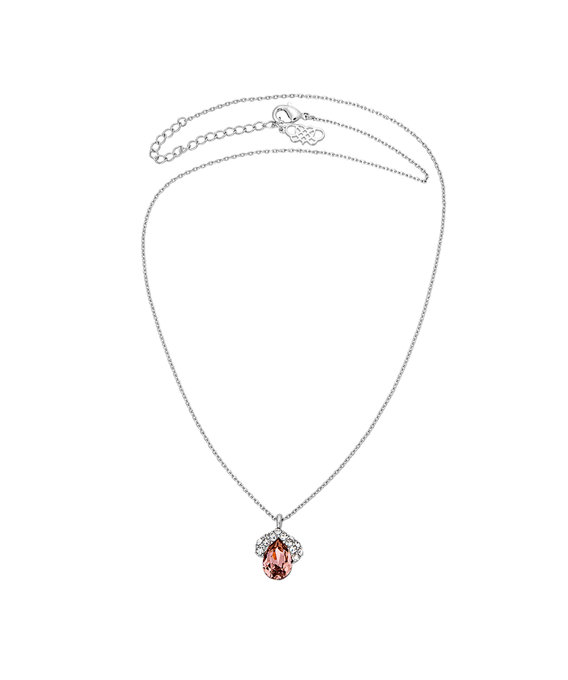 Silverfärgat halsband i mässing från Lily and Rose. En rosa sten som sitter i ett fäste med klara stenar och hänger från en tunn kedja. Längd: 39–45 cm.