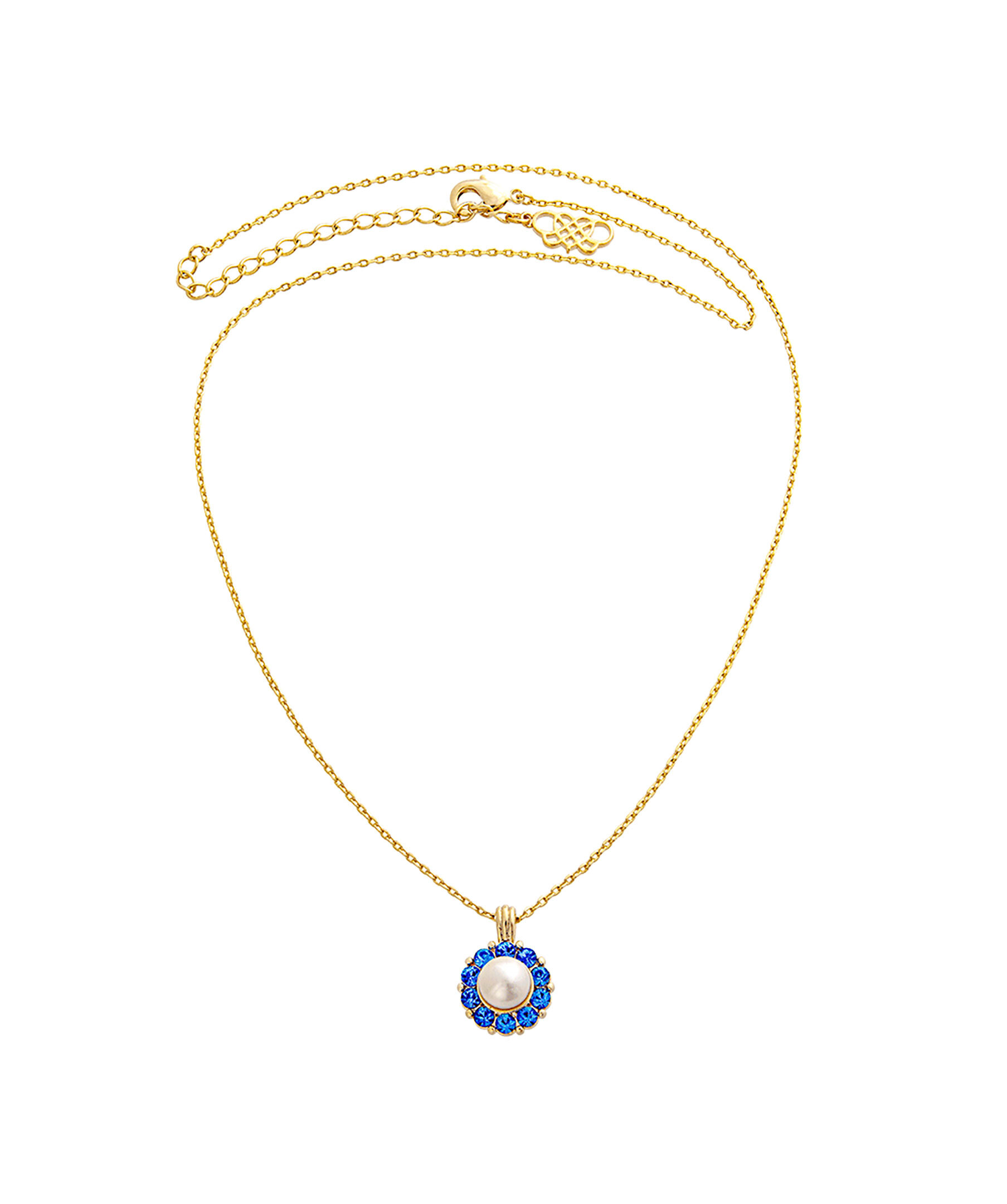 Vackert halsband från Lily And Rose i guldfärgad mässing med fantastiskt fina Swarovski-kristaller och en pärla i mitten.