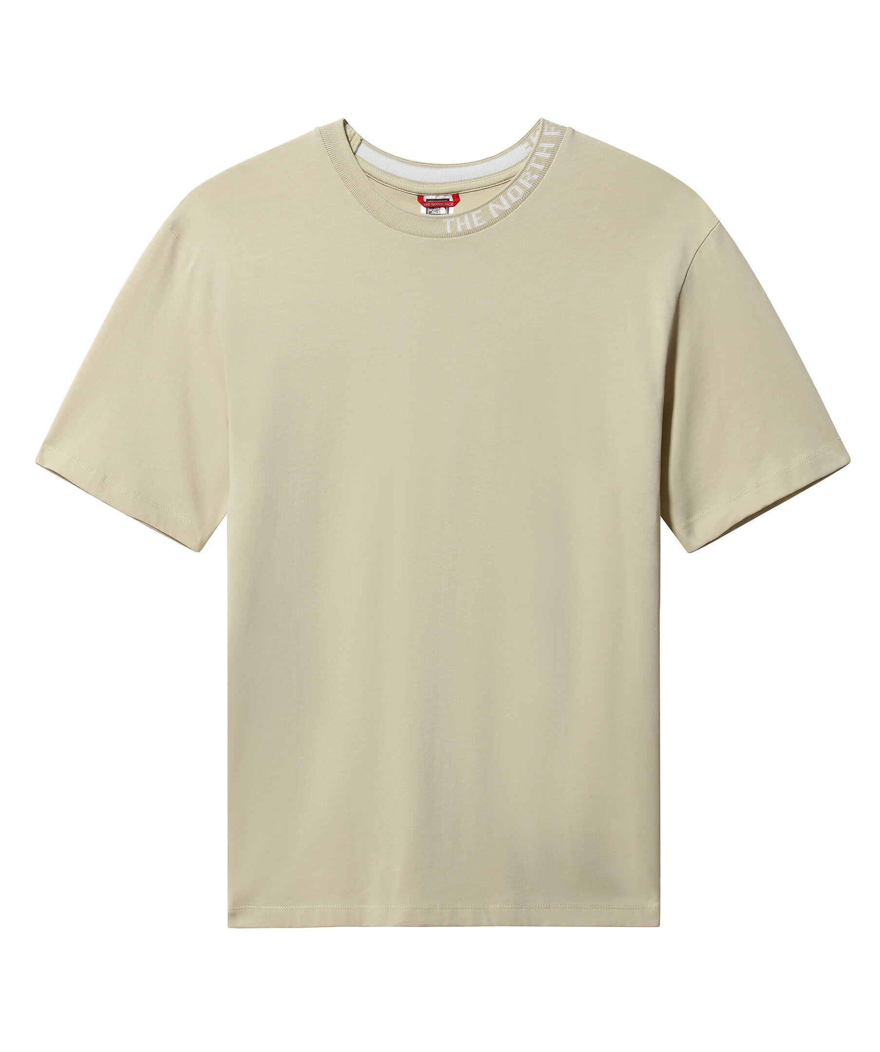 Beige t-shirt från The North Face gjord i 100% mjuk bomull. Ribbstickad halsring med logotyp samt tryckt logotyp på ena axeln. Något droppade axlar.