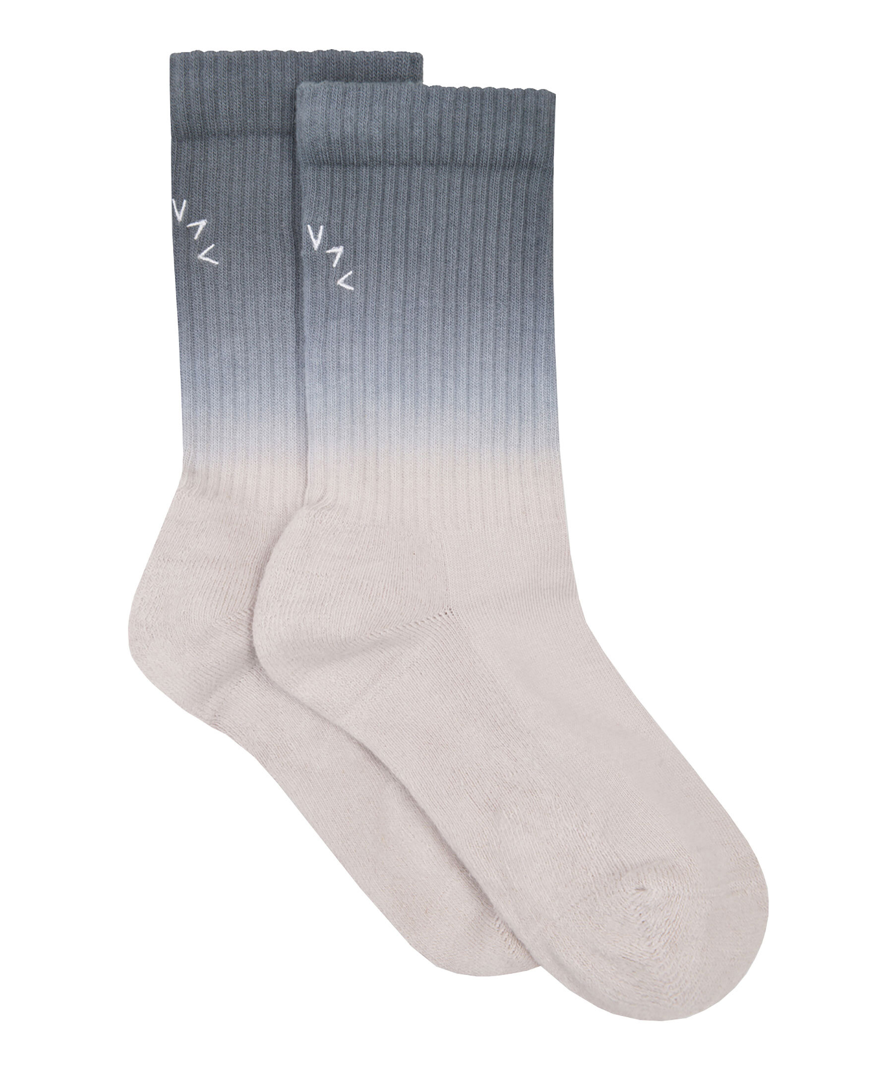 Ombrefärgade strumpor i grått och blått i bomullsblandning från Varley. Tillverkad i stretchig bomullsblandning. Mjuka och bekväma och slutar lite högre upp på ankeln. Broderad med Varley-logotyp baktill och har en vadderad tå och fotbädd samt ett fint ribbad ben.