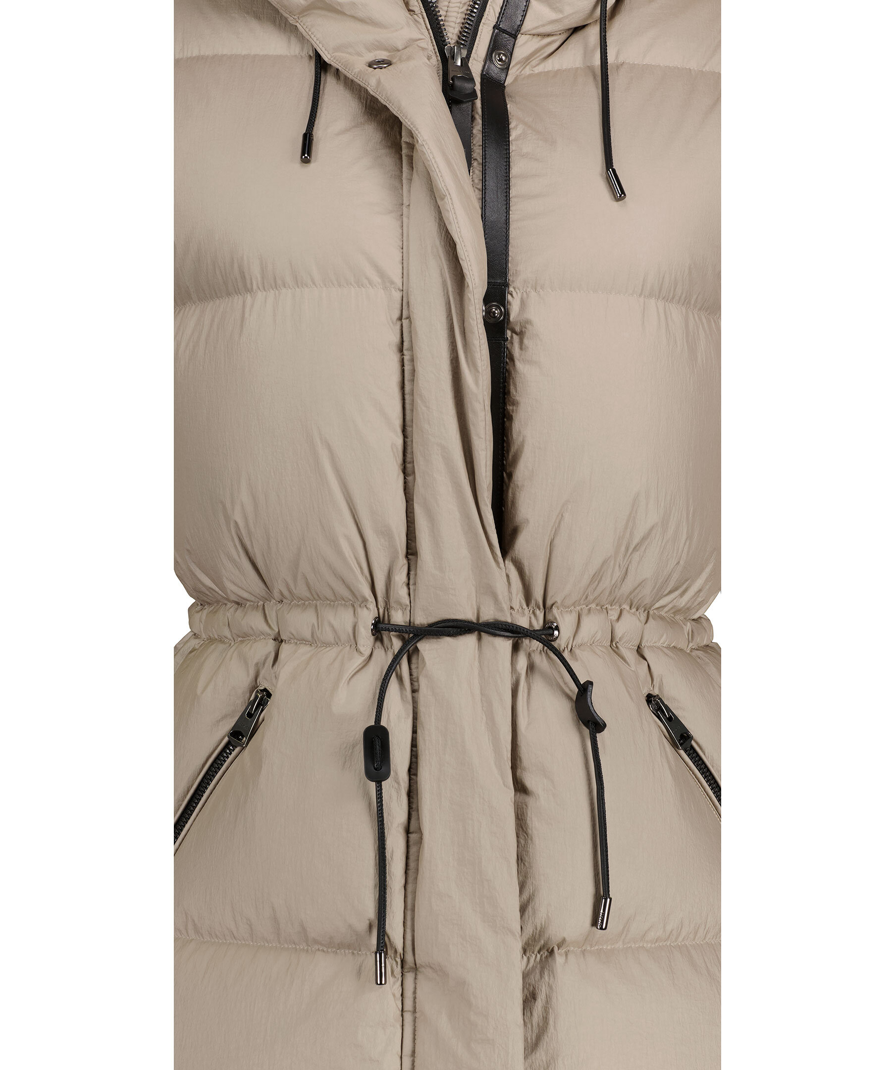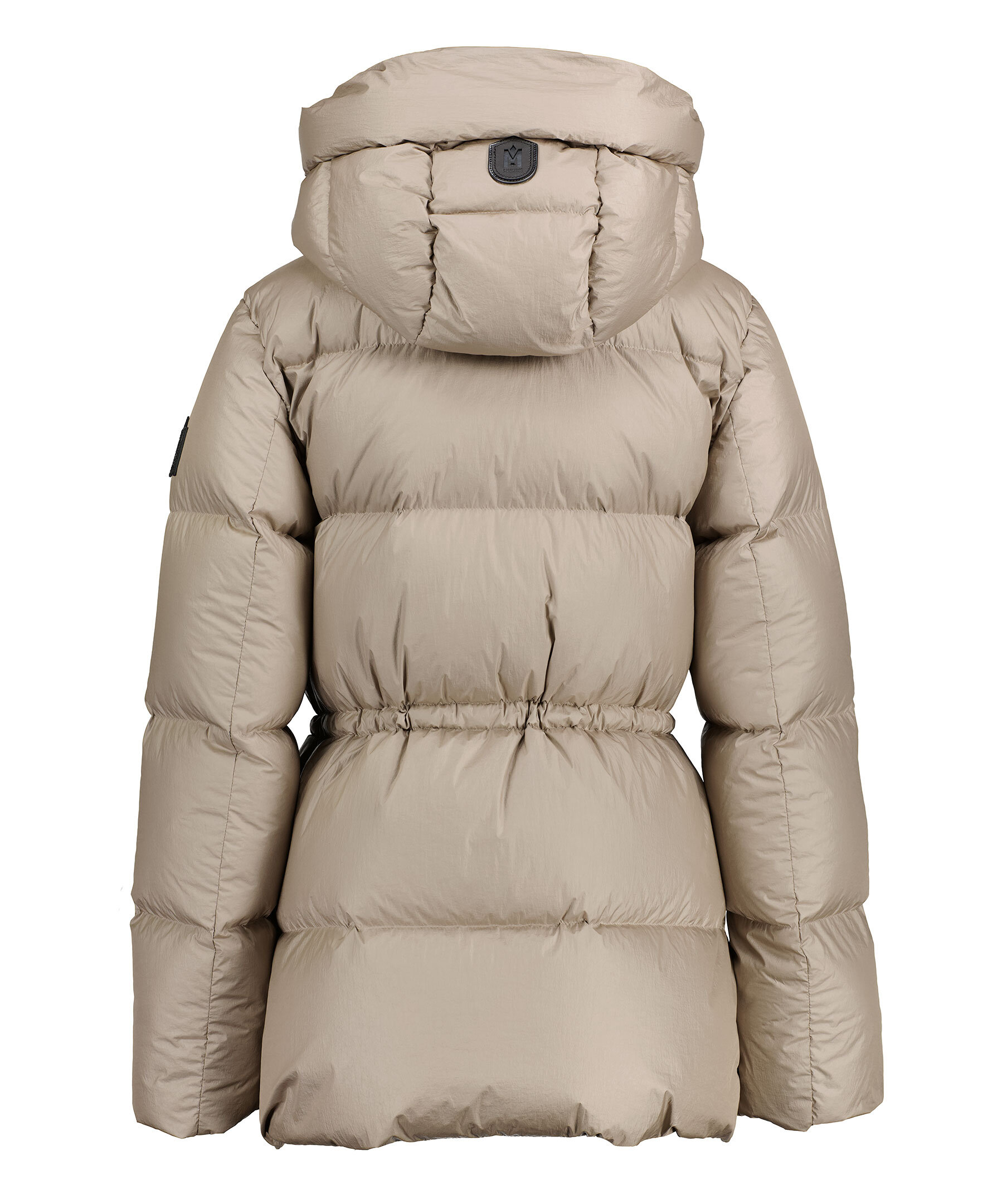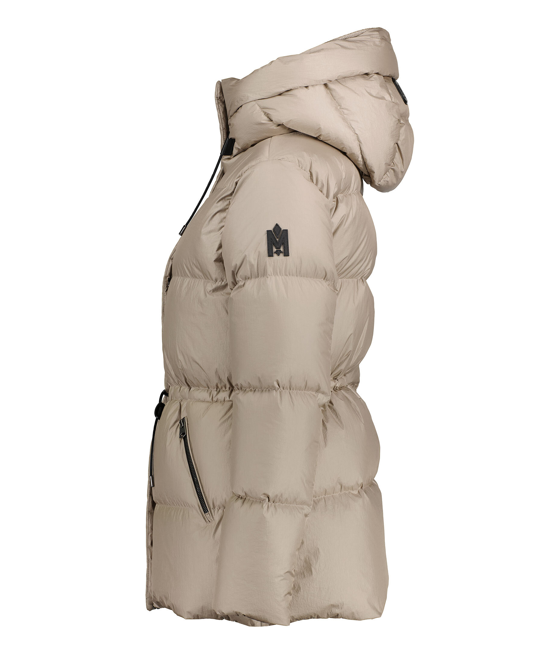 Beige quiltad jacka från Mackage. Stängs framtill med dragkedja. Avtagbar luva med dragsko. Snedställda fickor som stängs med dragkedja. Gummerad logotyp på vänster ärm. Ribbstickade muddar vid ärmslut.