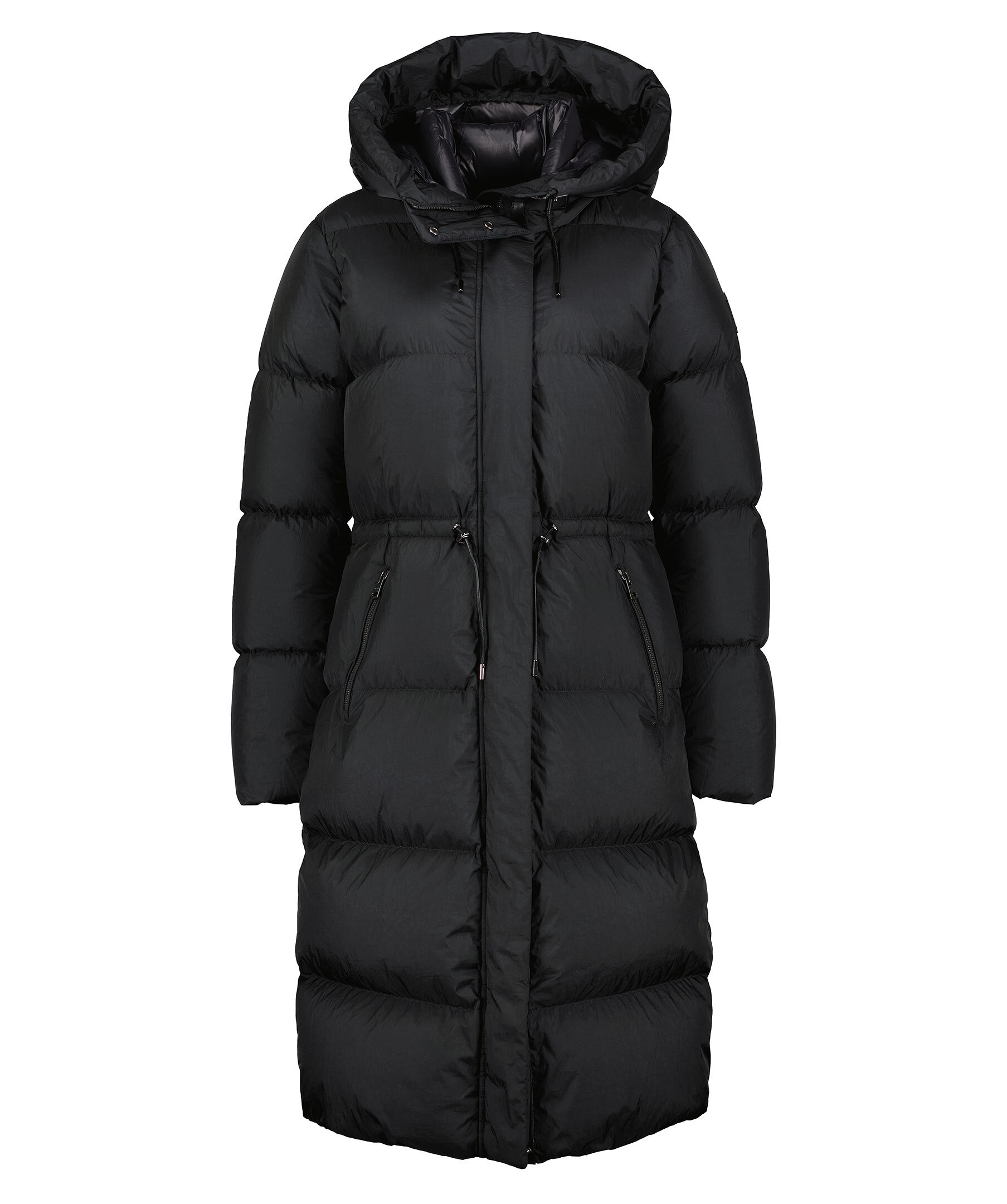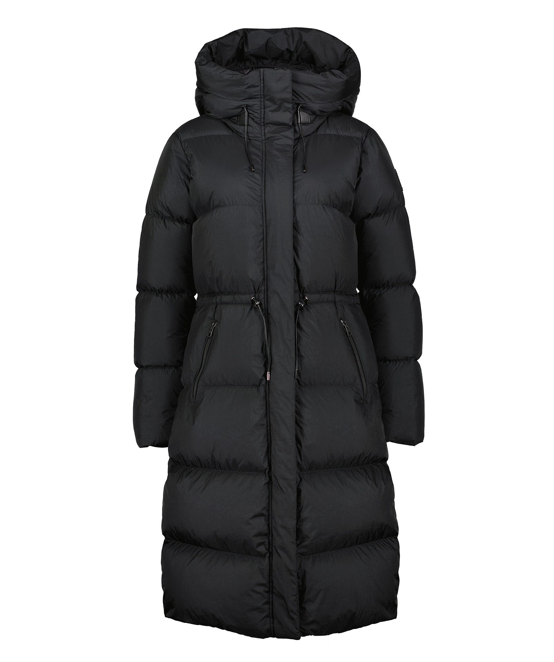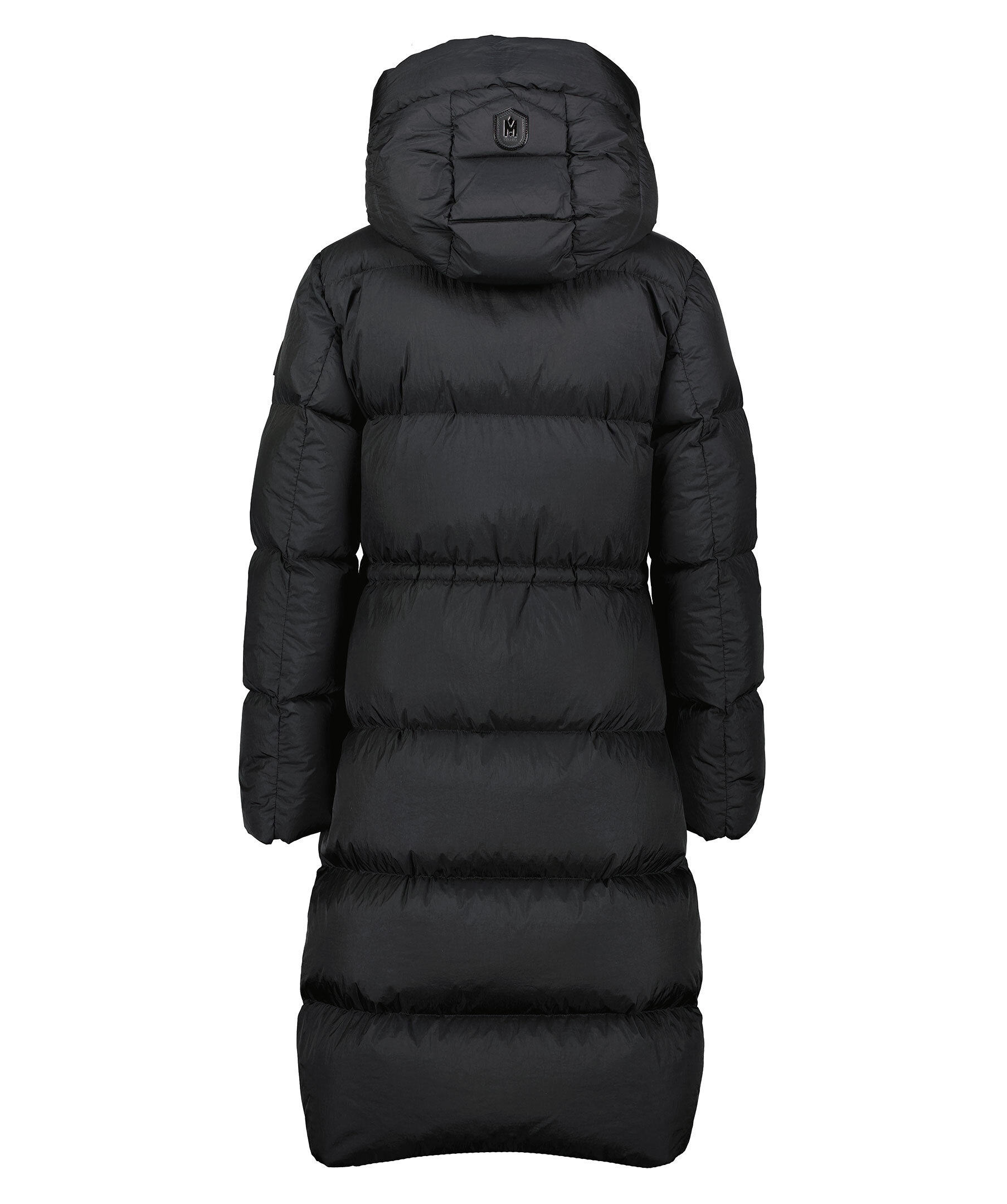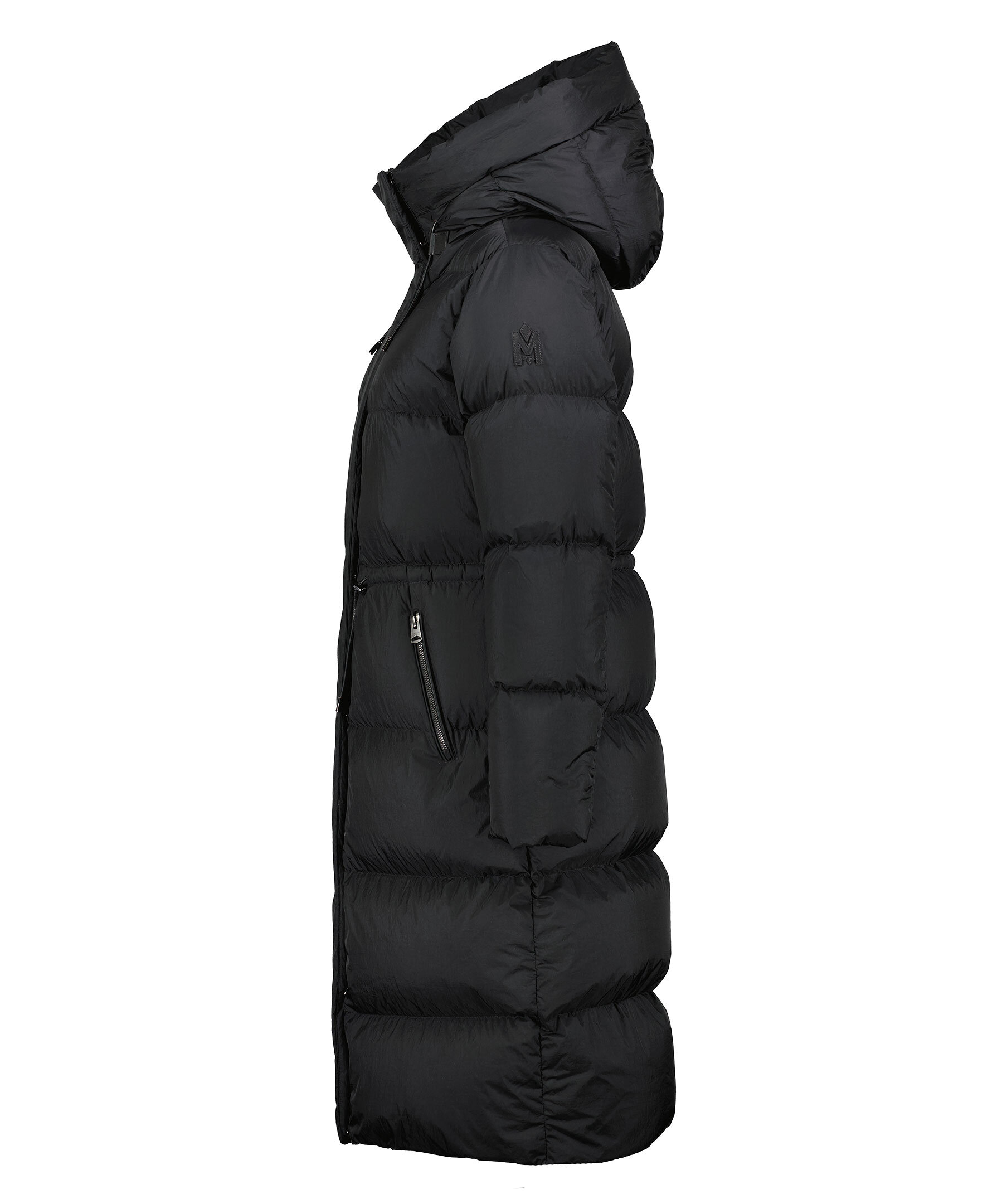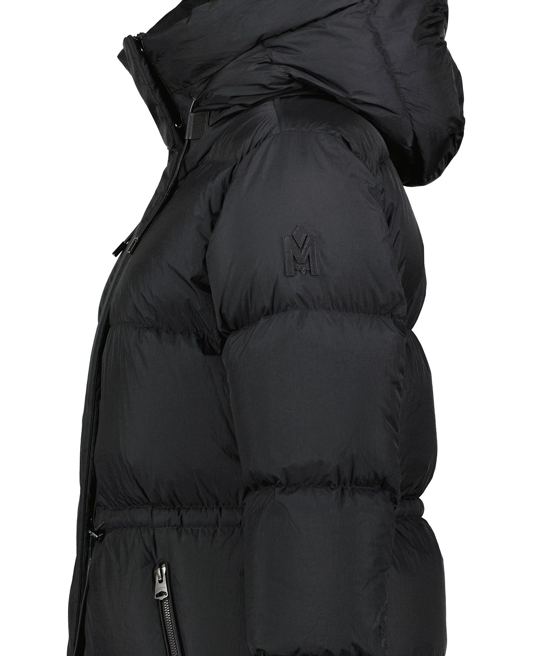 Svart dunkappa från Mackage. Stängs framtill med tvåvägsdragkedja och tryckknappar. Dragsko i midjan och i luvan. Två snedställda fickor framtill som stängs med dragkedja. Innerficka med dragkedja. Patch med logotyp i läder på vänster ärm.