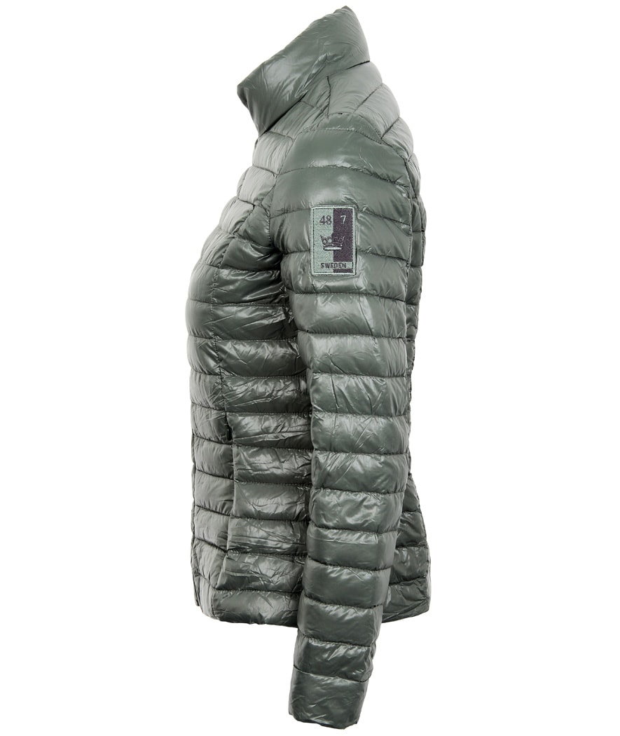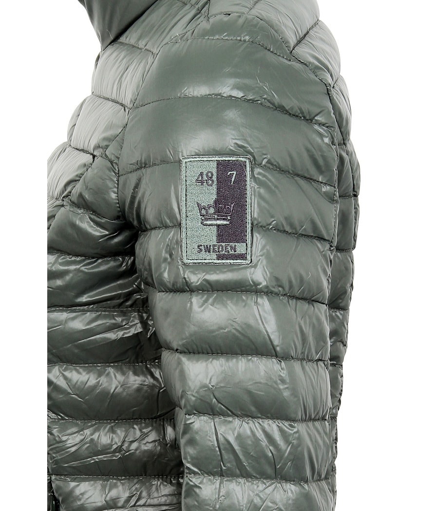 Lättvikts dunjacka med två snedställda fickor samt brodyrmärke på vänster ärm, passar bra som jacka eller förstärkning under tunnare jackor