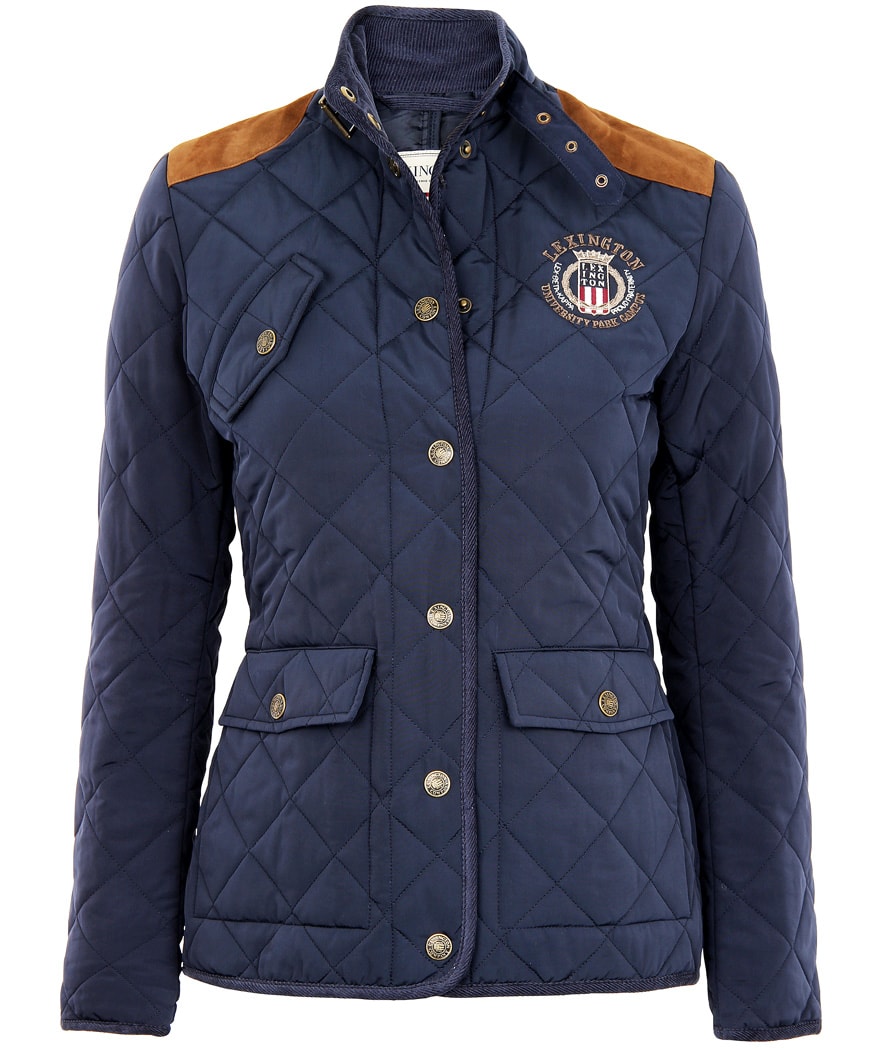 Klassisk quiltad jacka med patchar på axlarna och Lexington logga broderad på bröstet. |