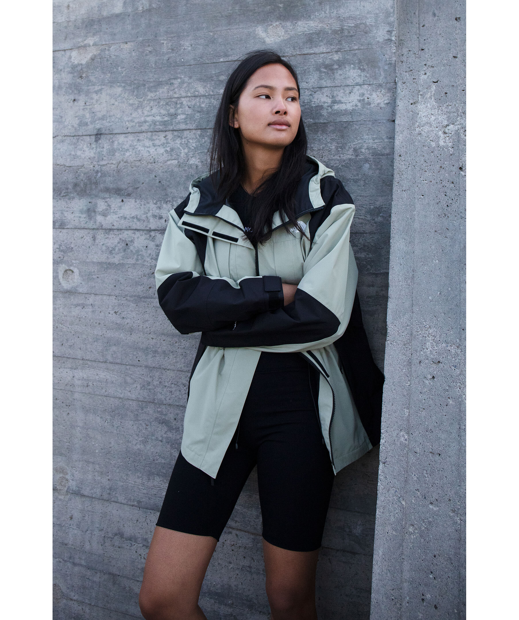 Mintgrön funktionsjacka med svarta detaljer från The North Face. Jackan är inspirerad av det första och klassiska funktionsjackorna från The North Face. Vattenavvisande och andningsbara material gjort av återvunna tyger. Jackan har en något avslappnad passform, två bröstfickor, två framfickor, luva med dragsko, kardborre vid ärmslut för att försluta och ändra passformen. Dragsko i midjan för mer åtsittande passform. Logotyp på bröstet och axeln.