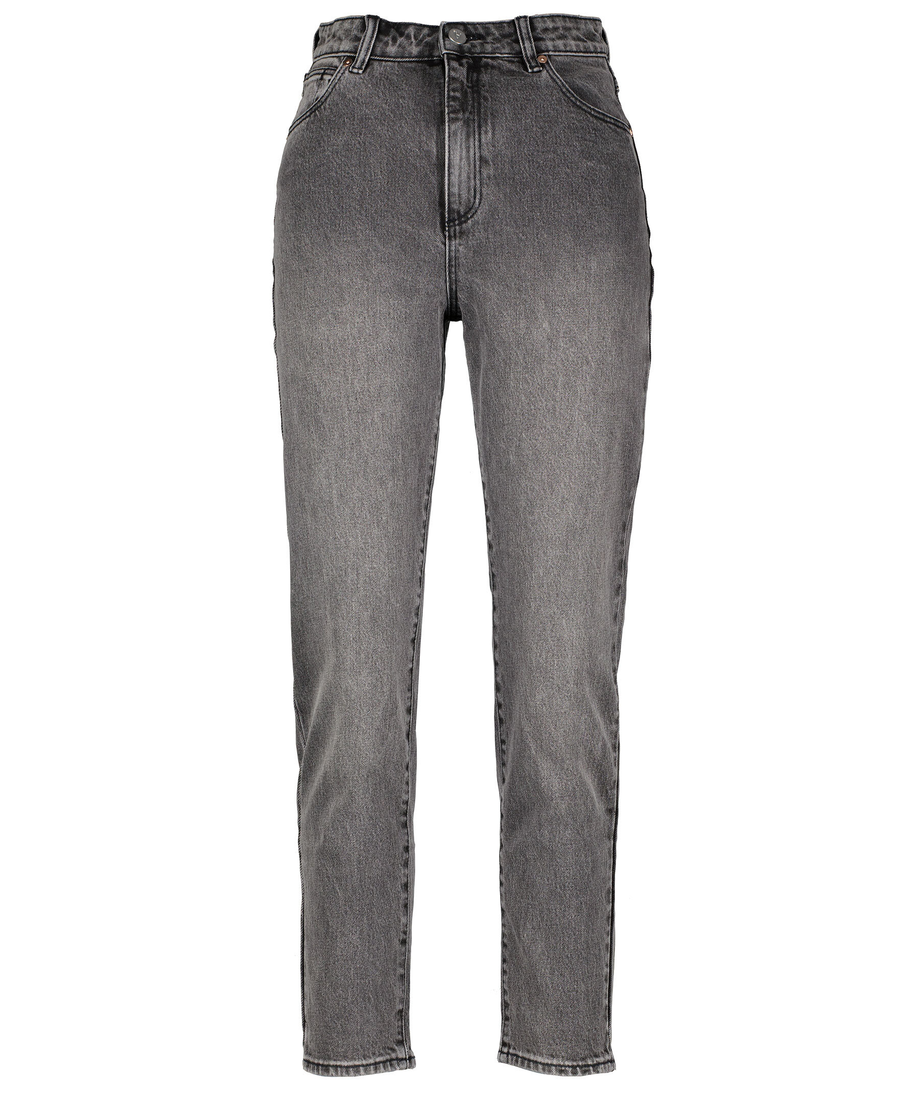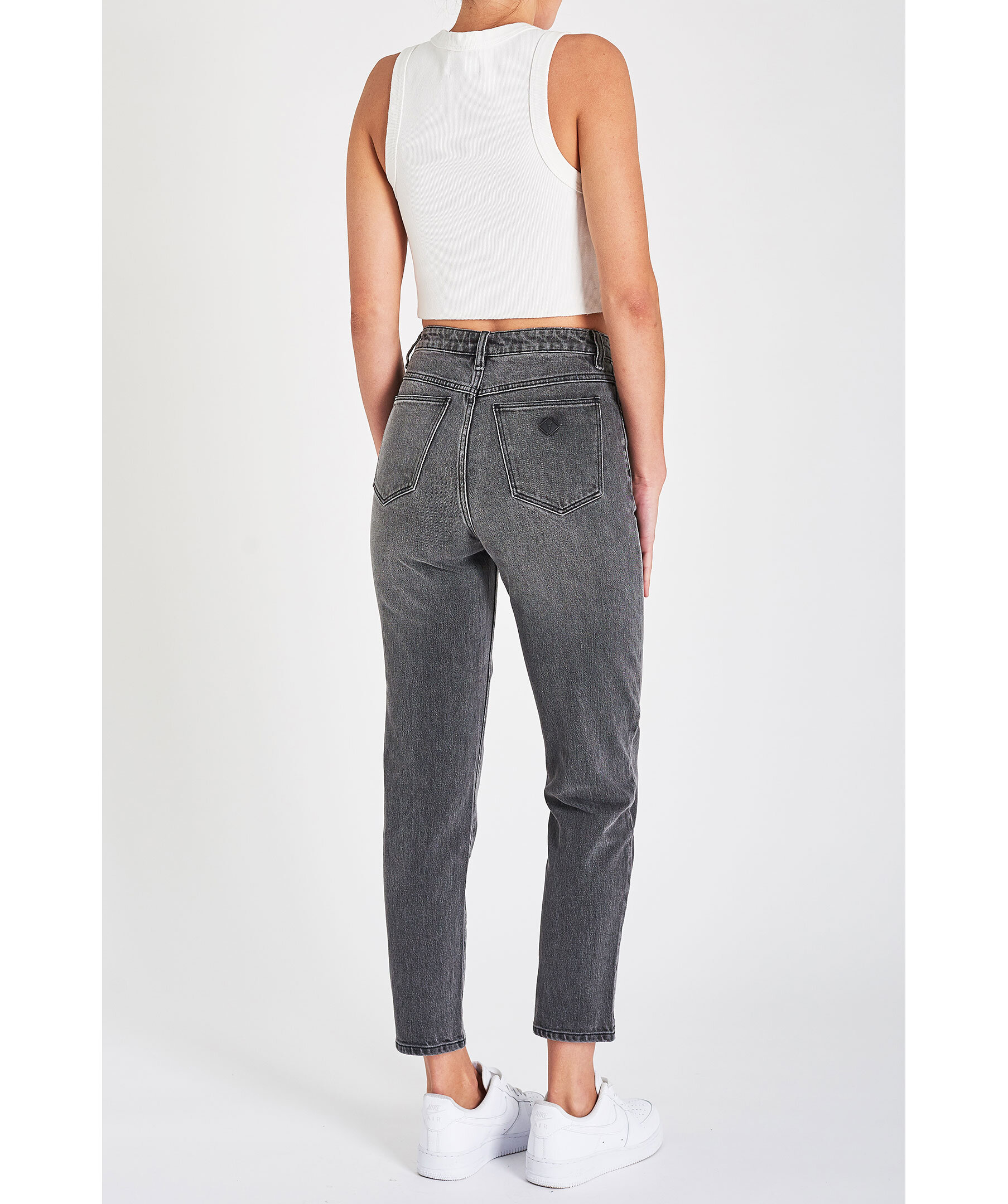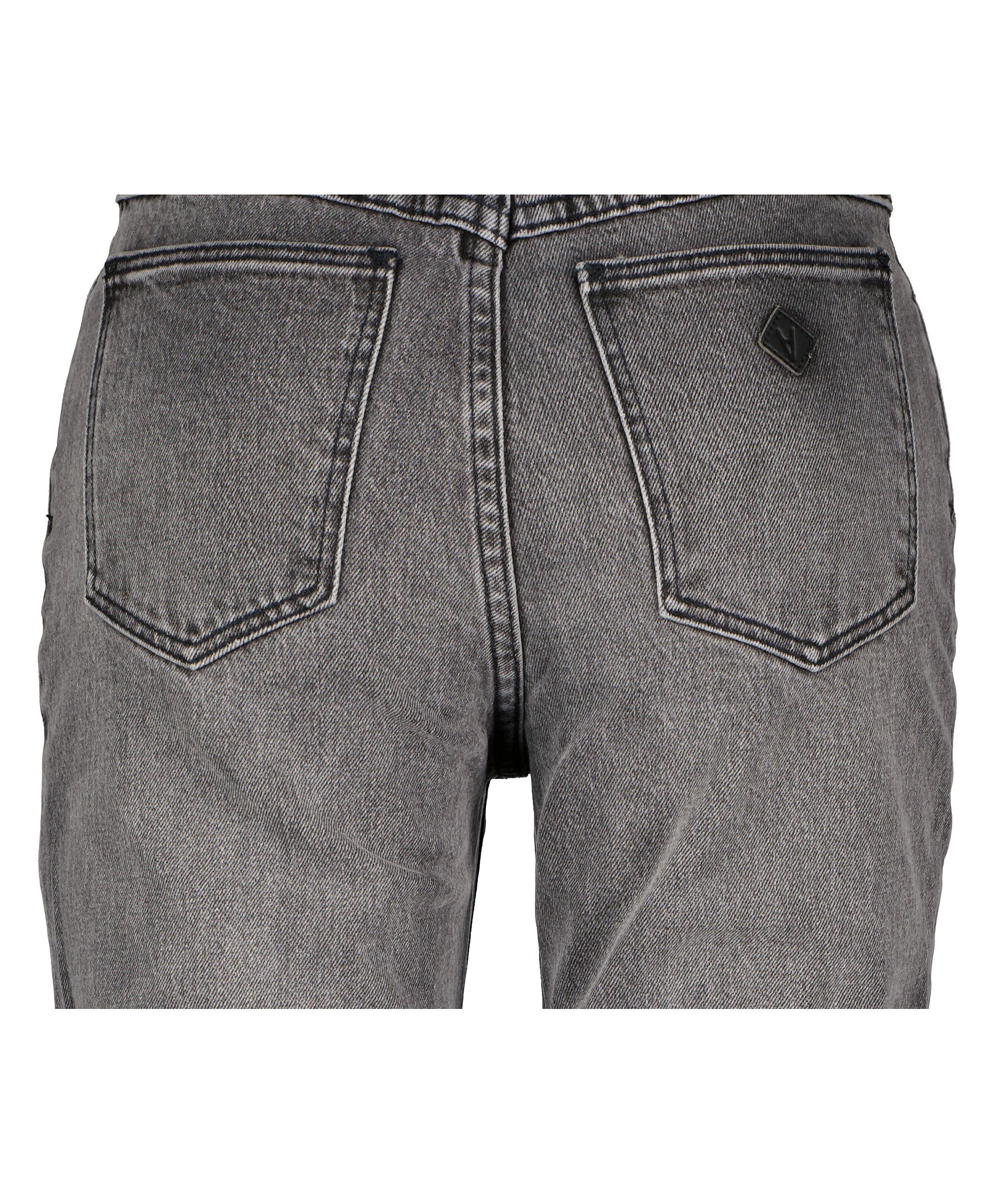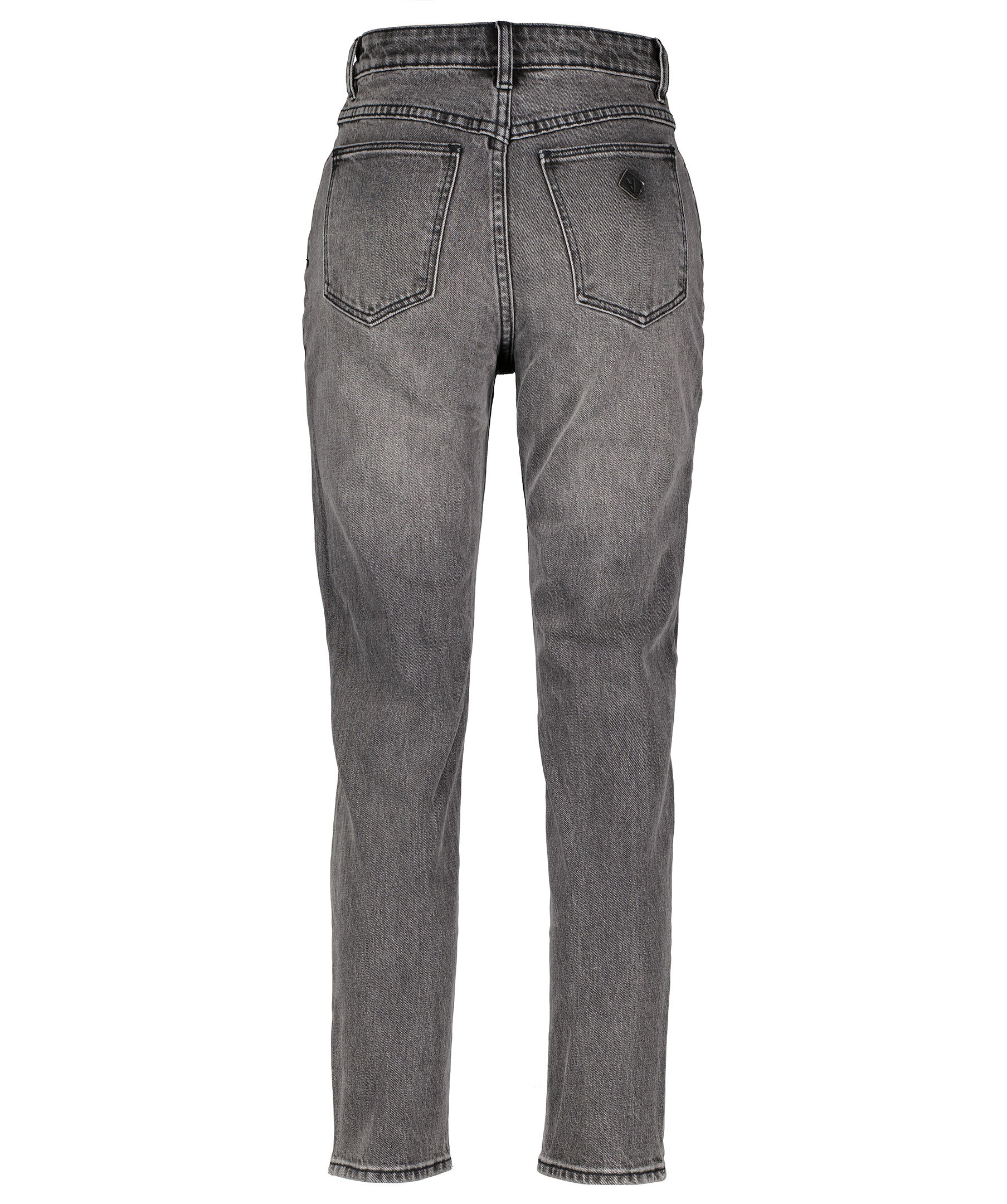 Svarta jeans från Abrand. byxorna har en slim passform och hög midja. Femficksmodell med hällor för bälte i midjan. Stängs med dold gylf med dragkedja och knapp. Broderad, liten patch i läder på ena bakfickan. Innerlängden på storlek 27 är 68 cm.