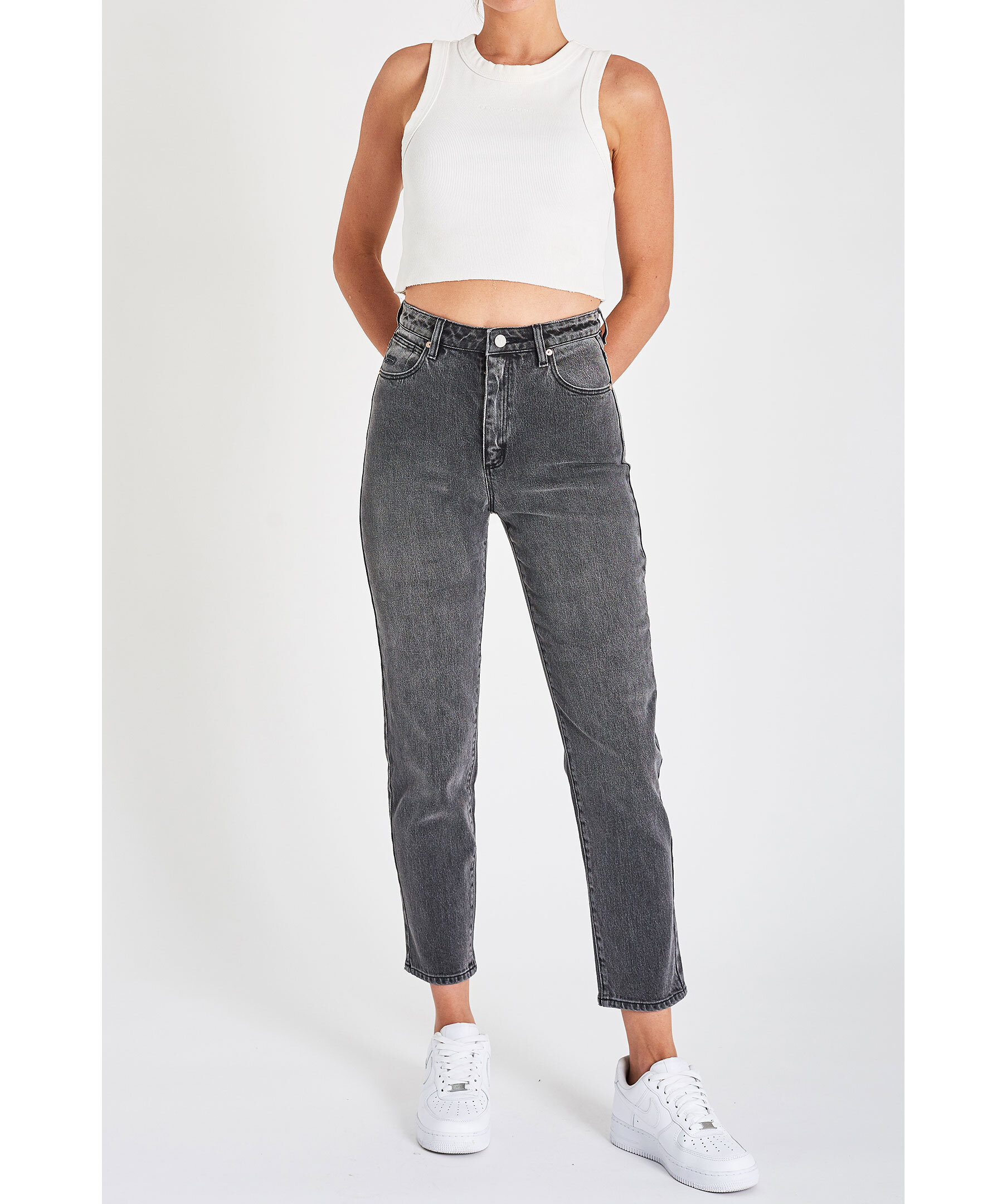 Svarta Jeans i slim fit modell från A brand. Jeansen har en hög midja. Femficksmodell med hällor för bälte i midjan. Stängs med dold gylf med dragkedja och knapp. Broderad, liten patch i läder på ena bakfickan. Innerlängden på storlek 27 är 75 cm. Tall kollektionen passar för dig som är 170cm och längre.