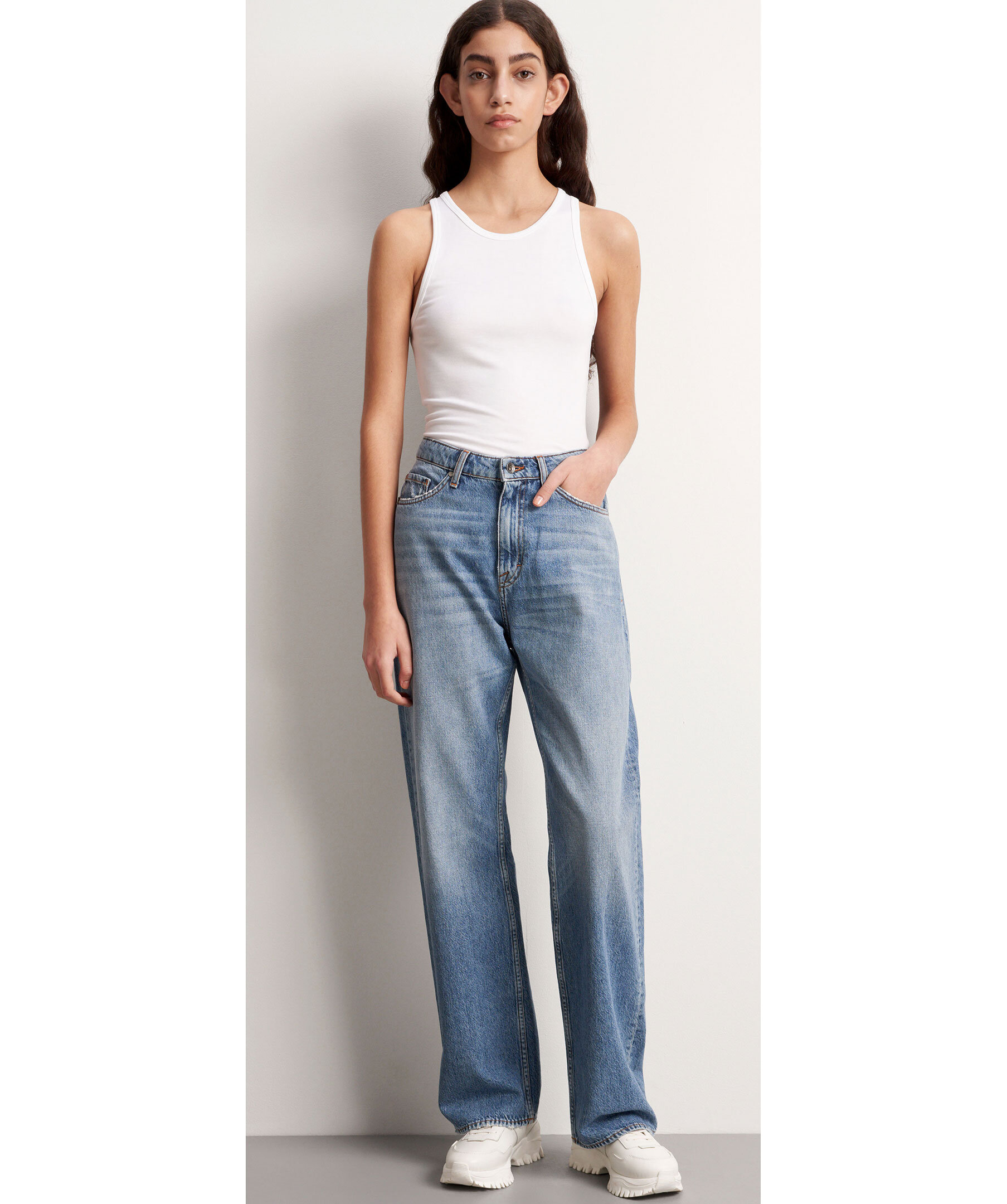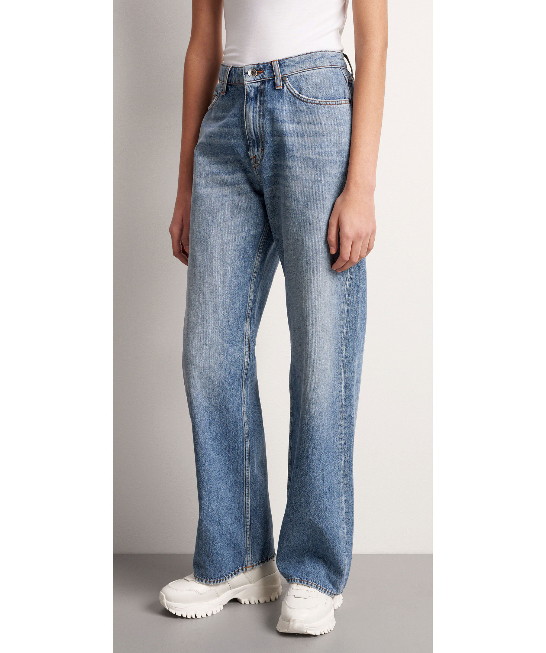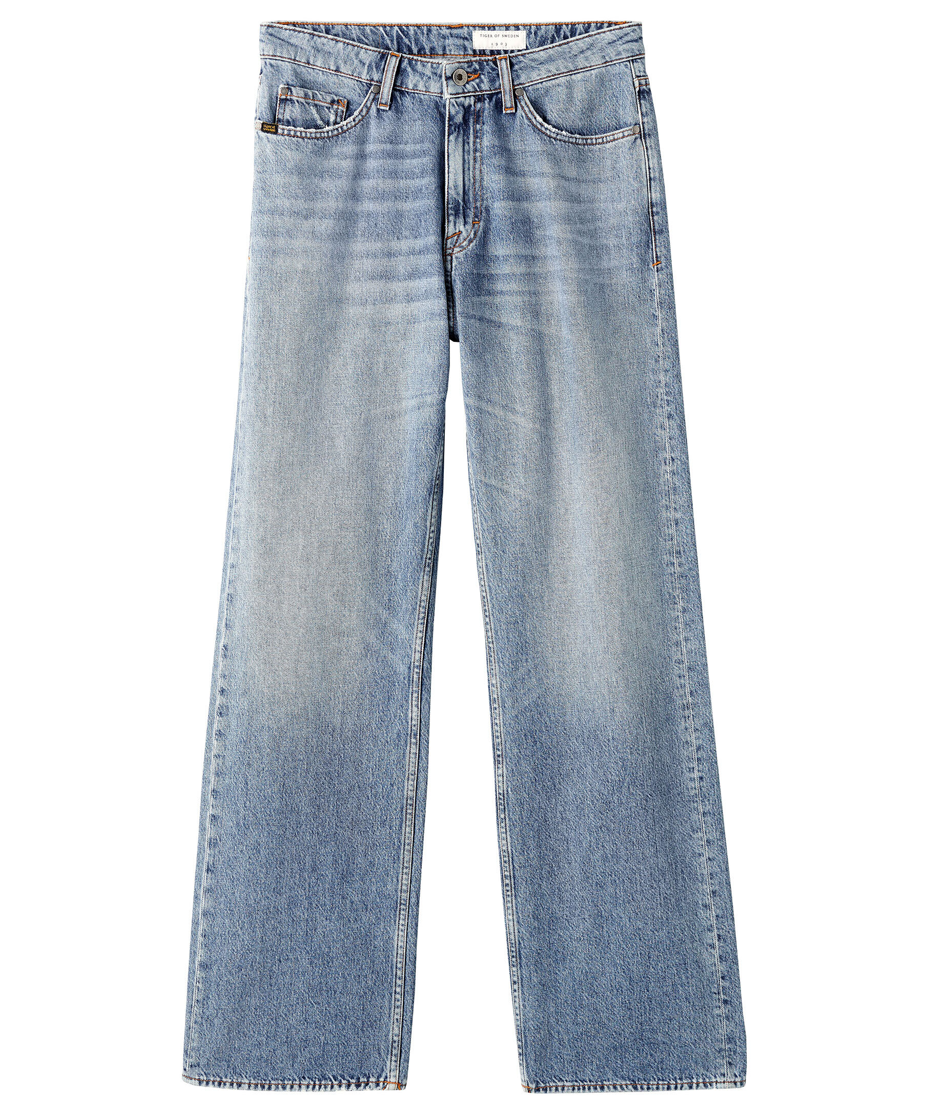 Ljusblå jeans från Tiger of Sweden. Mellanhög midja med en raka och avslappnade ben. Jeansen har en vintage inspirerad tvätt och fem fickor.