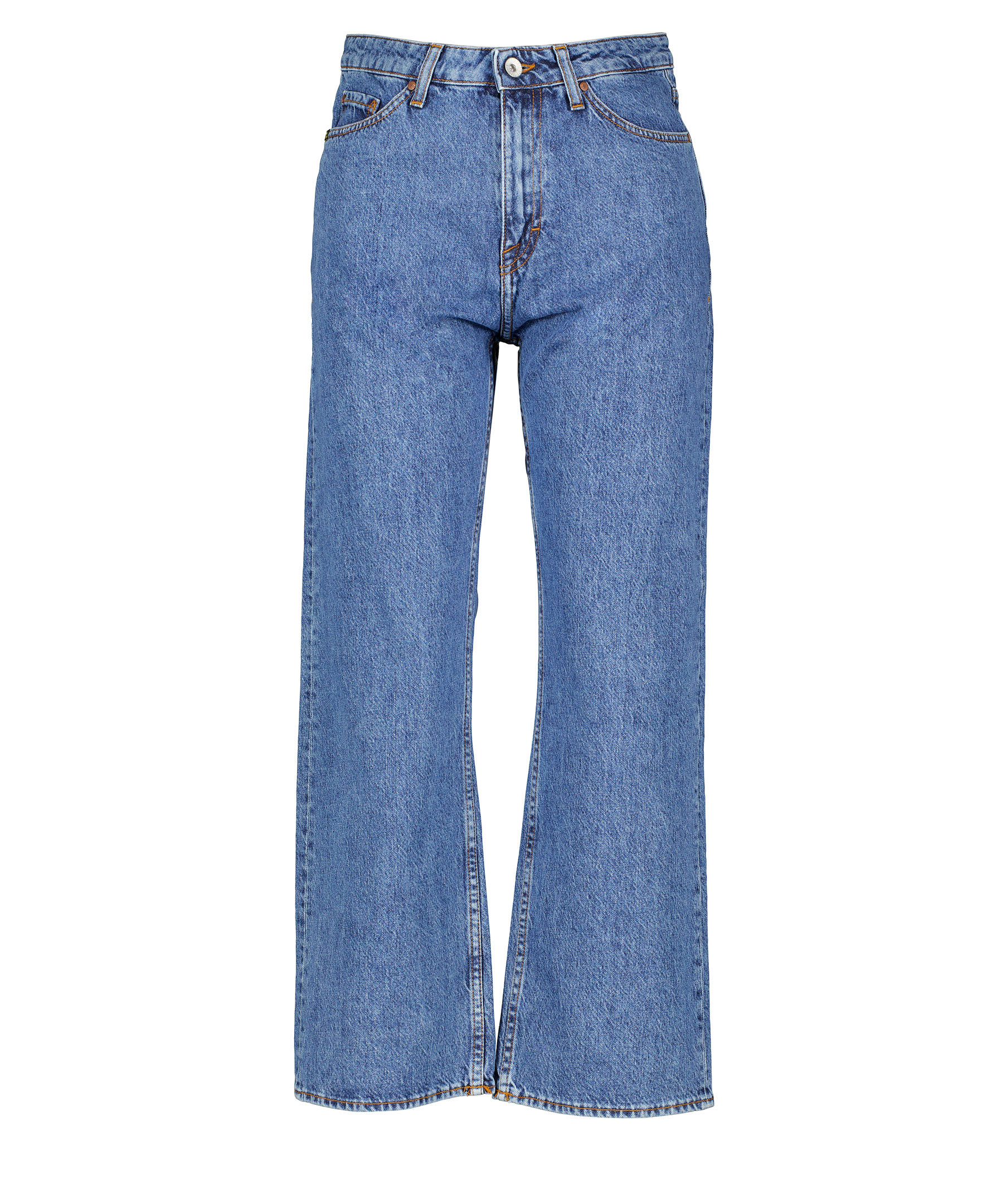Blåa, avslappnade jeans från Tiger of Sweden. Fem ficks modell. Medelhög midja med raka croppade ben.