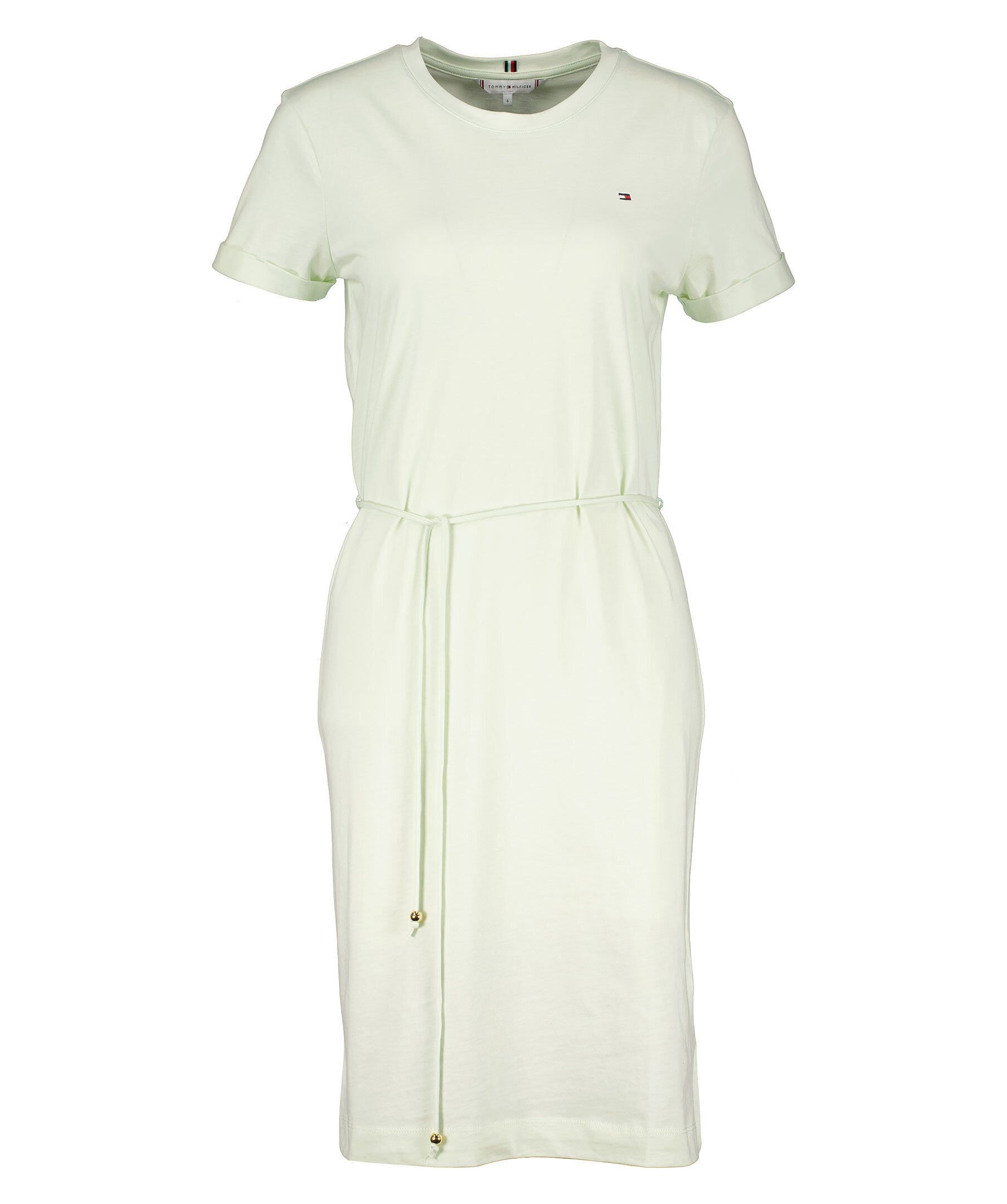Mintgrön bomullsklänning från Tommy Hilfiger. Snörning i midjan. Broderad logotyp på vänster bröst. Uppvikta ärmar. Rundad halsringning. Tillverkad i 100% bomull.
