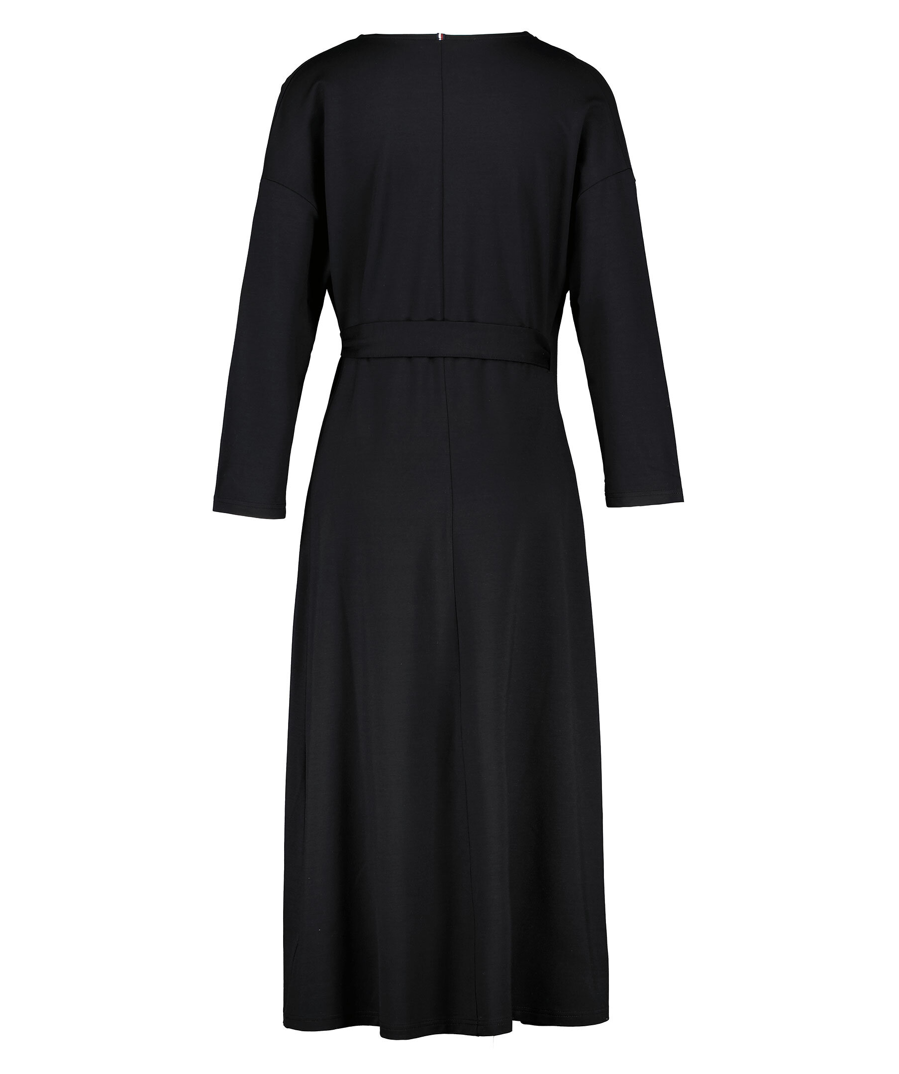 Svart långärmad omlottklänning från Tommy Hilfiger gjord i en blandning av viskos och elastan. Klänningen har en normal passform och är tänkt att sluta strax under knäna. Djup V-ringning.