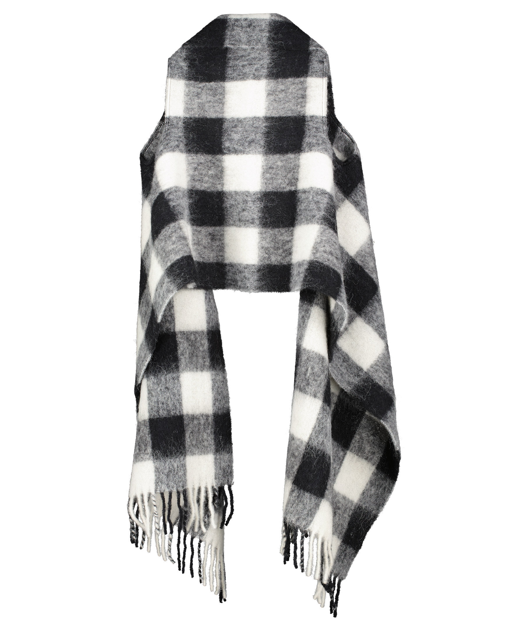Vit och svart stickad cape/Scarf från Woolrich. Fransar nedtill. Tillverkad i ullblandning.