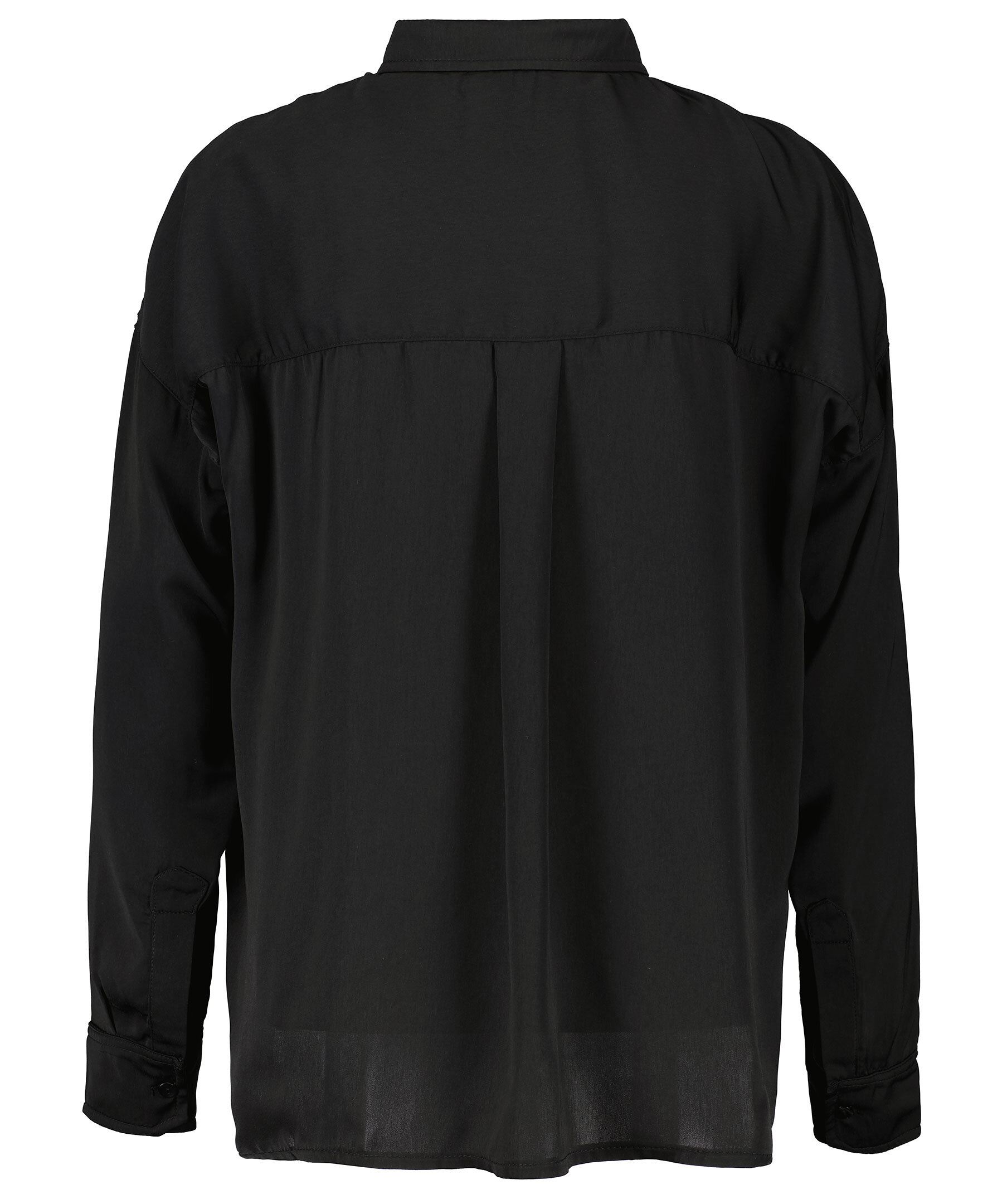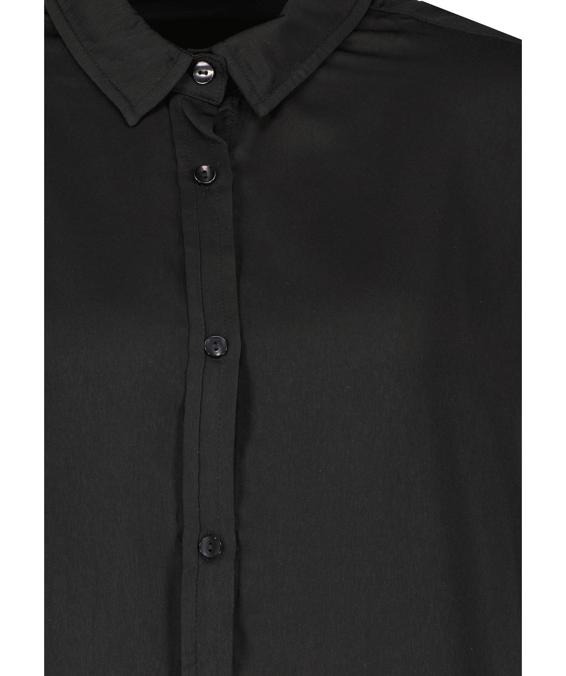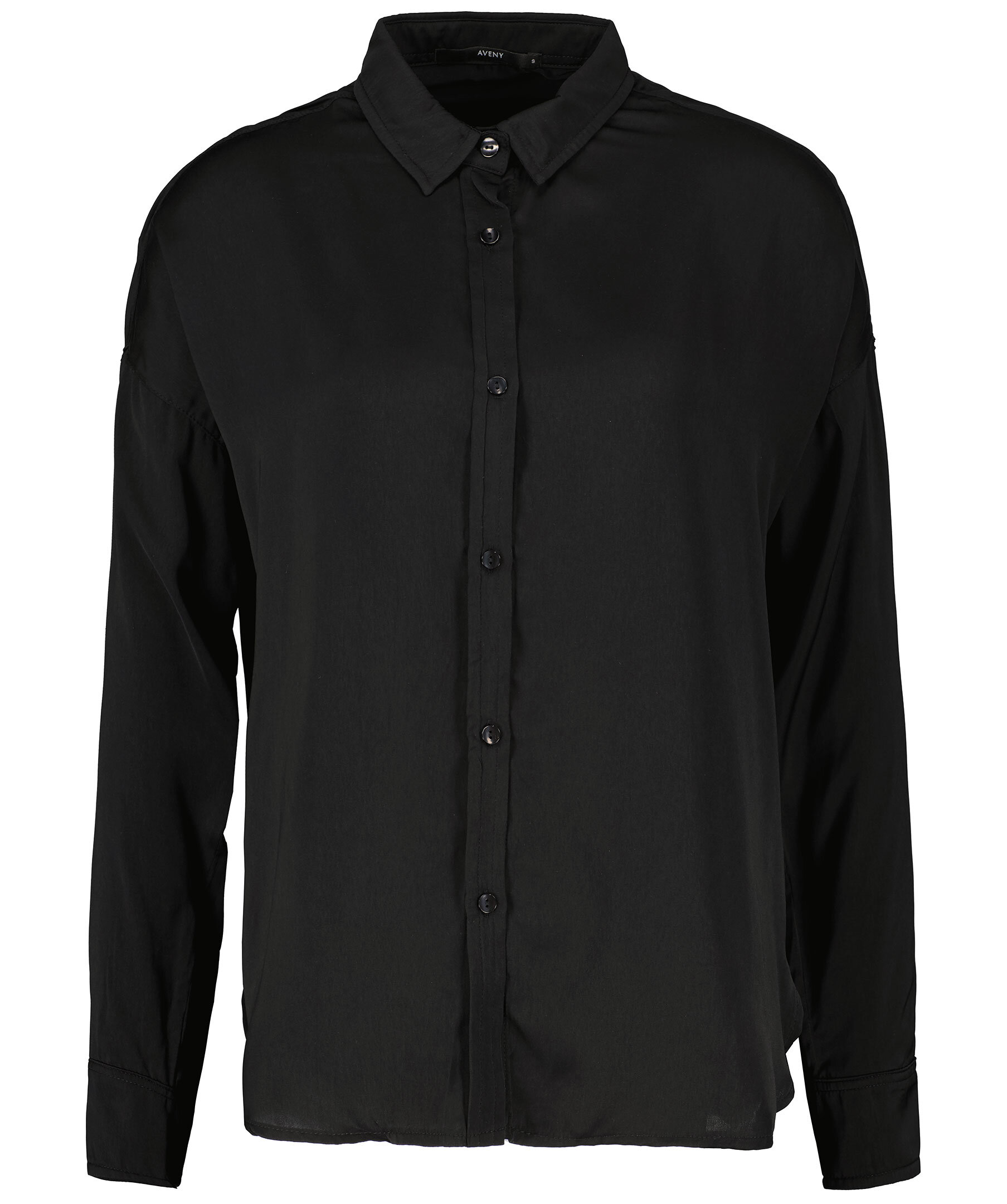 Svart skjorta från Aveny. Stängs framtill med knappar. Enkla manschetter vid ärmslut. Tillverkad i 100% polyester. Spetsig krage.