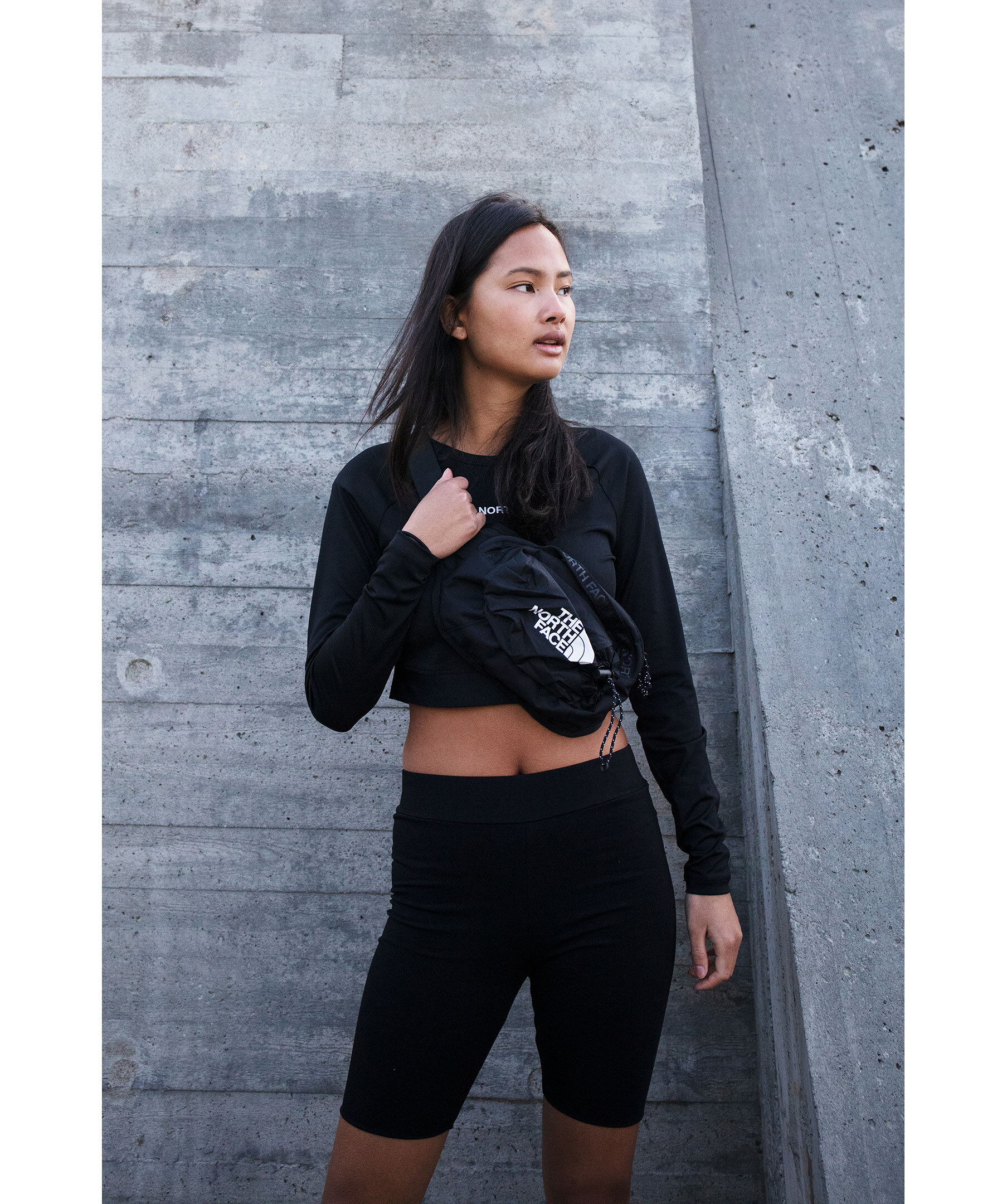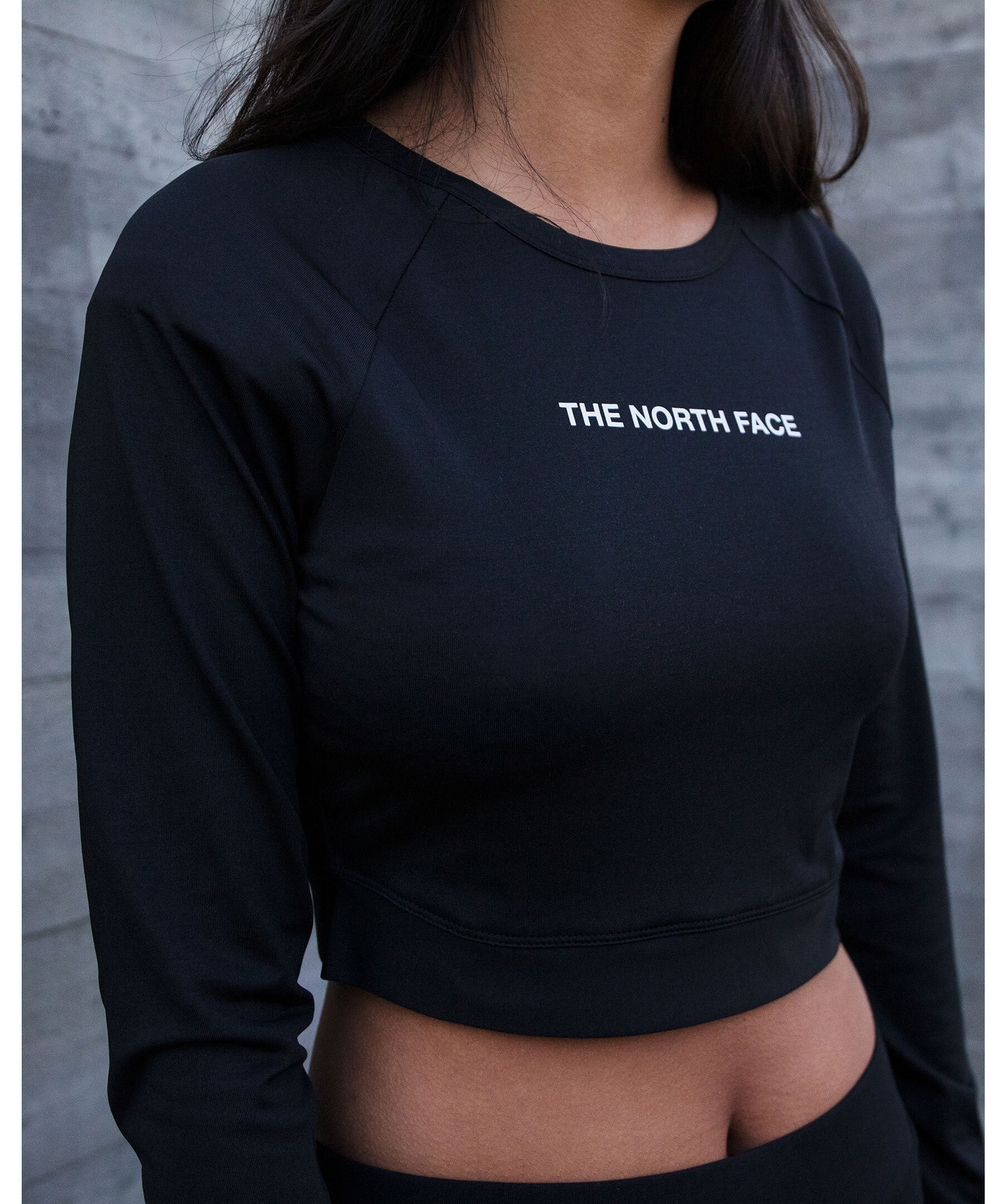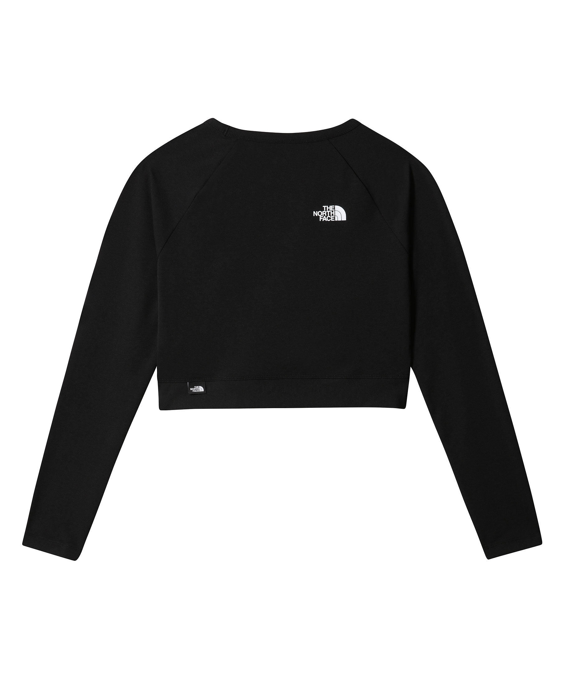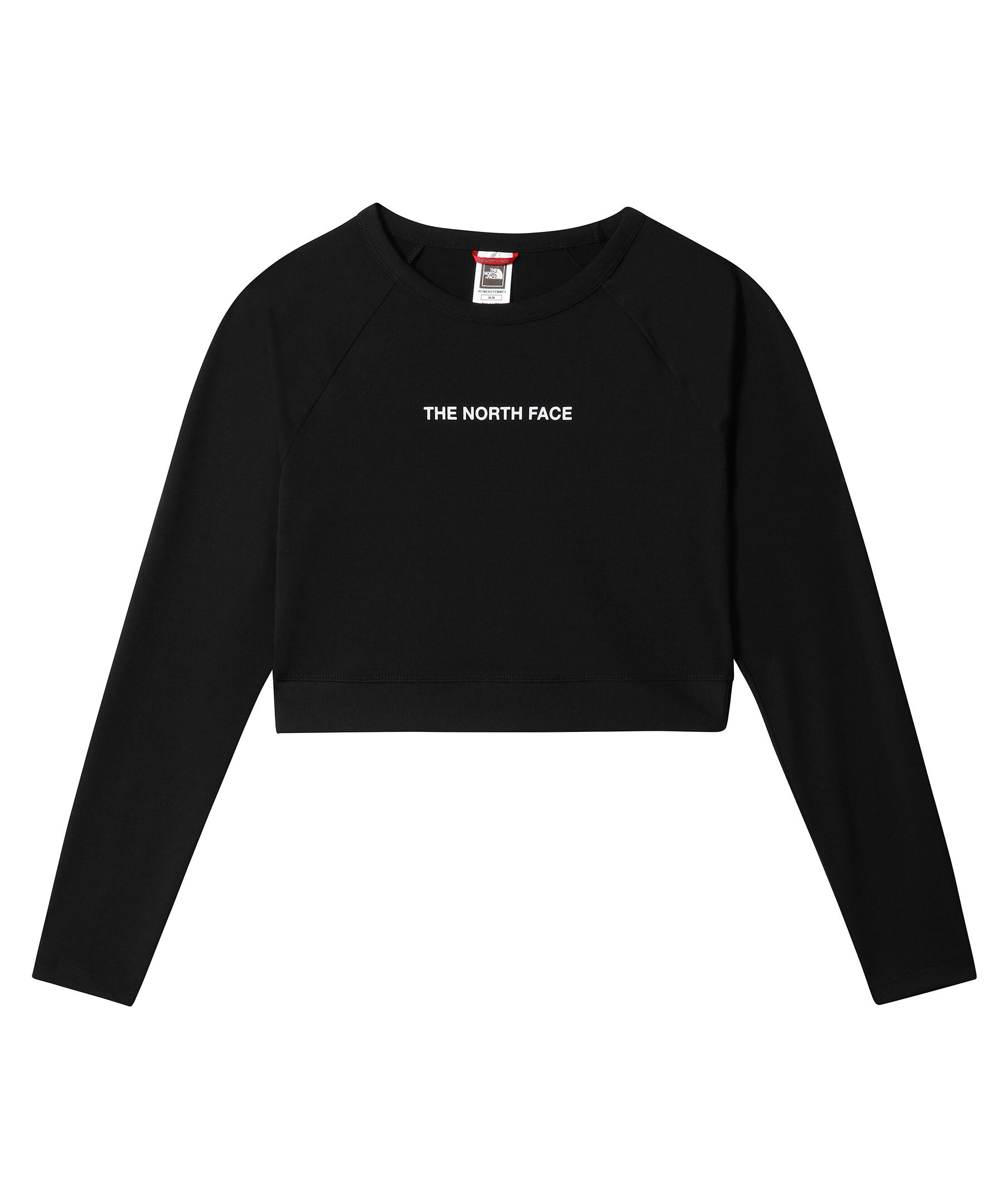 Svart långärmad cropad tröja från The North Face. Rundad halsringning. Tryckt logotyp på bröstet och på högra axeln.