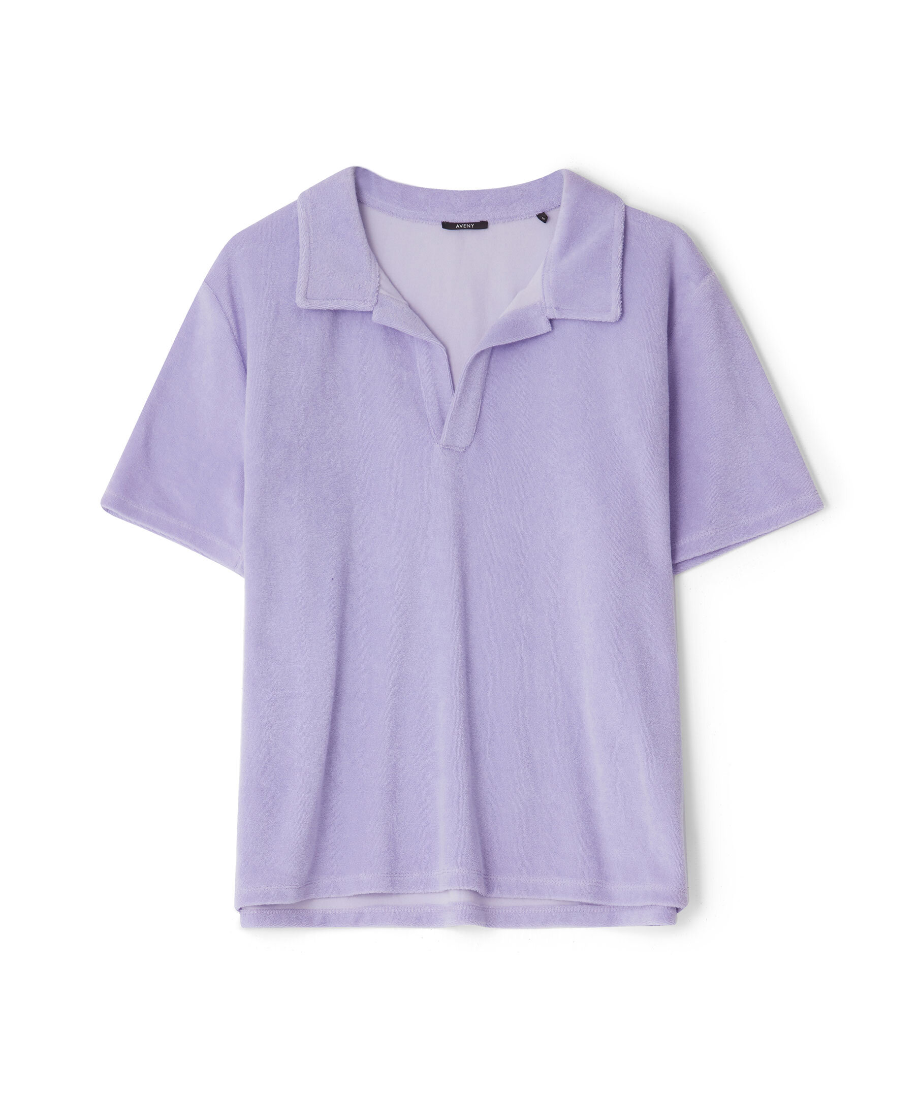 Lila piké i frotté från Aveny. Avslappnad passform. korta slitsar i sidorna. Bowlingkrage. Tillverkad i bomullsblandning.