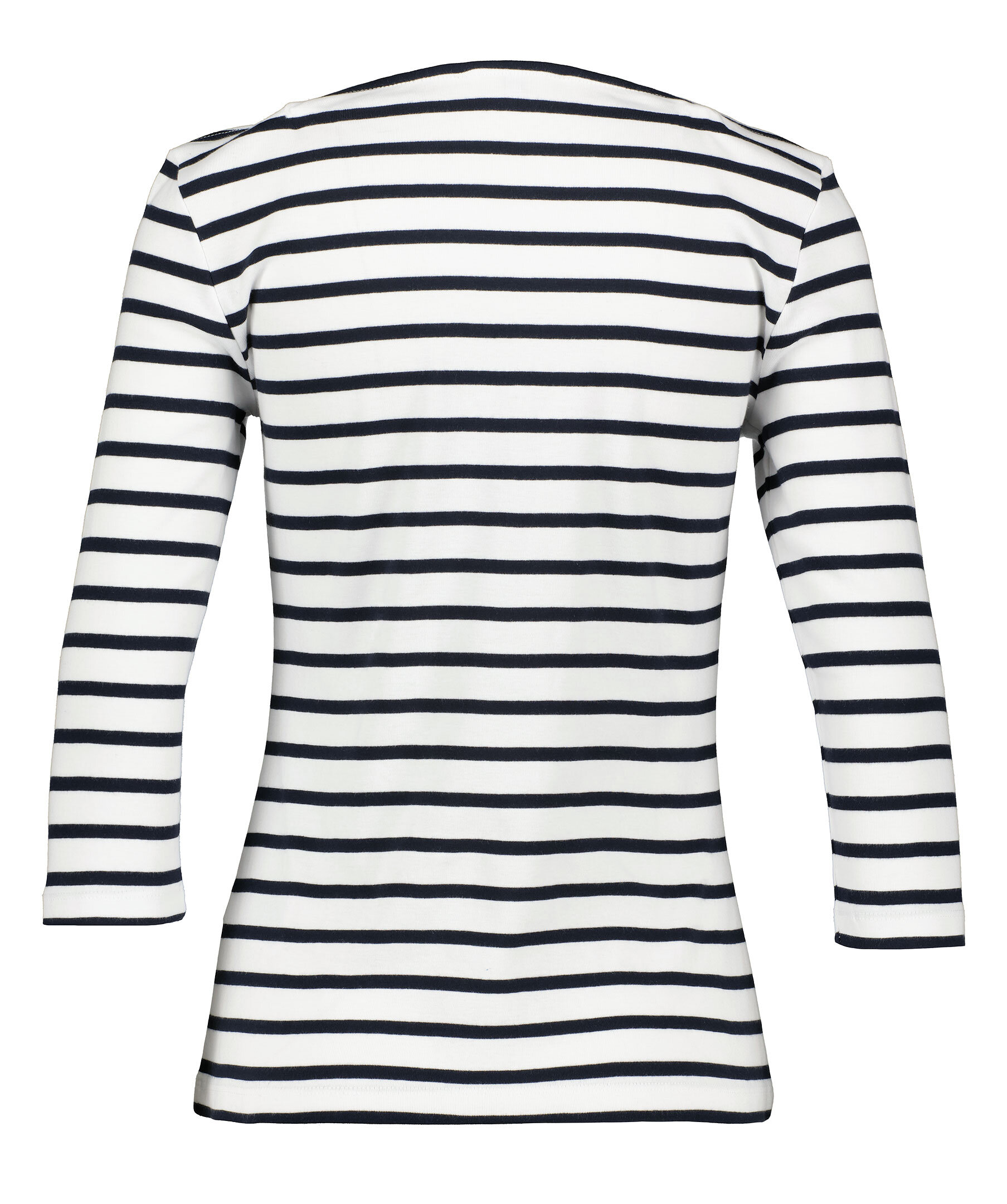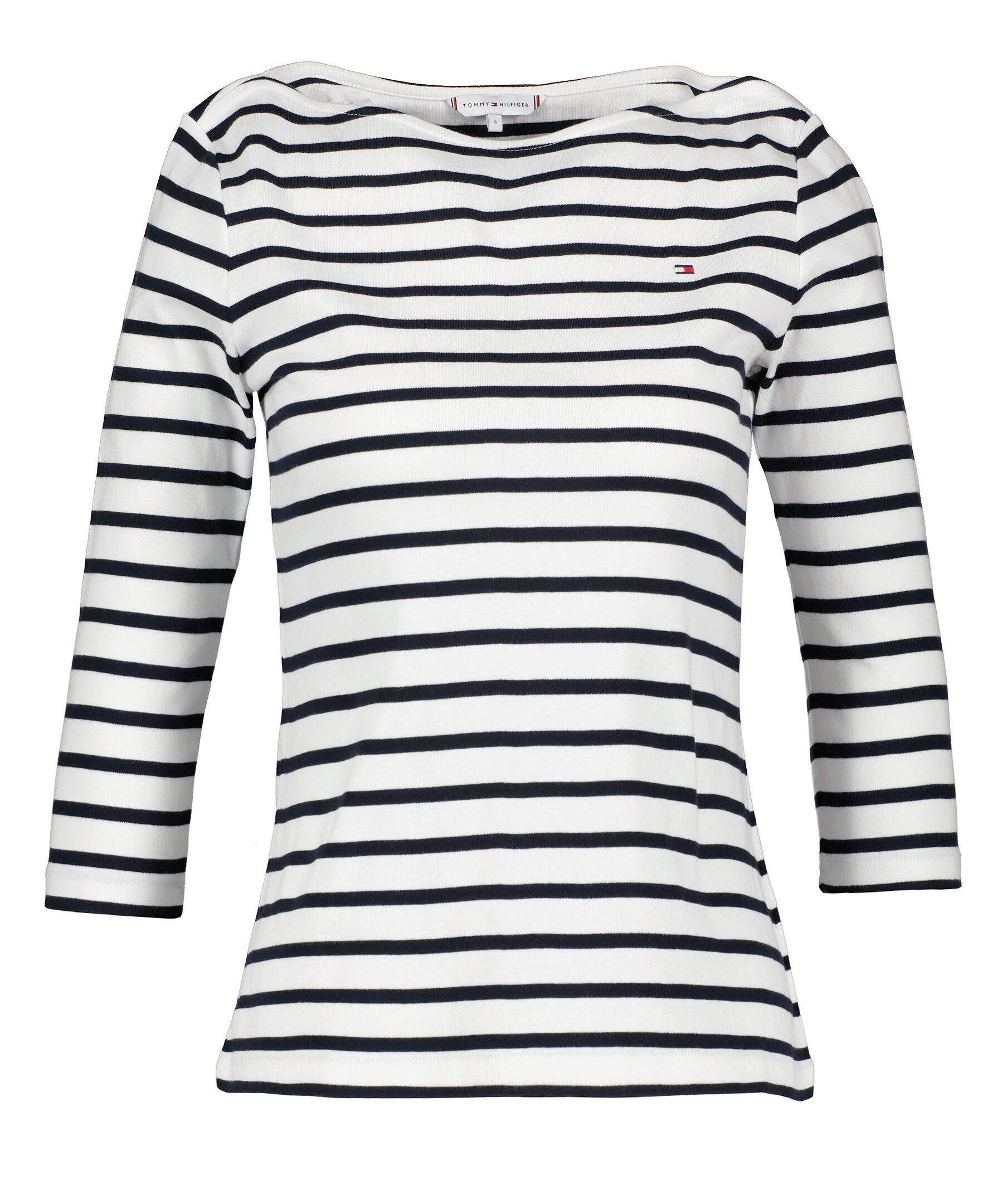 Vit och svart randig tunn topp med trekvartsärm från Tommy Hilfiger. Tröjan är gjord i 100% bomull och har en smal passform. Båthalsringning.