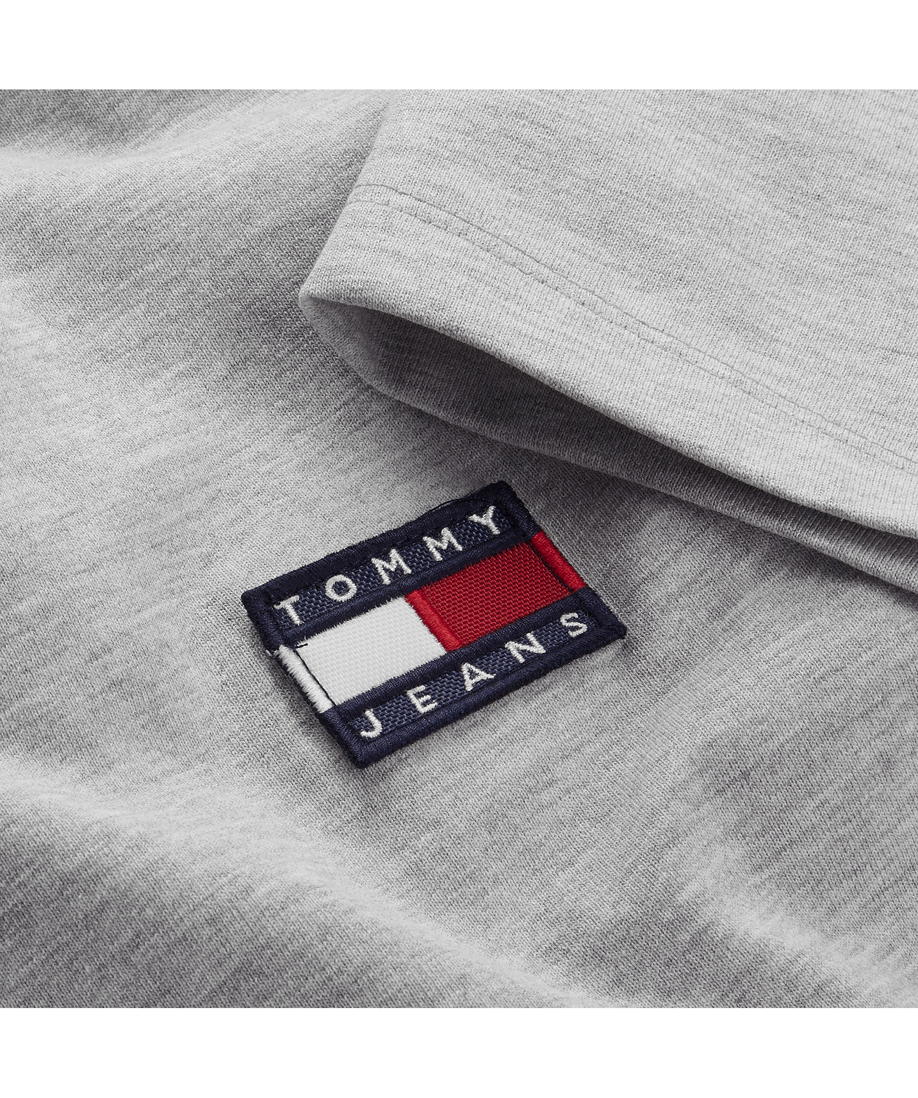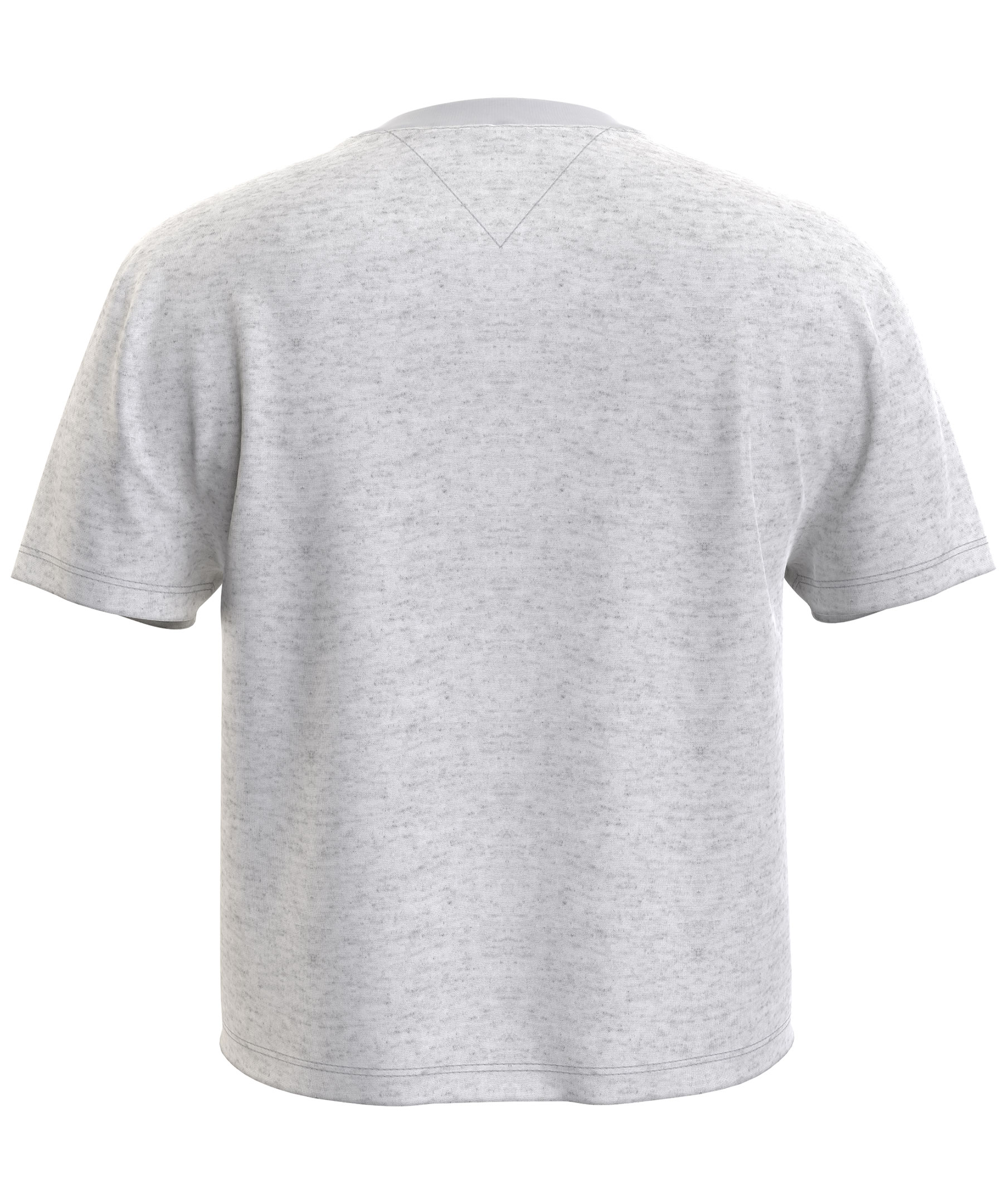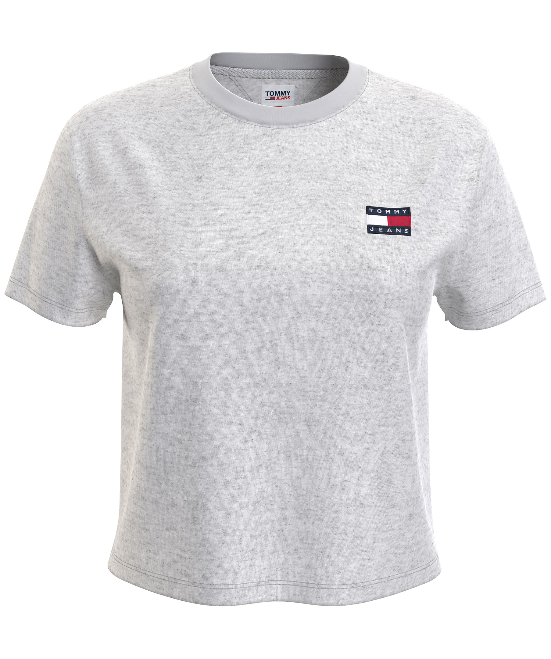 Gråmelerad croppad t-shirt från Tommy Jeans. Gjord i en återvunnen bomullsblandning. Broderad patch med logotyp på bröstet. Crew neck.