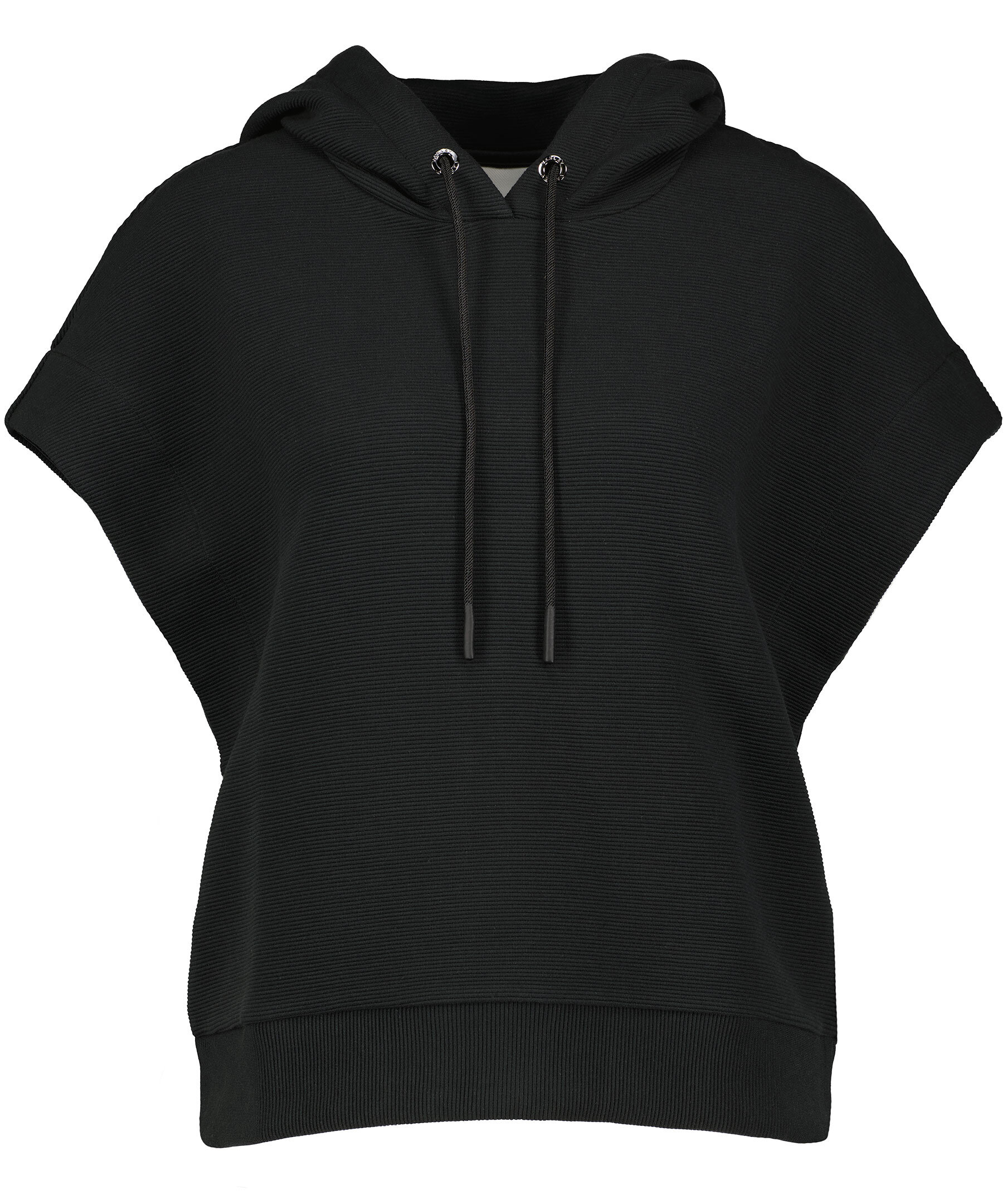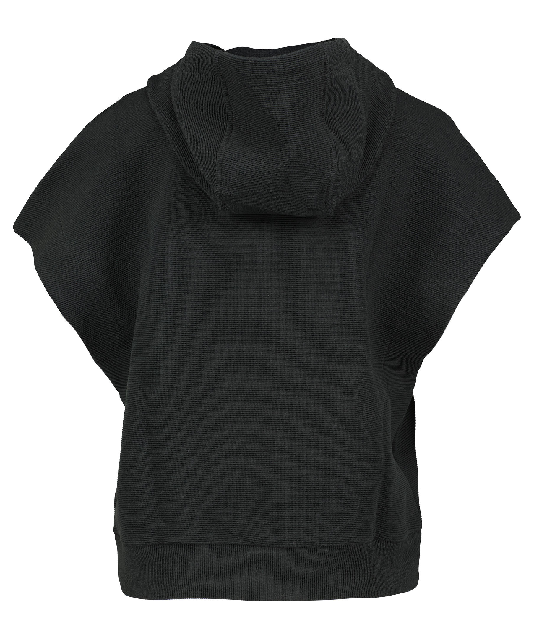 Svart ribbad ärmlös hoodie från Varley. Luva med dragsko. Bred ribbstickad mudd vid plaggslut. Tillverkad i bomullsblandning. Oversized fit.
