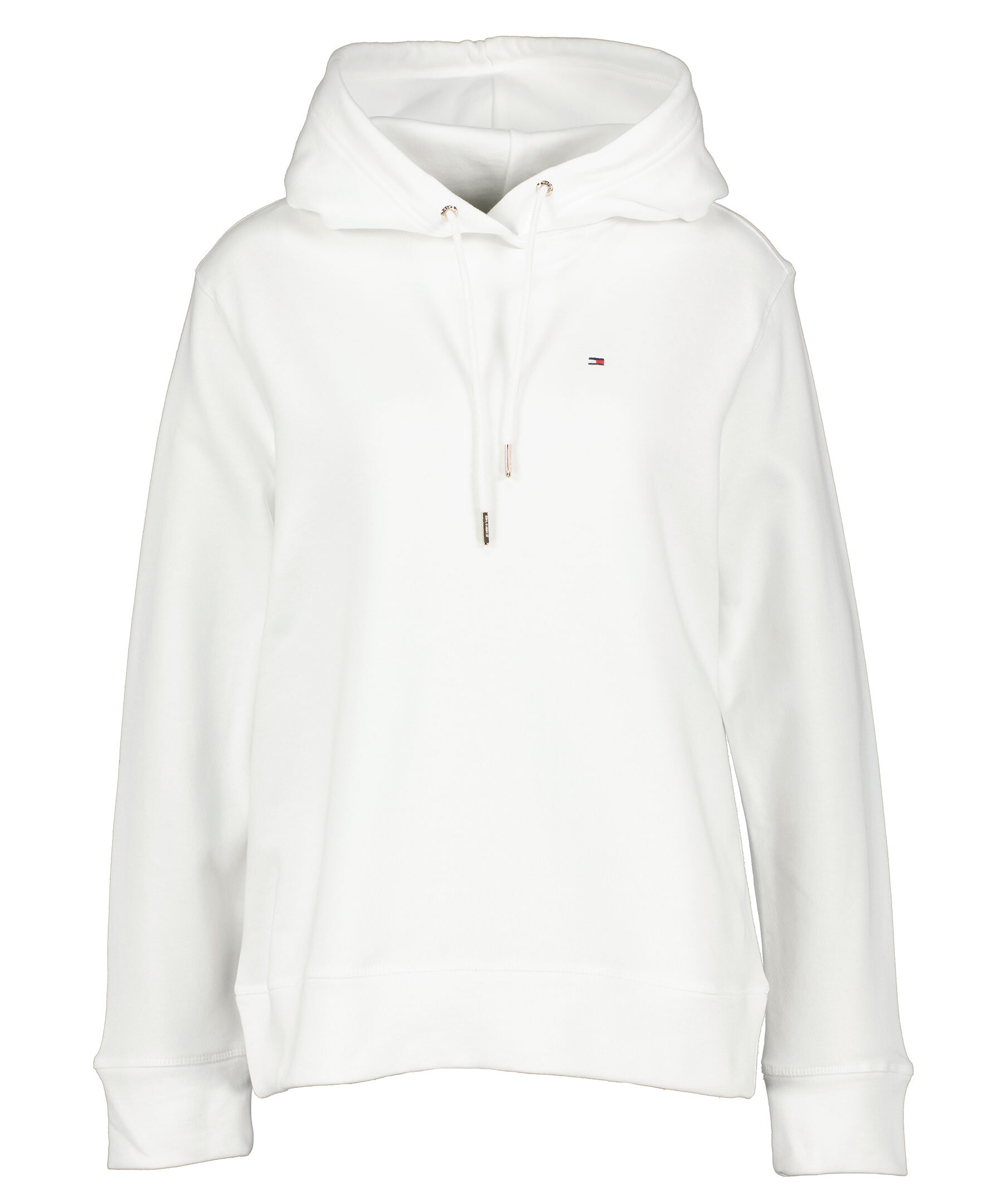 Vit hoodie från Tommy Hilfiger. Tröjan är gjord i 100% bomull och har en normal passform. Snörning i luva, broderad logotyp på bröstet och ribbade muddar vid ärm och plaggslut.