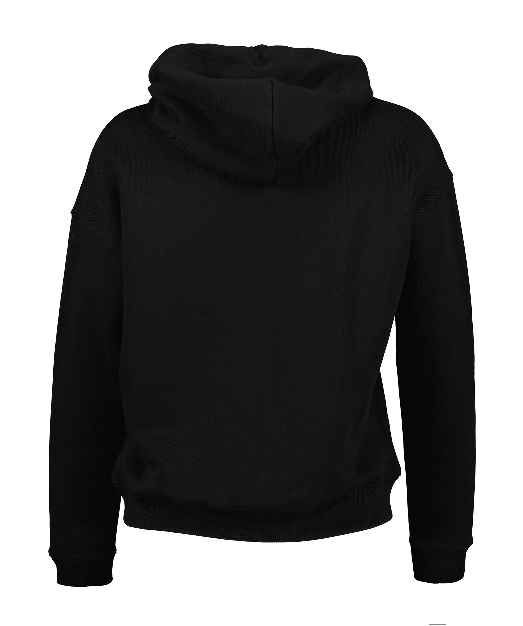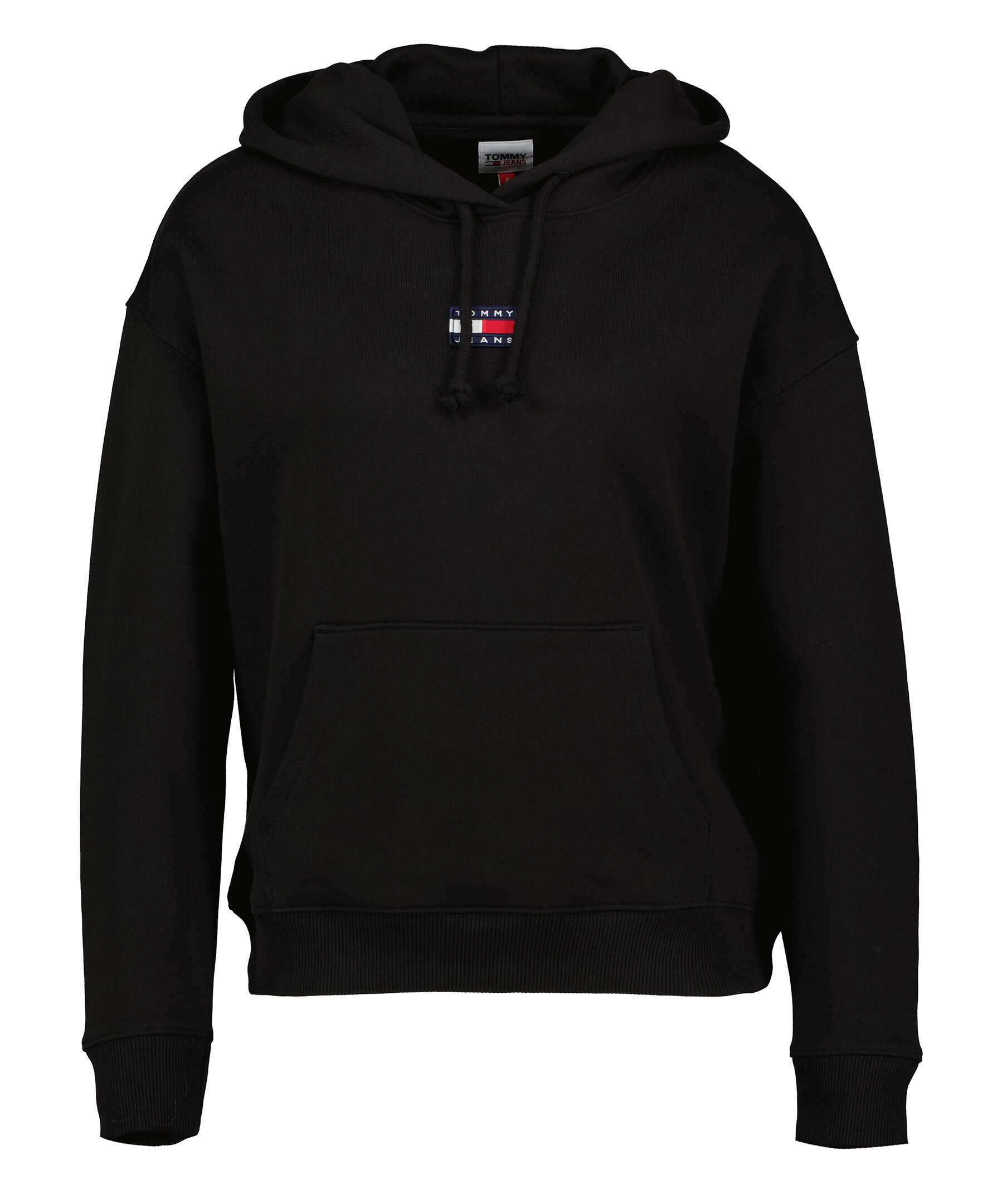 Svart hoodie i Bomull från Tommy Jeans. Luva med dragsko, känguruficka på magen. Ribbstickade muddar, broderad patch på bröstet.