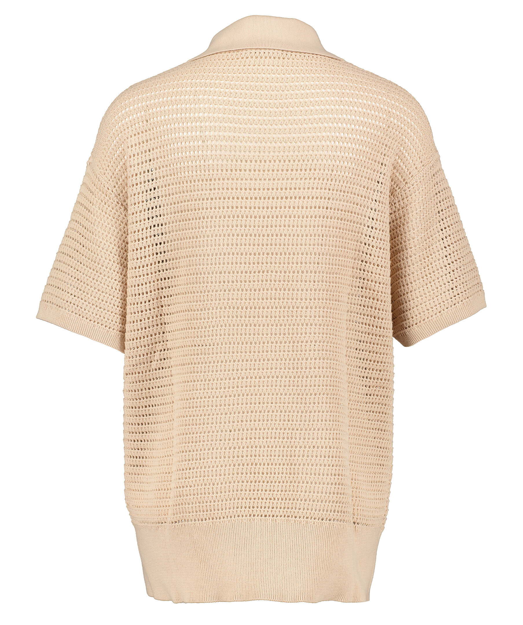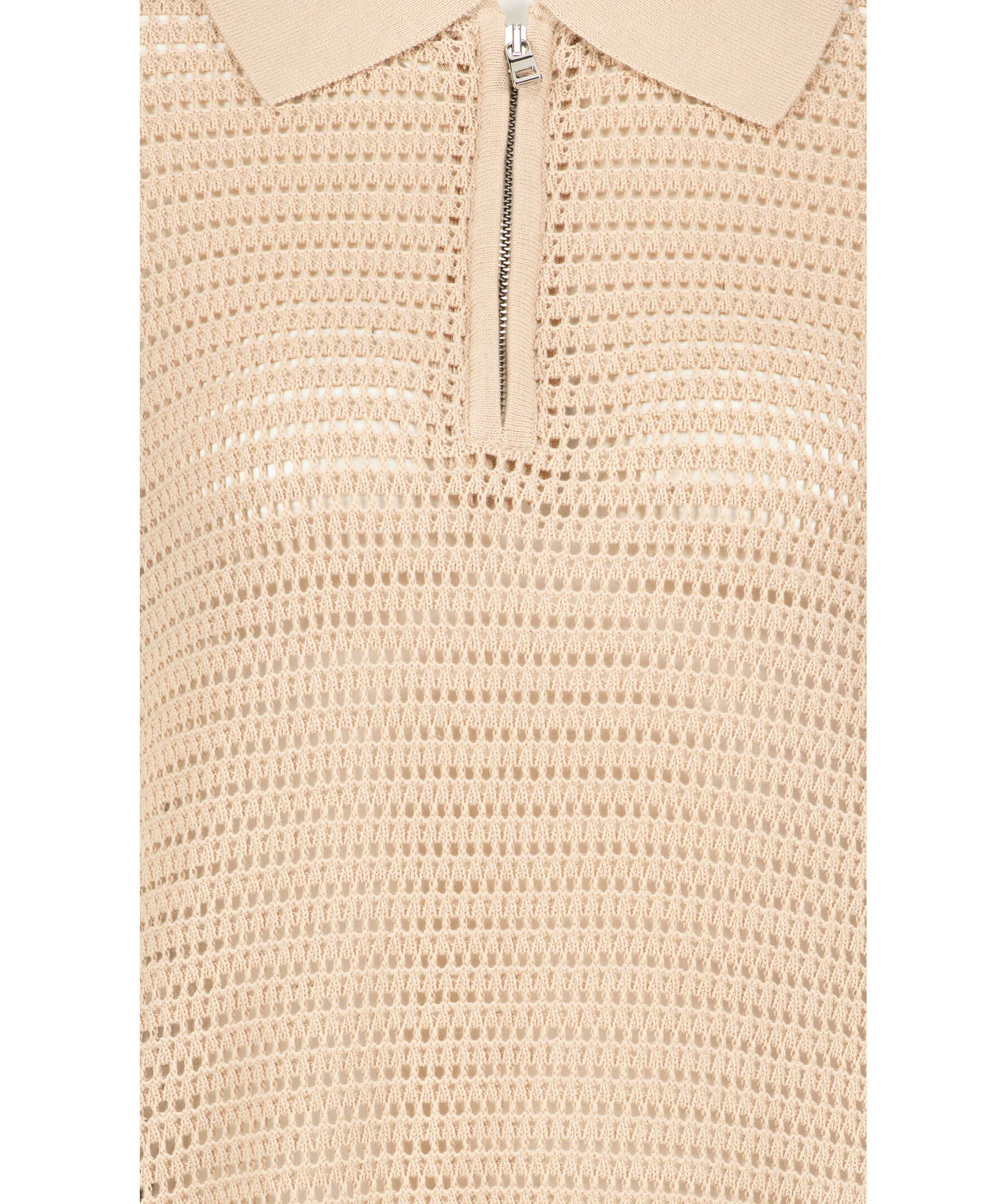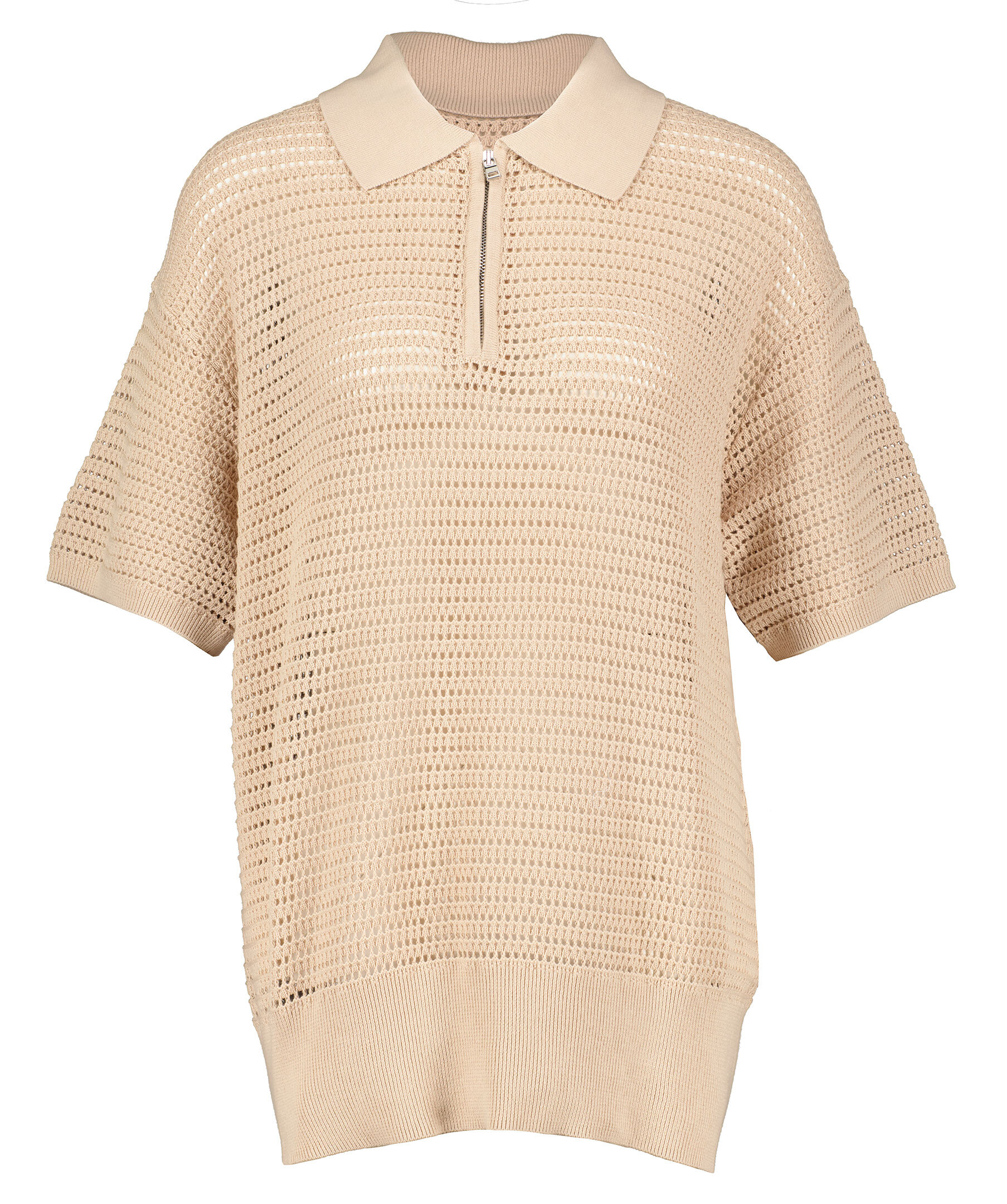 Beige mesh stickad tröja från Varley. med Karge och half-zip. Ribbstickade muddar vid ärm- och plaggslut. Ärmarna slutar strax över armbågen. Relaxed fit. Tillverkad i 100% Bomull.