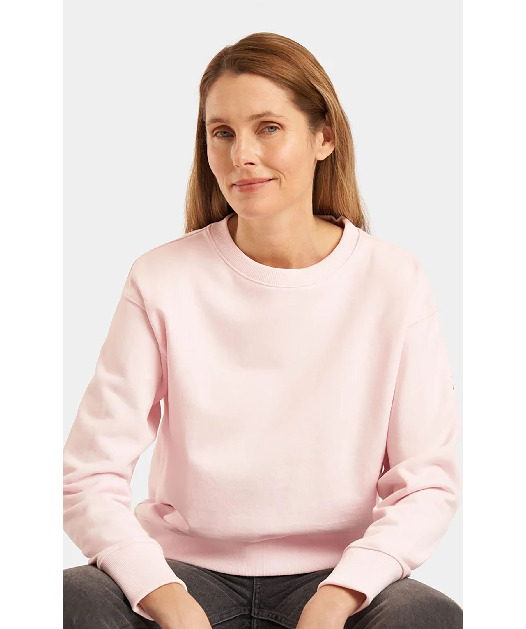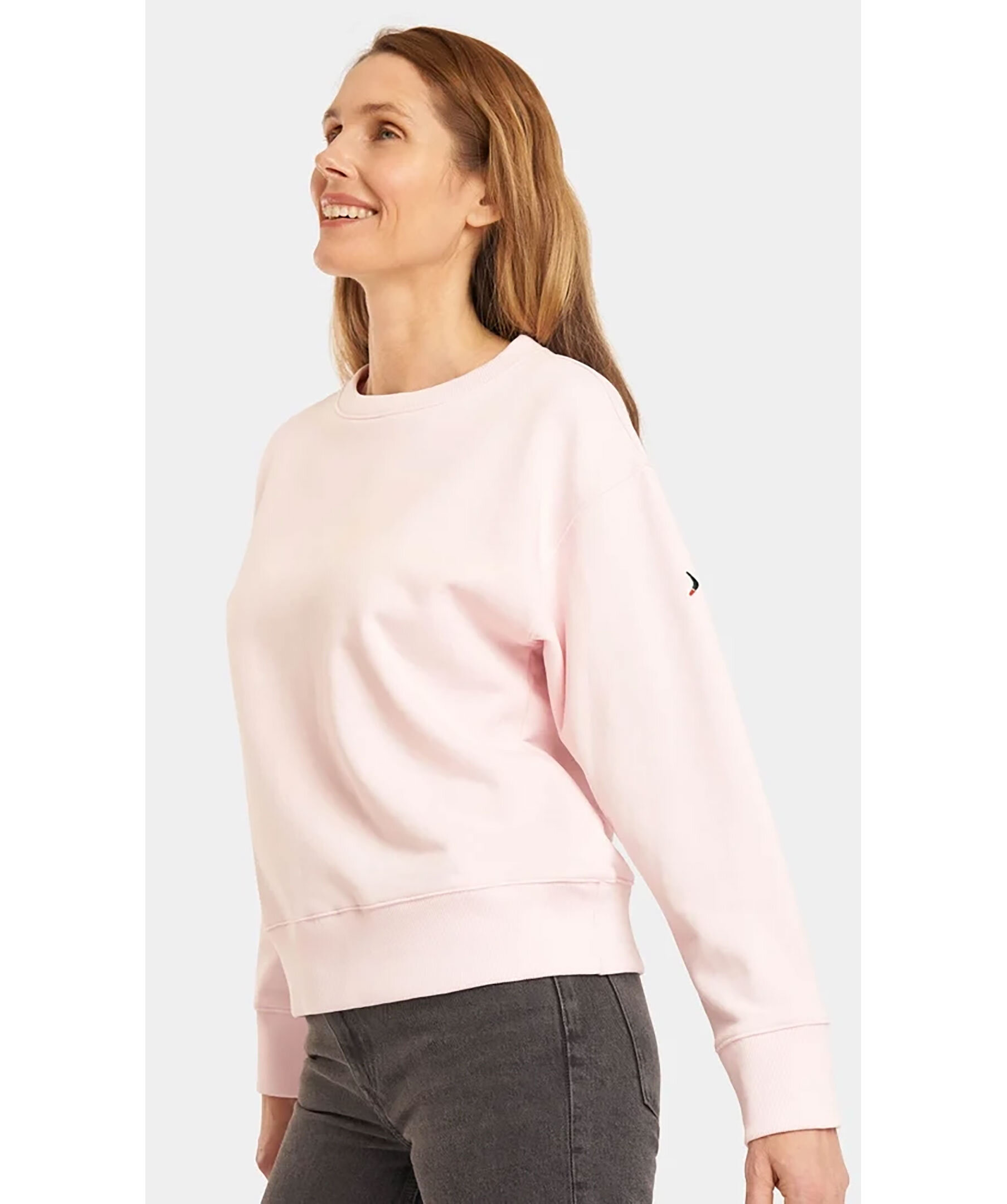 Klassisk ljusrosa sweatshirt från Boomerang. Tillverkad i 100% ekologisk bomull som är stickad i Sverige. Oversized passform. Tröjans halsringning, ärm- och tröjslut har en elastisk ribbad mudd och vänster ärm pryds av en broderad Boomerang-logga.