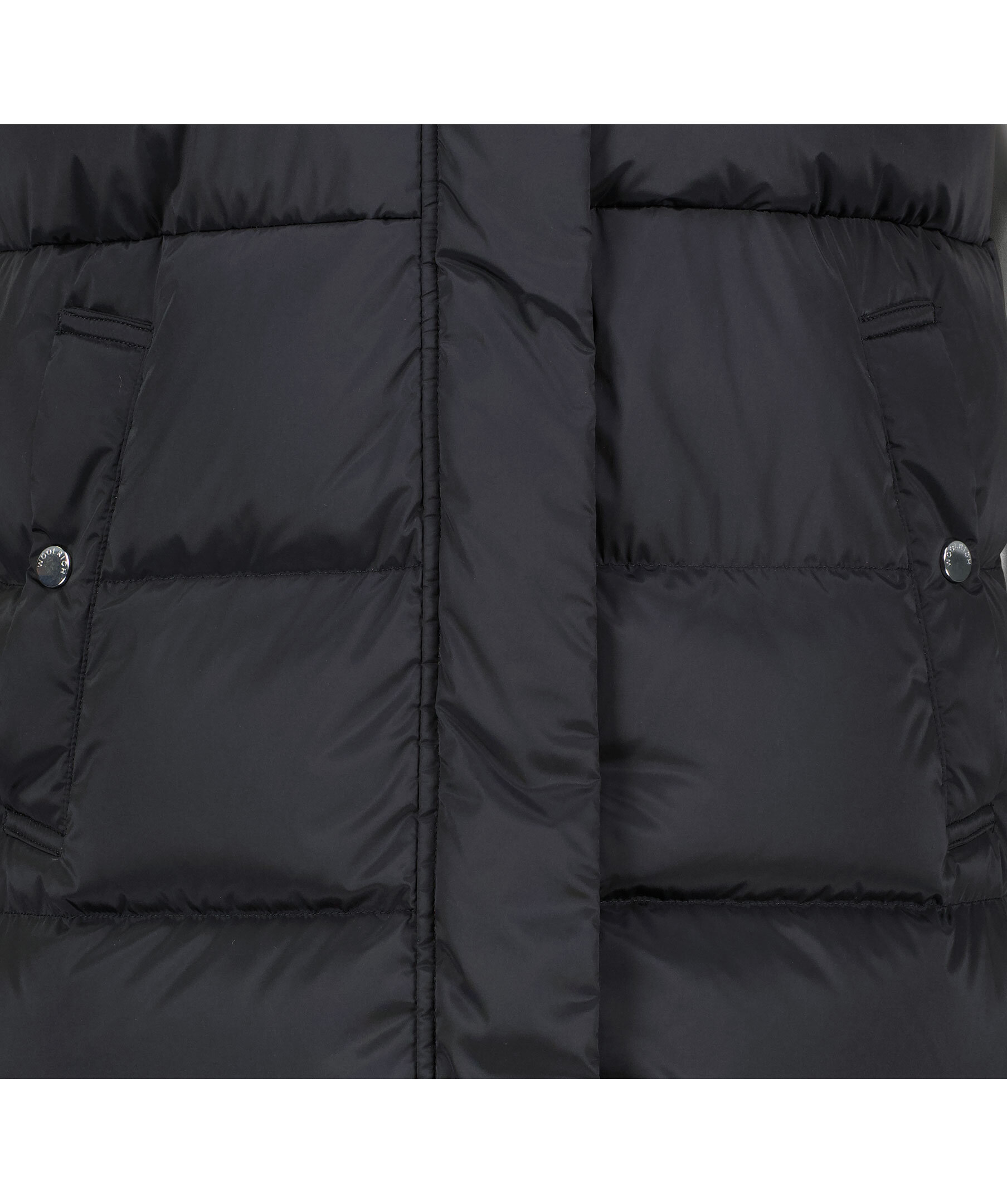 Svart Dunväst från Woolrich. Stängs framtill med tvåvägsdragkedja och tryckknappar. Två fickor framtill som stängs med tryckknappar. Slits med dragkedja.