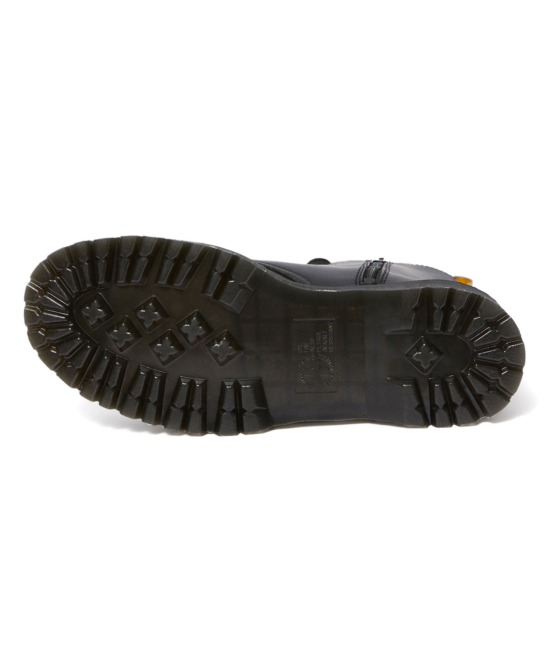 Svarta klassiska kängor från Dr. Martens. 8 håls snörning med svarta skosnören framtill, dragkedja i sidan, ikonisk häl-ögla, tillverkade i läder med hög gummisula. Unisex-modell.