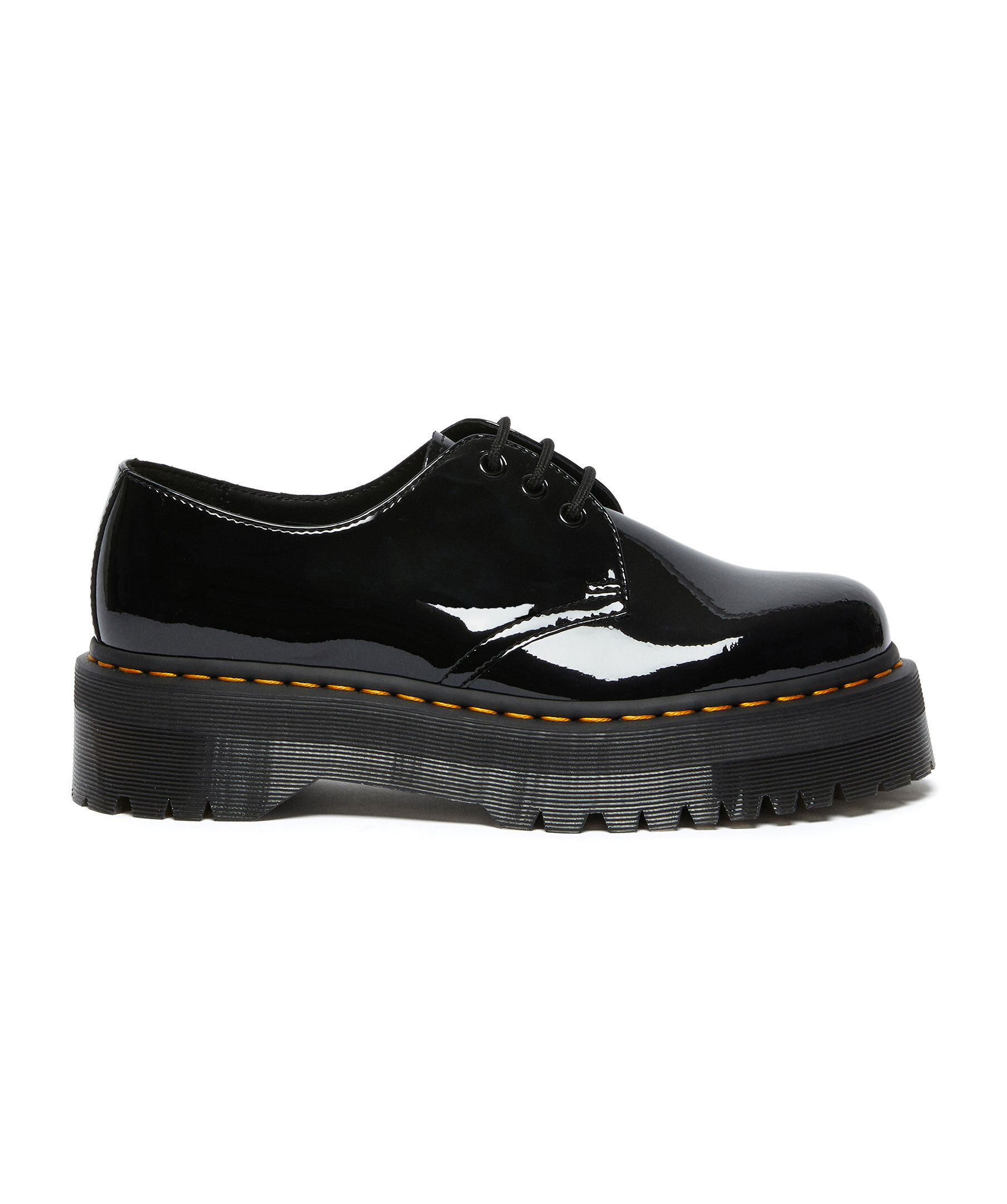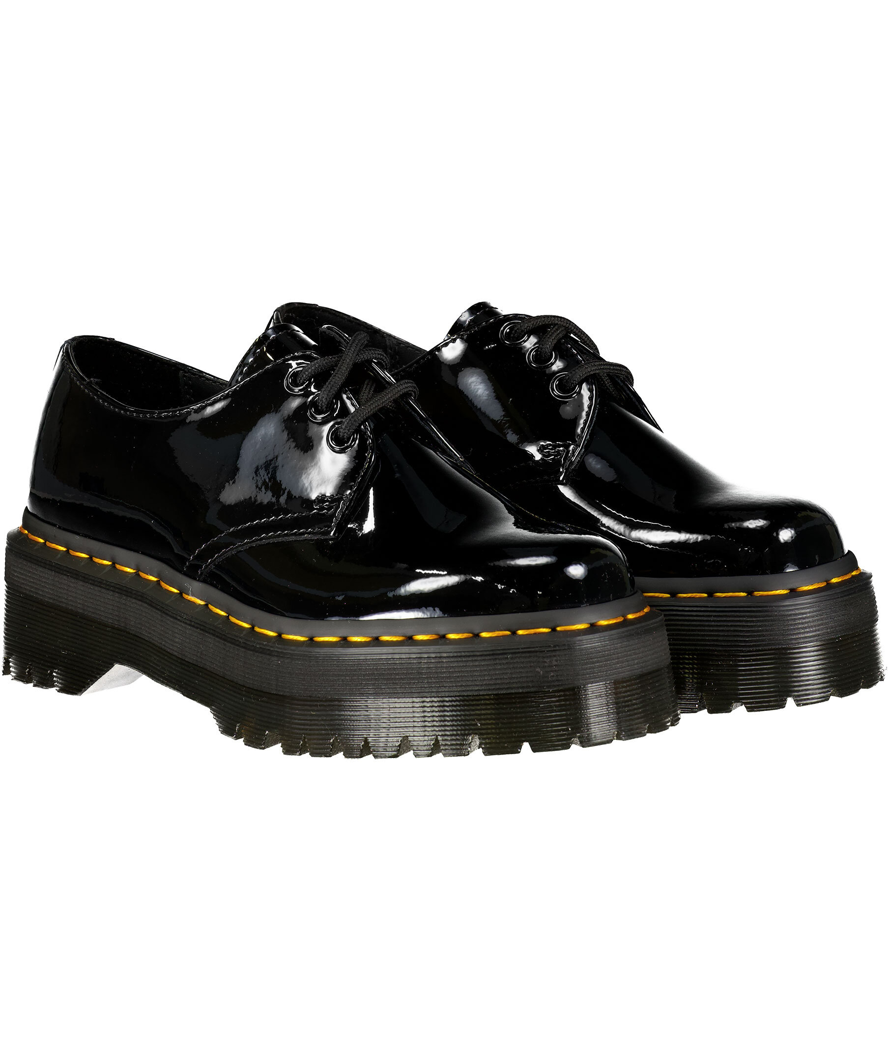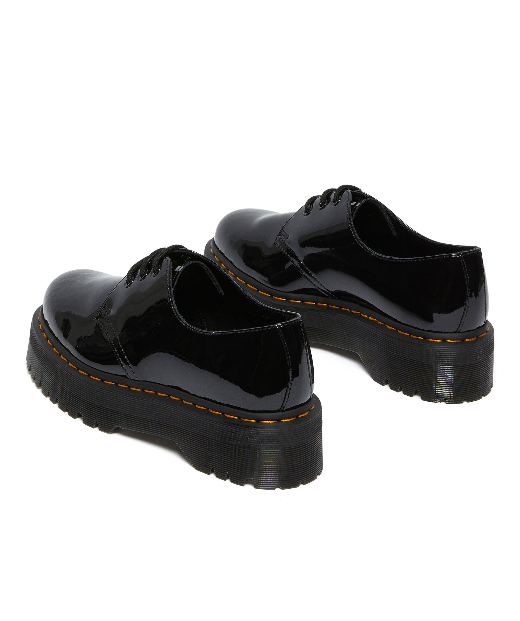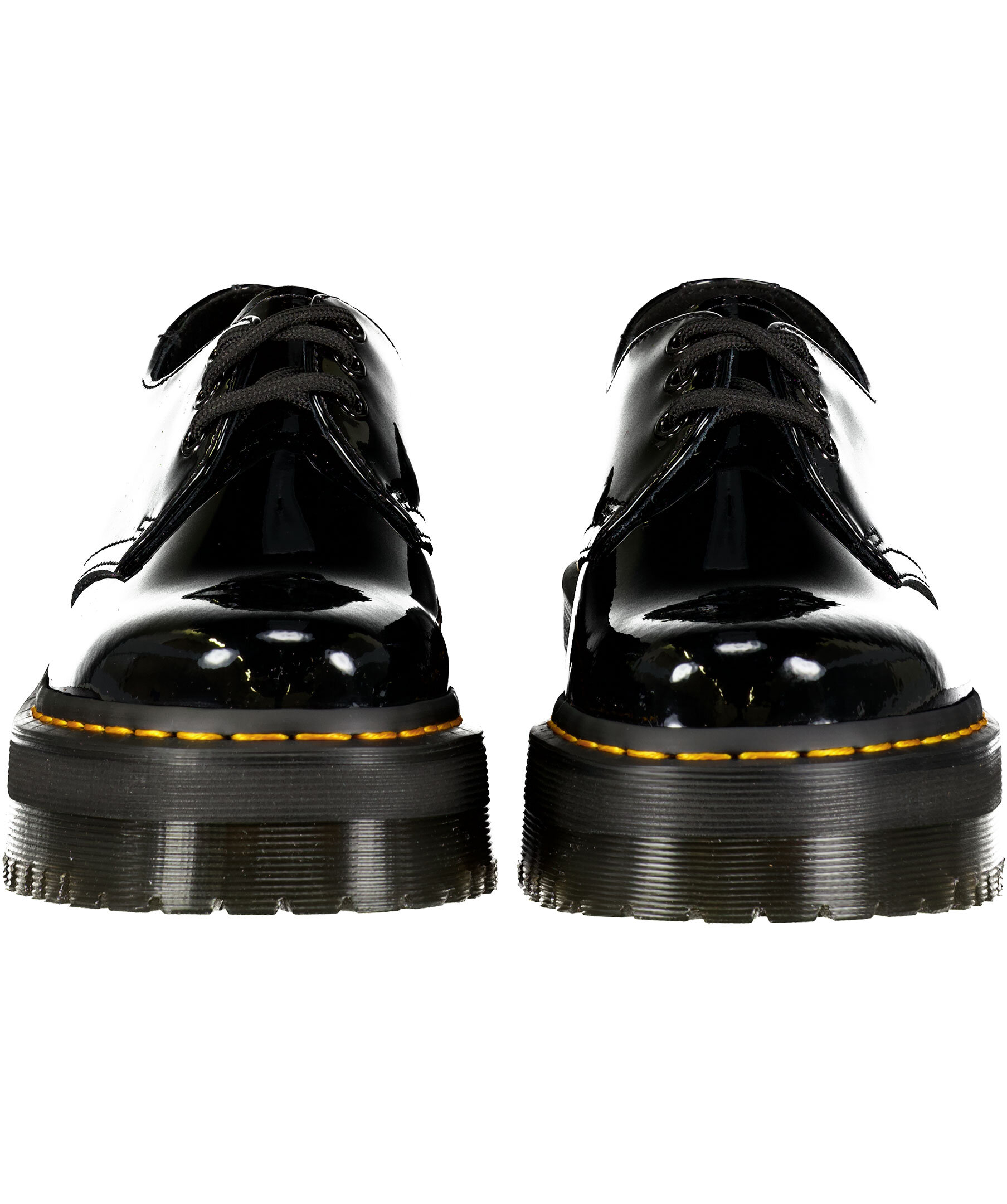 Svarta glansiga skor från Dr. Martens. Tillverkade i glansigt läder med sula i gummi. Platåsula, 3-hålssnörning. Klackhöjd: 5 cm