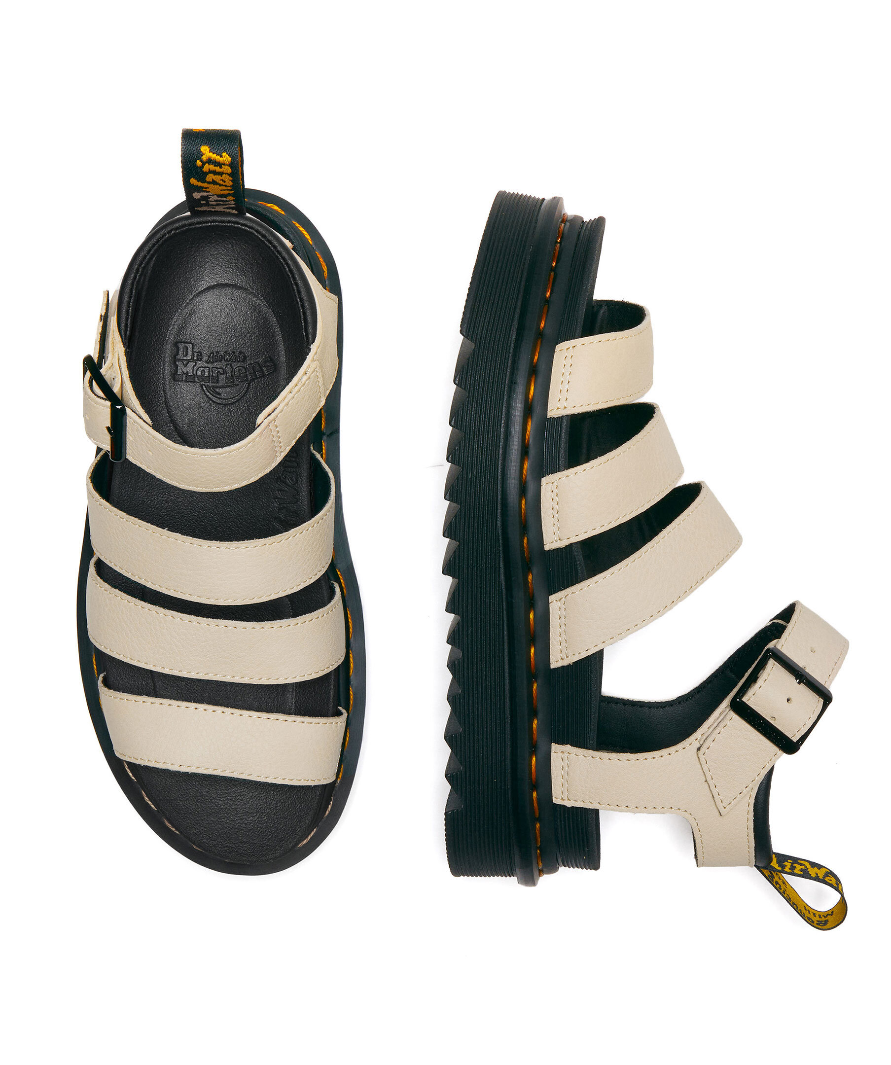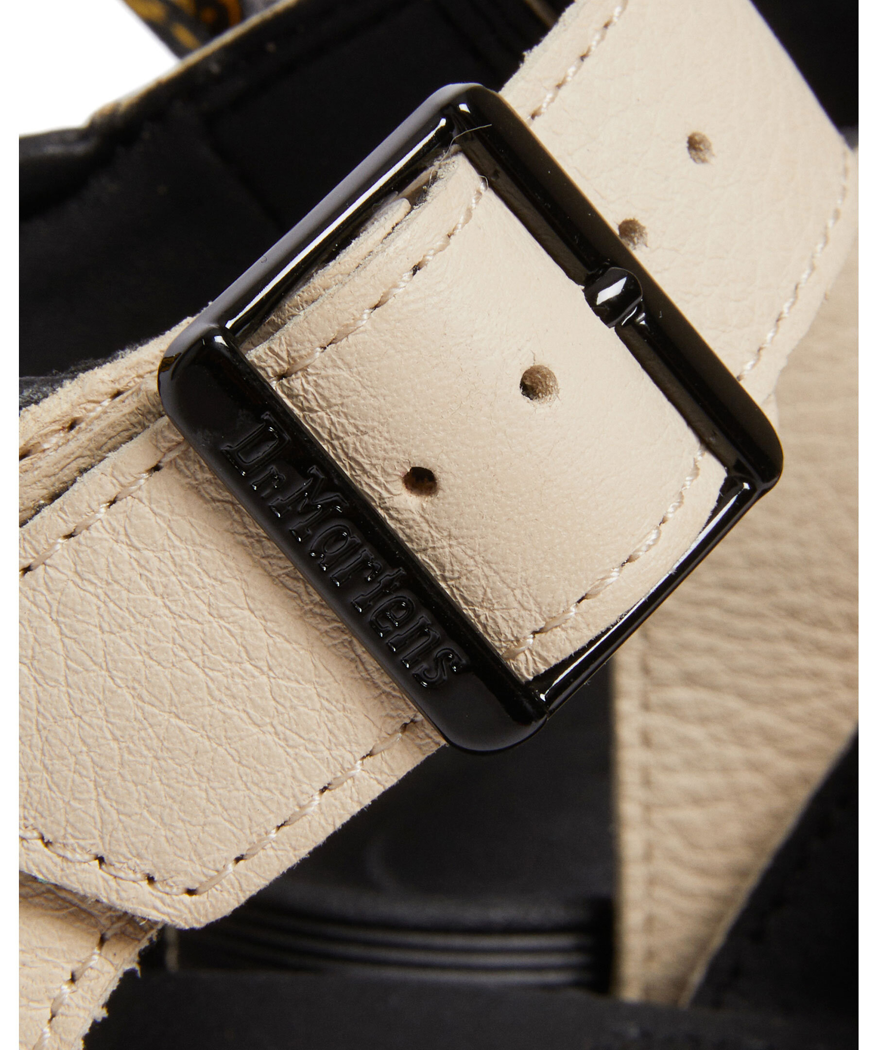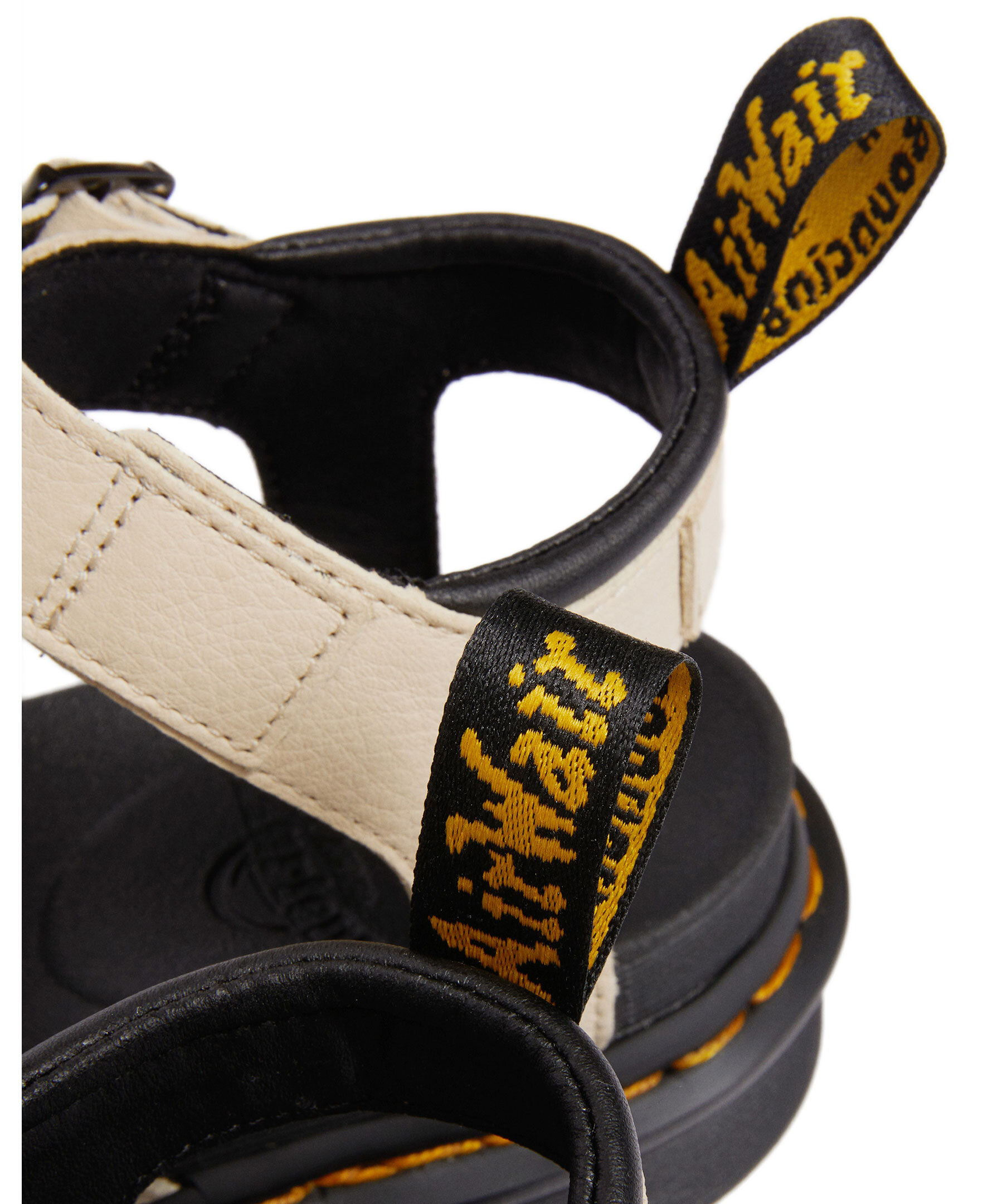 Beigea sandaler med attityd från Dr. Martens. Extra komfort, justerbar rem upptill och tre remmar över foten. En superlätt sula i PVC med en svag luftning för ytterligare höjd och en extremt slitstark Goodyear svetsning. Tillverkade av ett slätt, belagt läder med en matt finish.