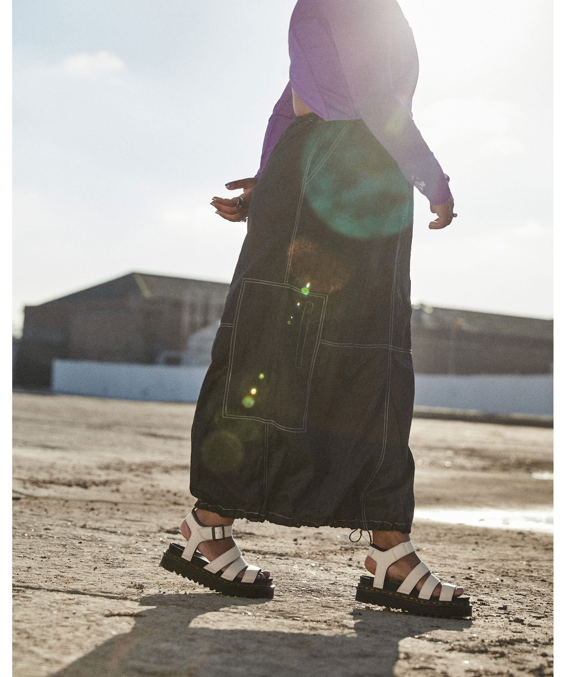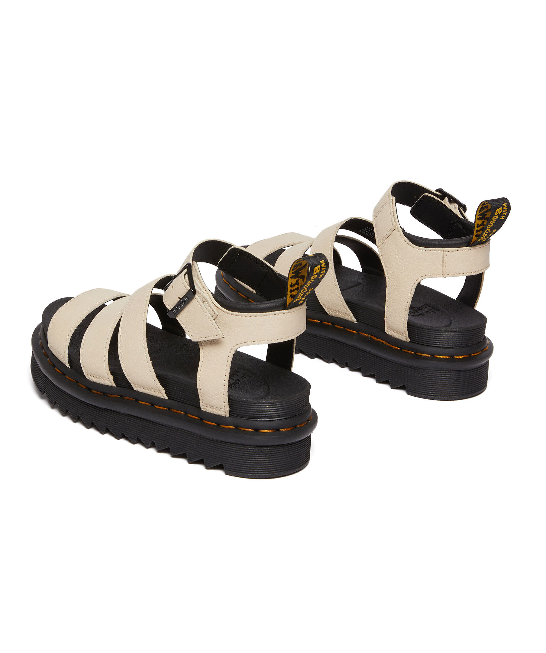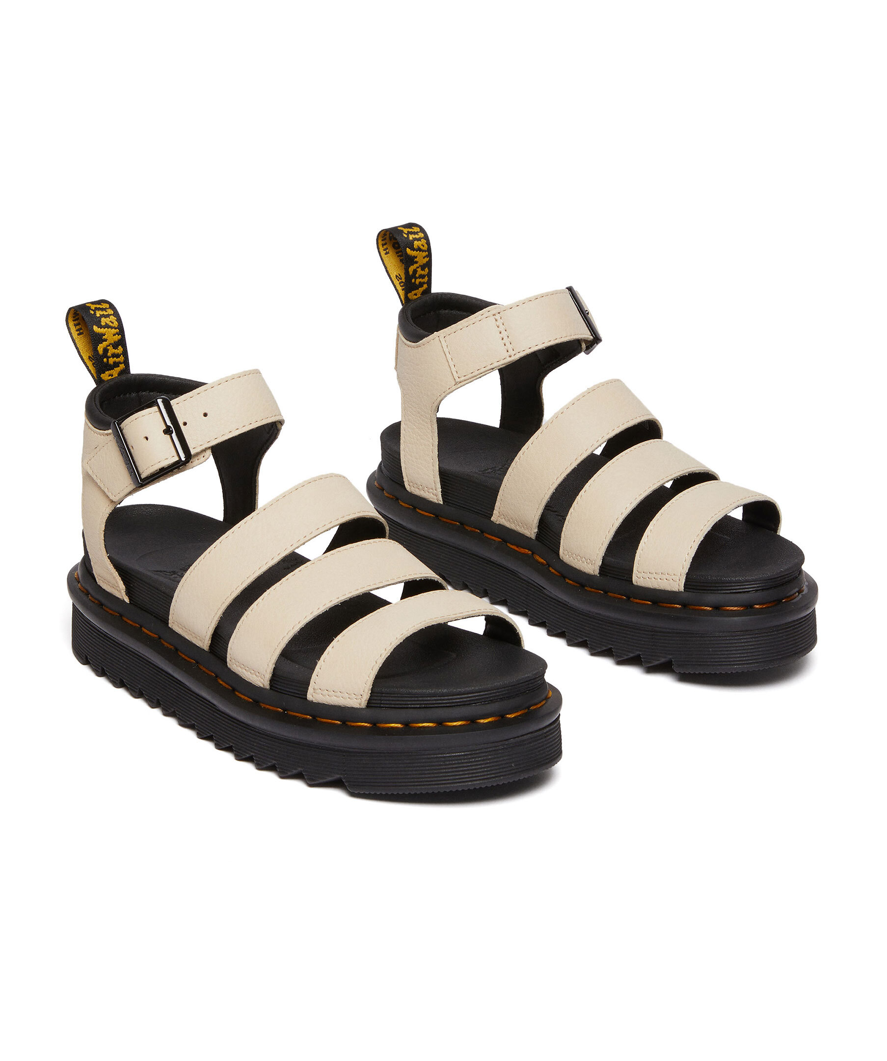 Beigea sandaler med attityd från Dr. Martens. Extra komfort, justerbar rem upptill och tre remmar över foten. En superlätt sula i PVC med en svag luftning för ytterligare höjd och en extremt slitstark Goodyear svetsning. Tillverkade av ett slätt, belagt läder med en matt finish.