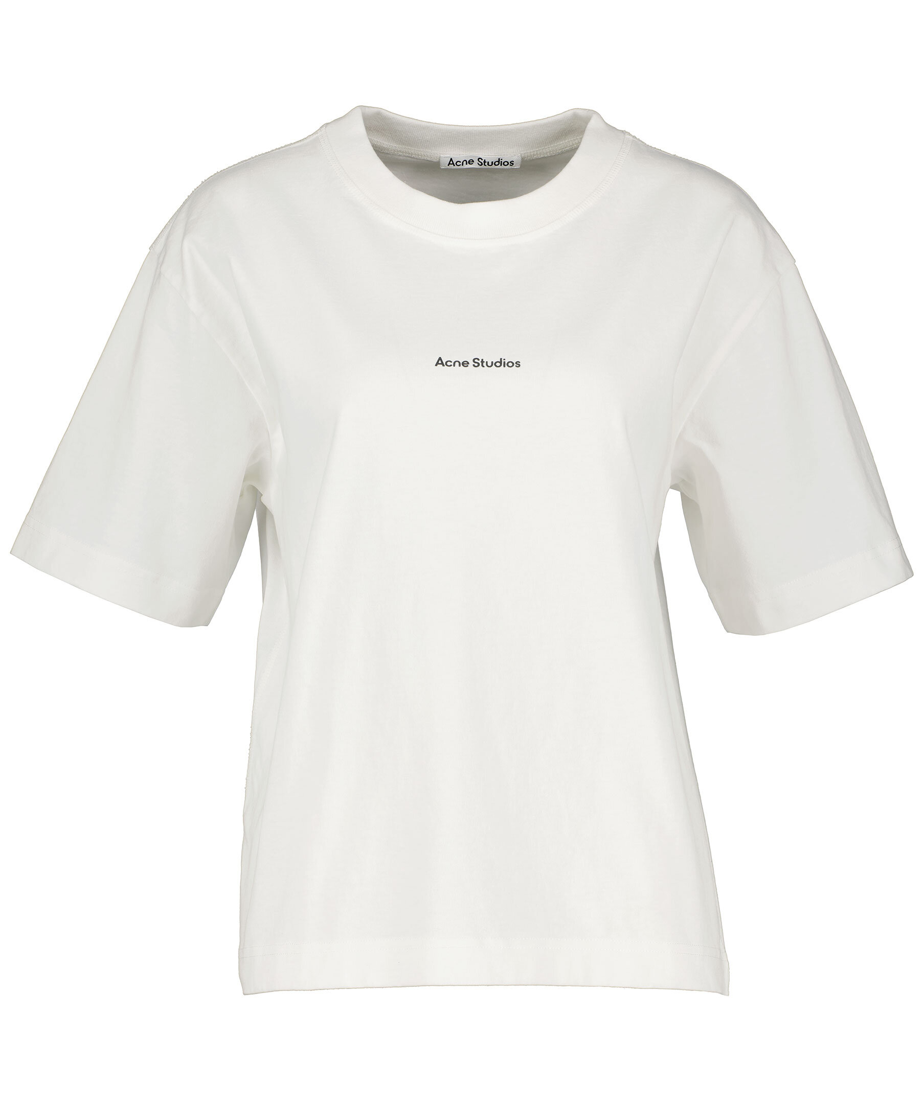 Vit kortärmad t-shirt från Acne Studios. Tröjan är gjord i ett kraftigt bomullstyg med en ribbad crew neck. Liten logotyp tryckt på bröstet. Avslappnad passform med droppade axlar.