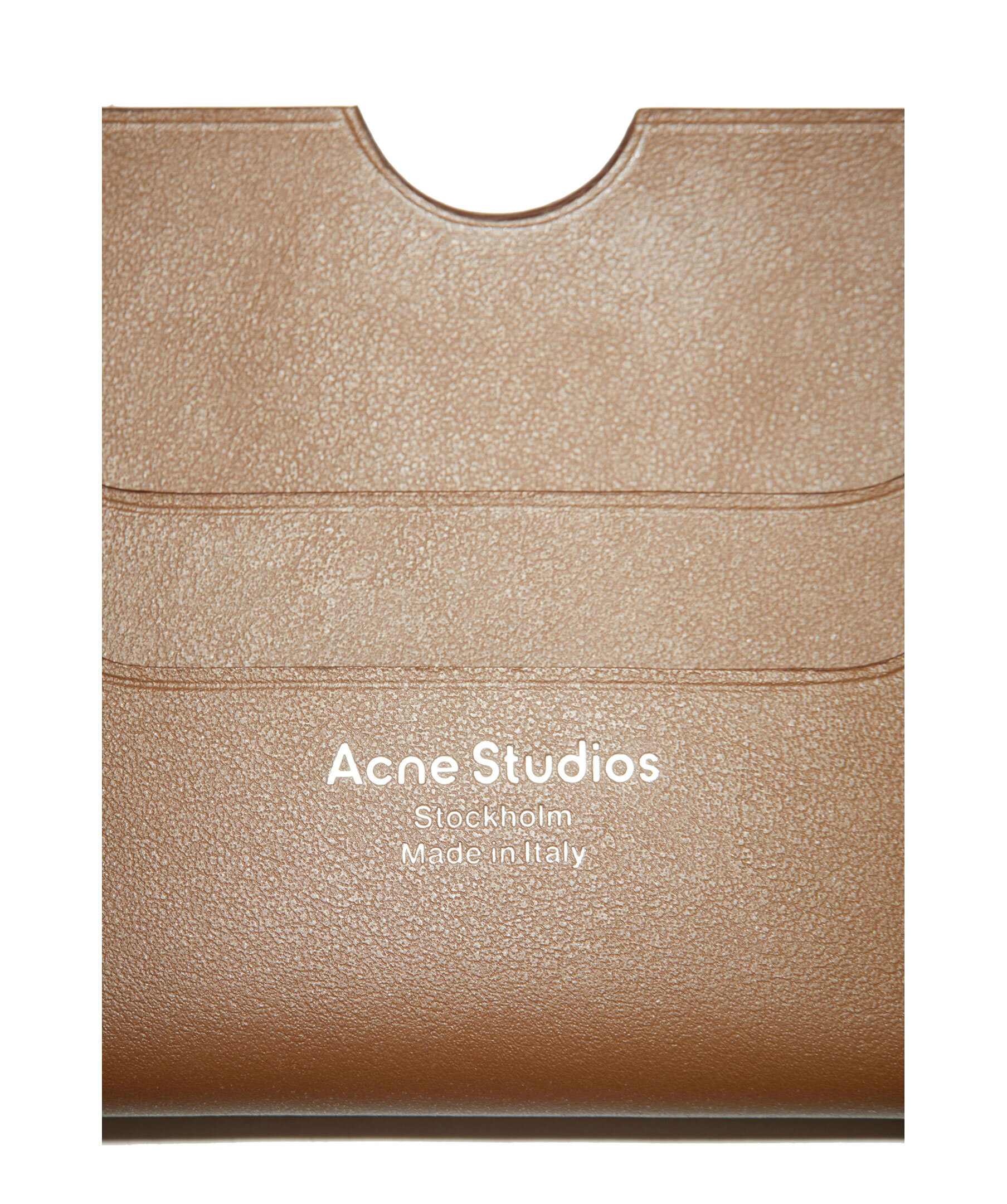 Brun korthållare från Acne Studios. Fem fack. Silverfärgade logotyper. Tillverkad i läder.