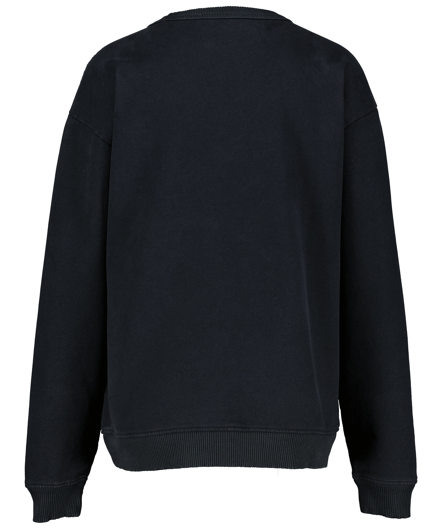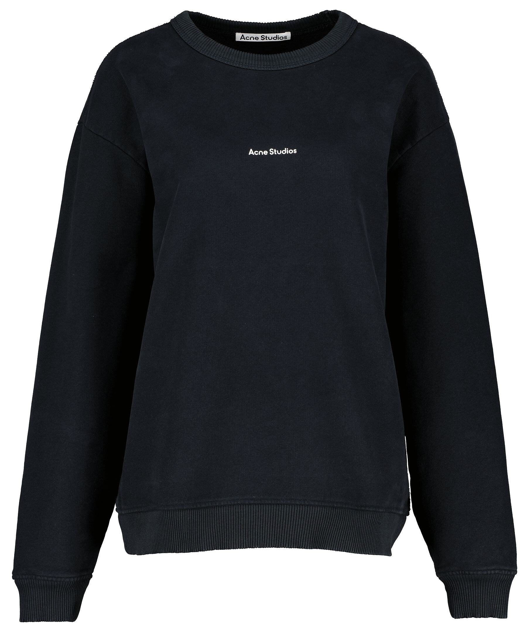 Svart sweatshirt från Acne Studios. Tröjan är gjord i ett kraftigt bomullstyg med en semi borstad insida. Ribbade muddar vid halsringen, ärm och plaggslut. Liten logotyp tryckt på bröstet. Avslappnad passform med droppade axlar.