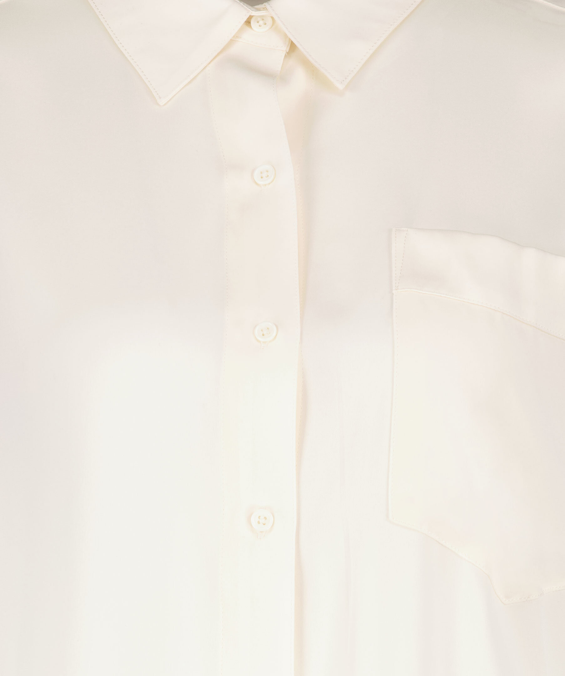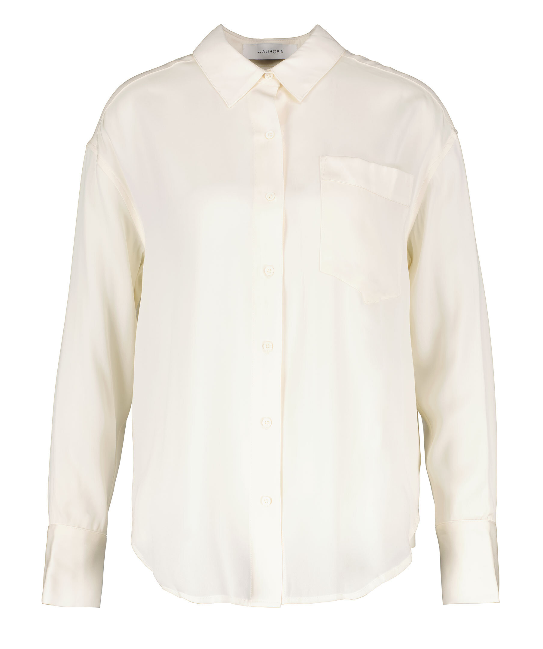 Krämvit skjorta från My Aurora. Stängs framtill med knappar. Spetsig krage. Bröstficka på vänster sida. Enkla manschetter. Korta slitsar i sidorna. Rundat plaggslut. Tillverkad i silkes blandning.