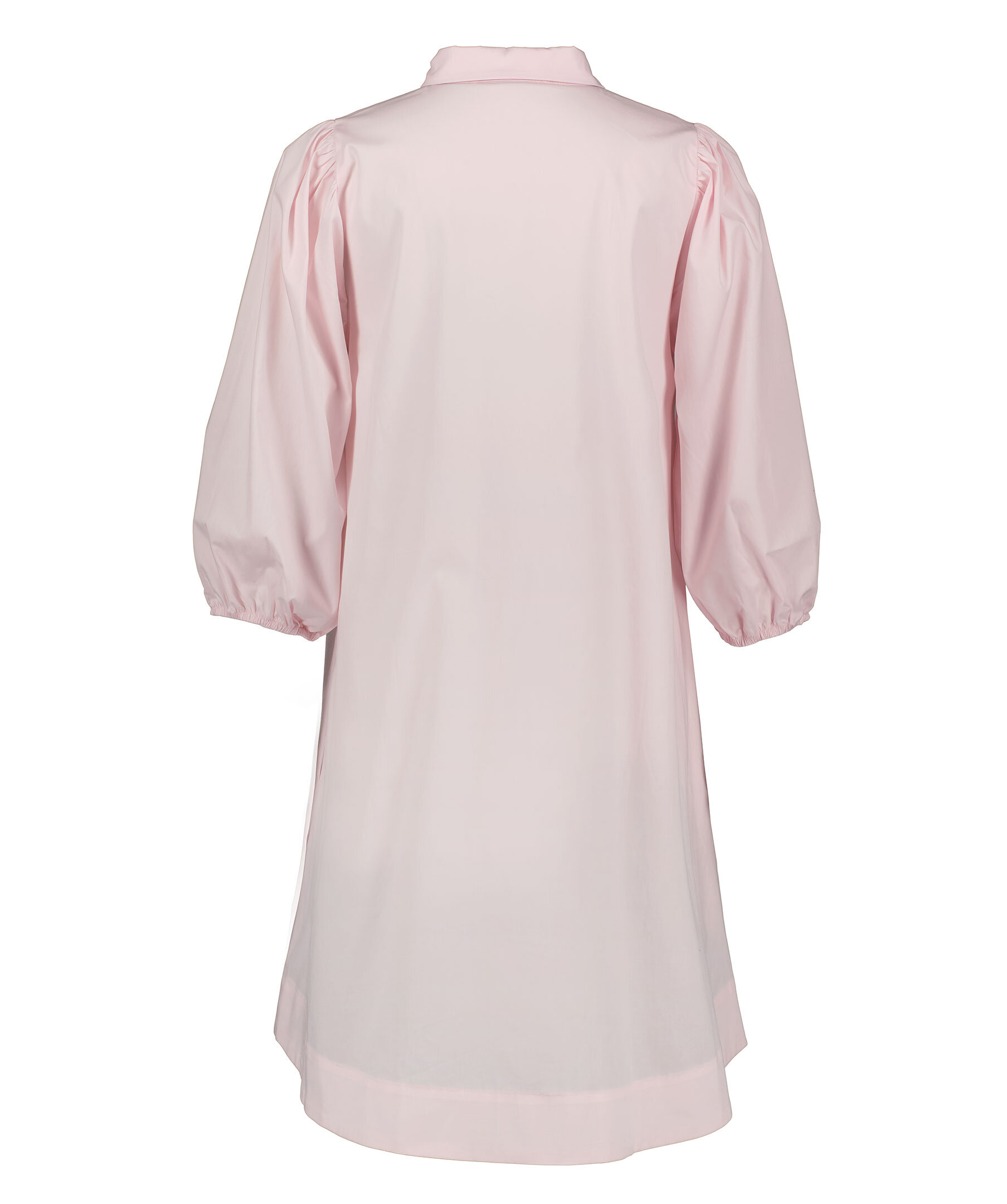 Ljusrosa skjortklänning från My Aurora. Stängs framtill med dolda knappar. Puffärmar med resår vid ärmslut. Fickor i sidorna. Tillverkad i bomullsblandning. Spetsig krage.