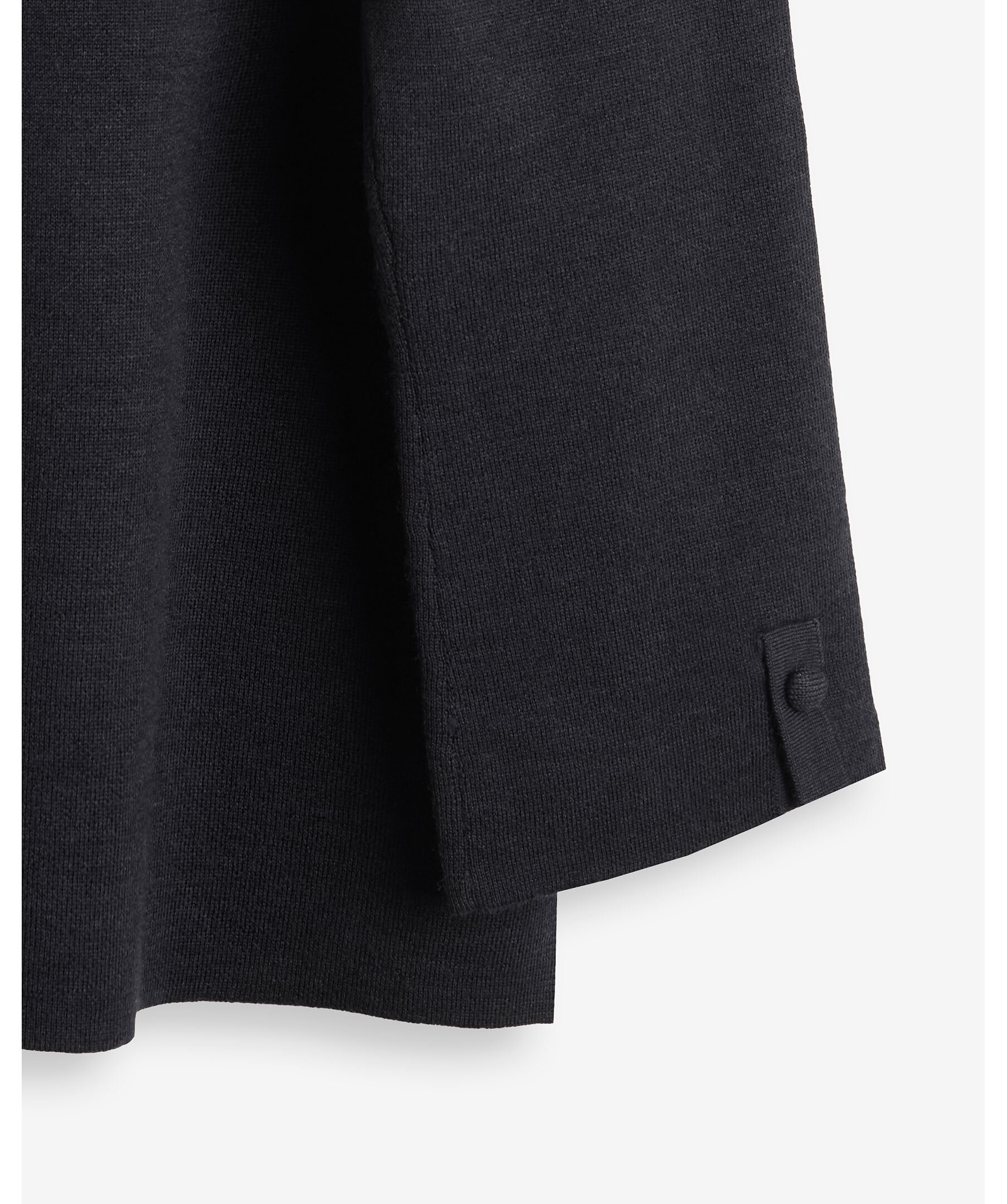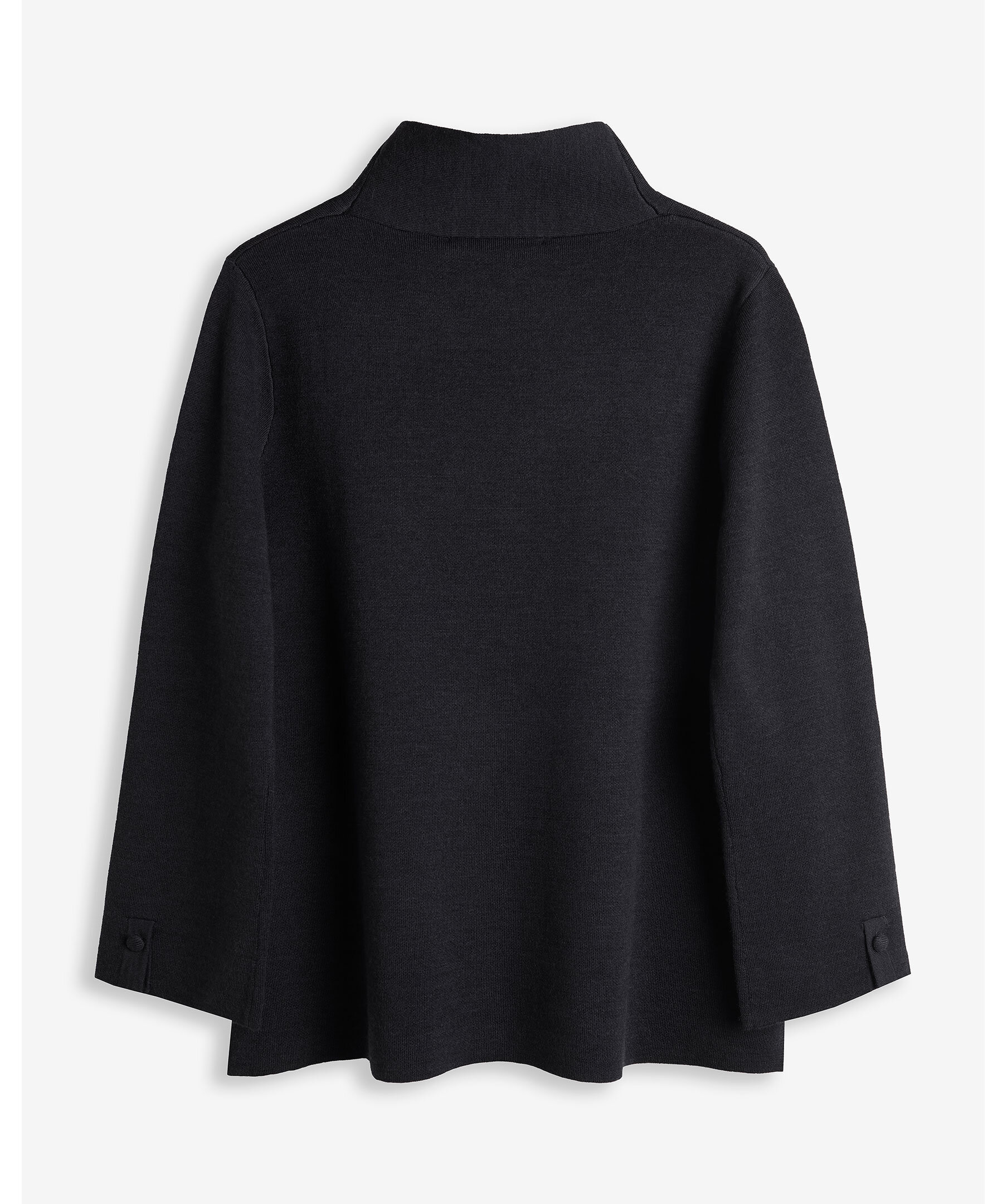 Svart, finstickad pullover med hög krage och korta slitsar i sidorna från My Aurora. Tillverkad i 100% merinoull.