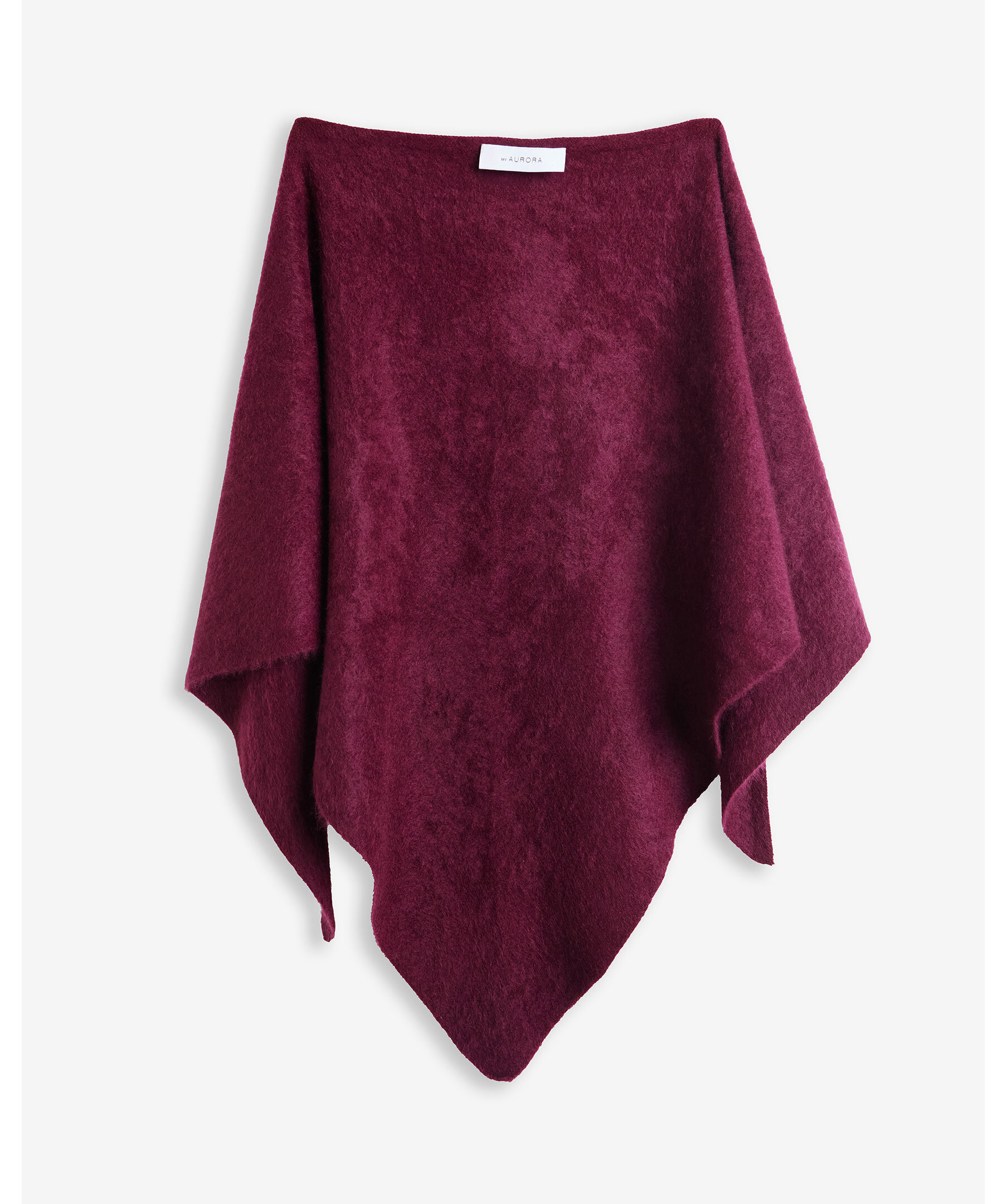 Vinröd, stickad och borstad sjal från My Aurora. Tillverkad i 100% kashmir.