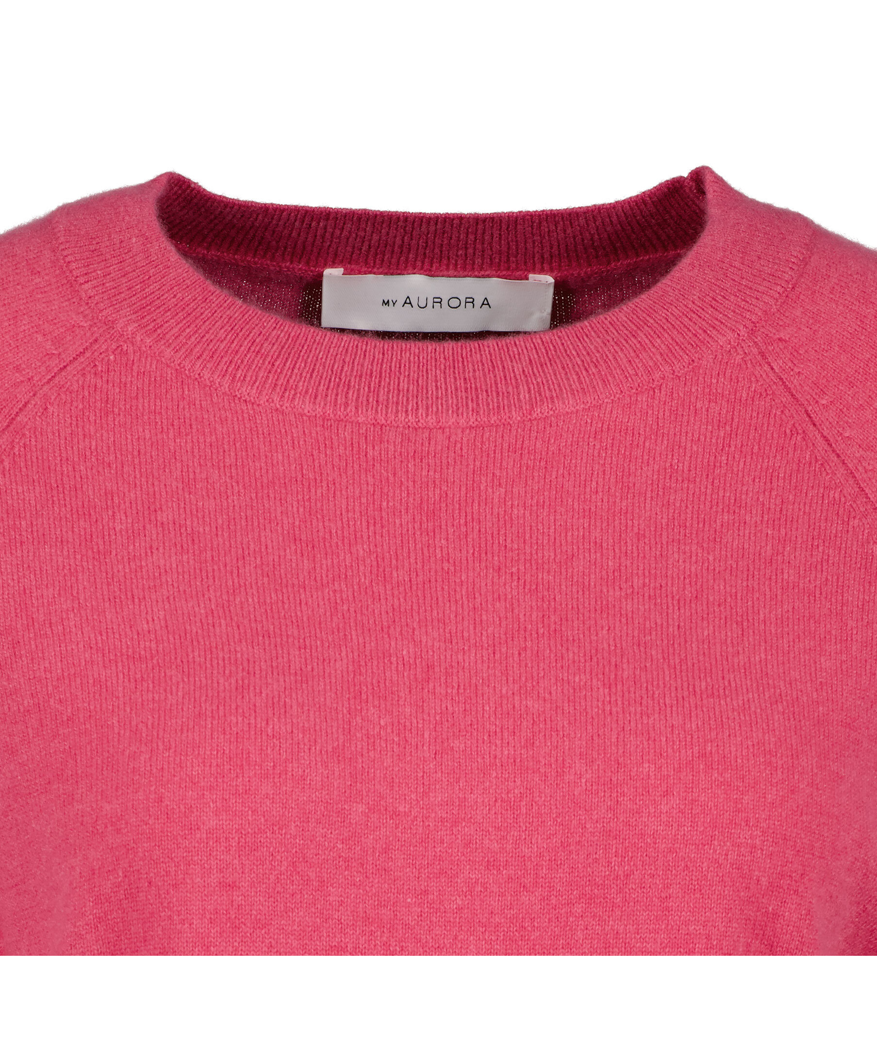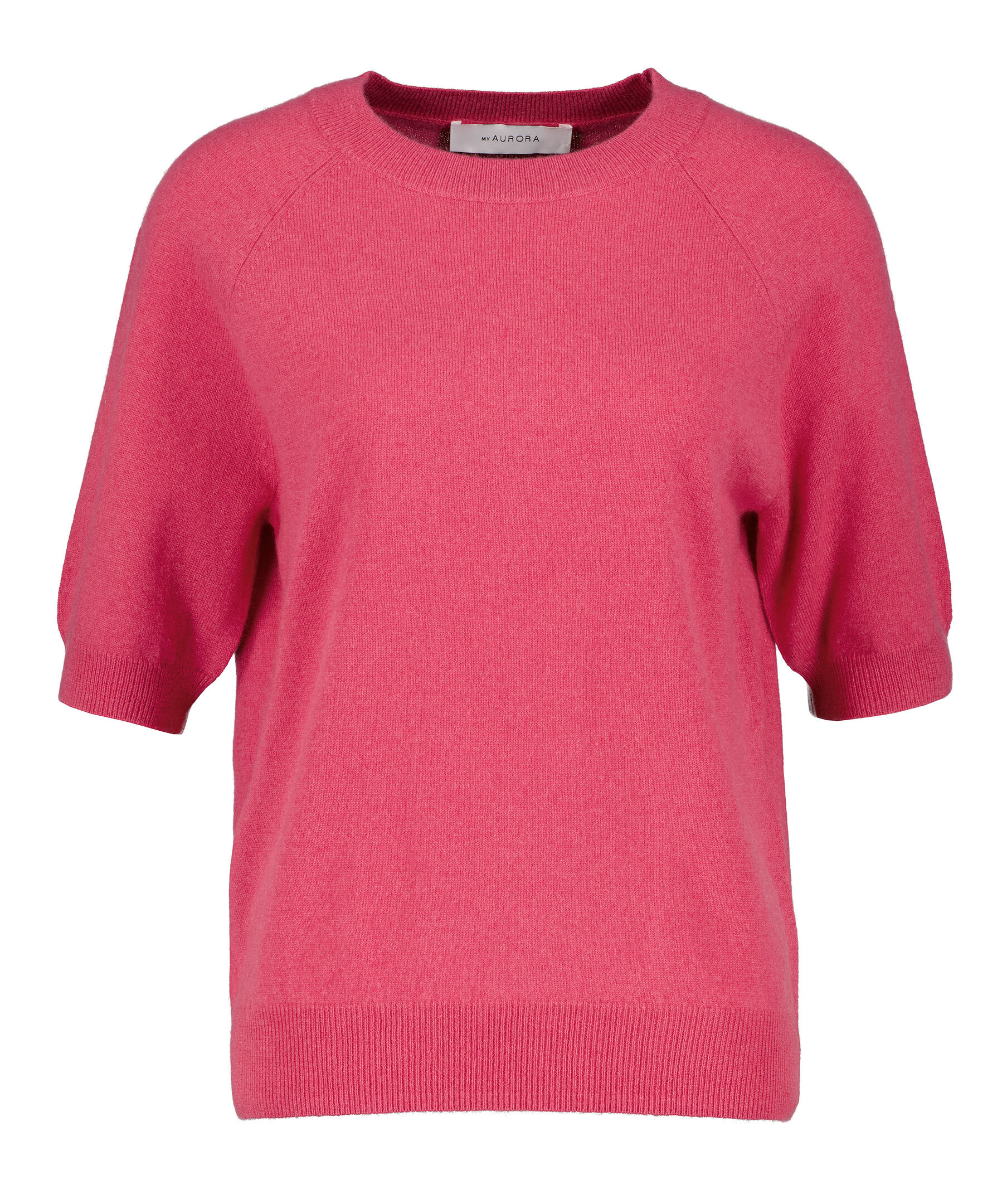 Rosa, finstickad t-shirt från My Aurora. Tillverkad i 100% kashmir. Ribbstickad halsringning samtmuddar vid ärm- och plaggslut.