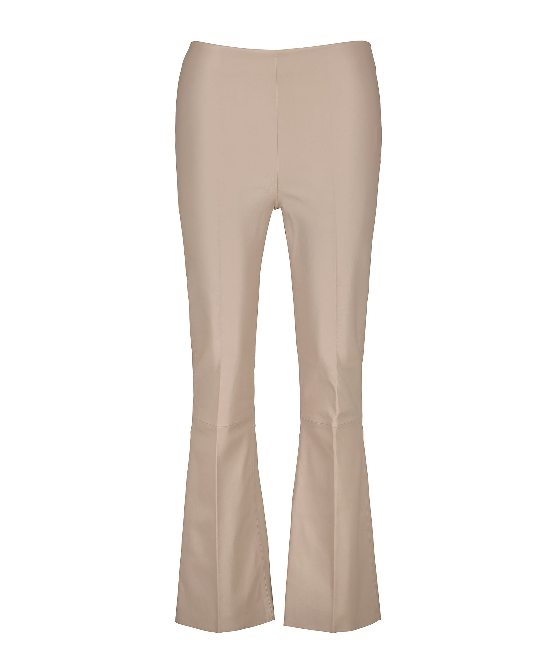 Beiga läderbyxor från My Aurora. Byxorna har dekorativa sömmar vid knän och benväck. Pressväck på fram och baksida. Tillverkade av 100% läder.