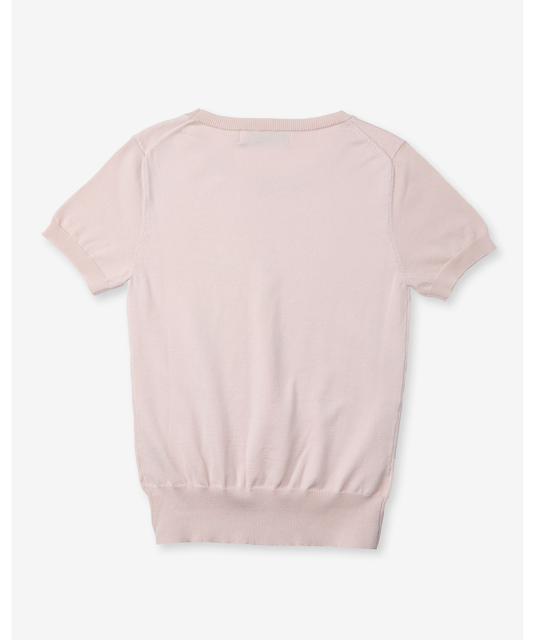 Tunn finstickad tröja i ljusrosa från My Aurora Pink. Ribbstickade muddar vid halsring, ärm och plaggslut. Tröjan är tillverkad i en blandning av viskos och nylon.