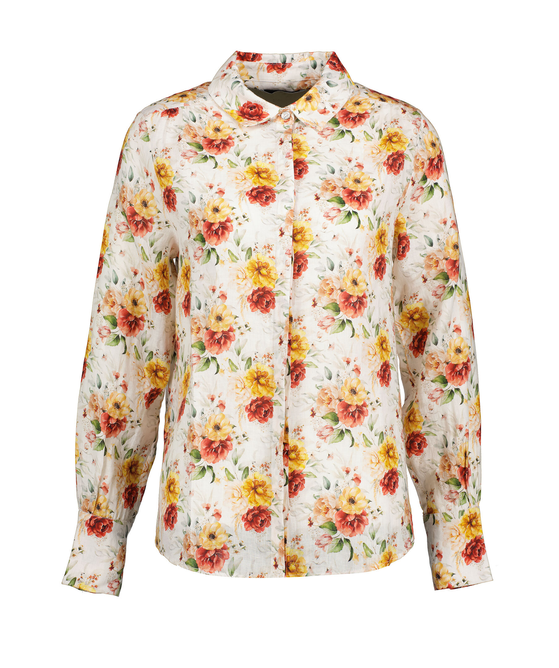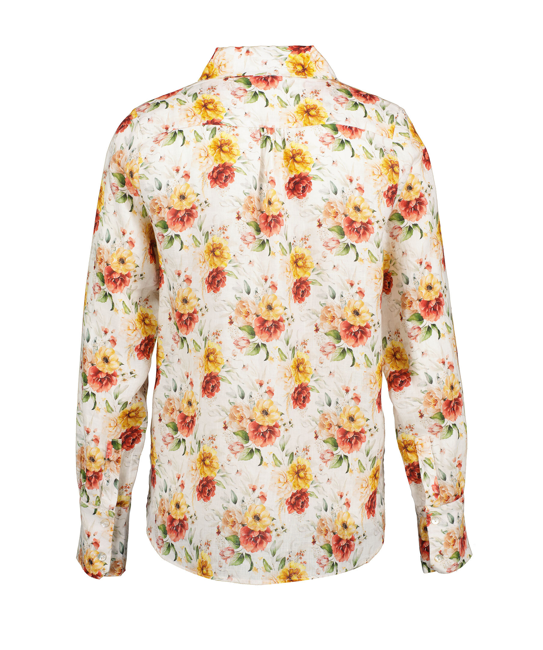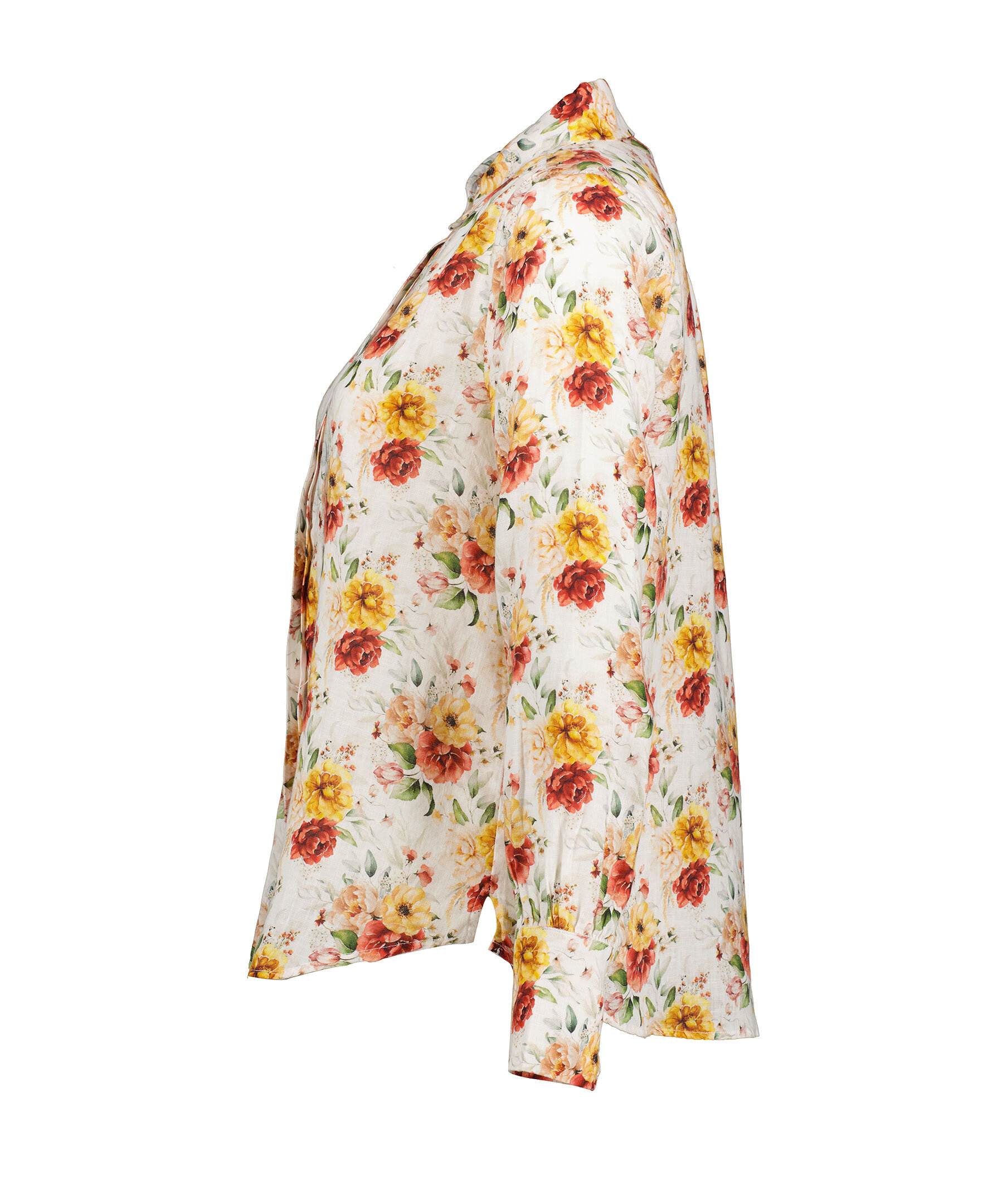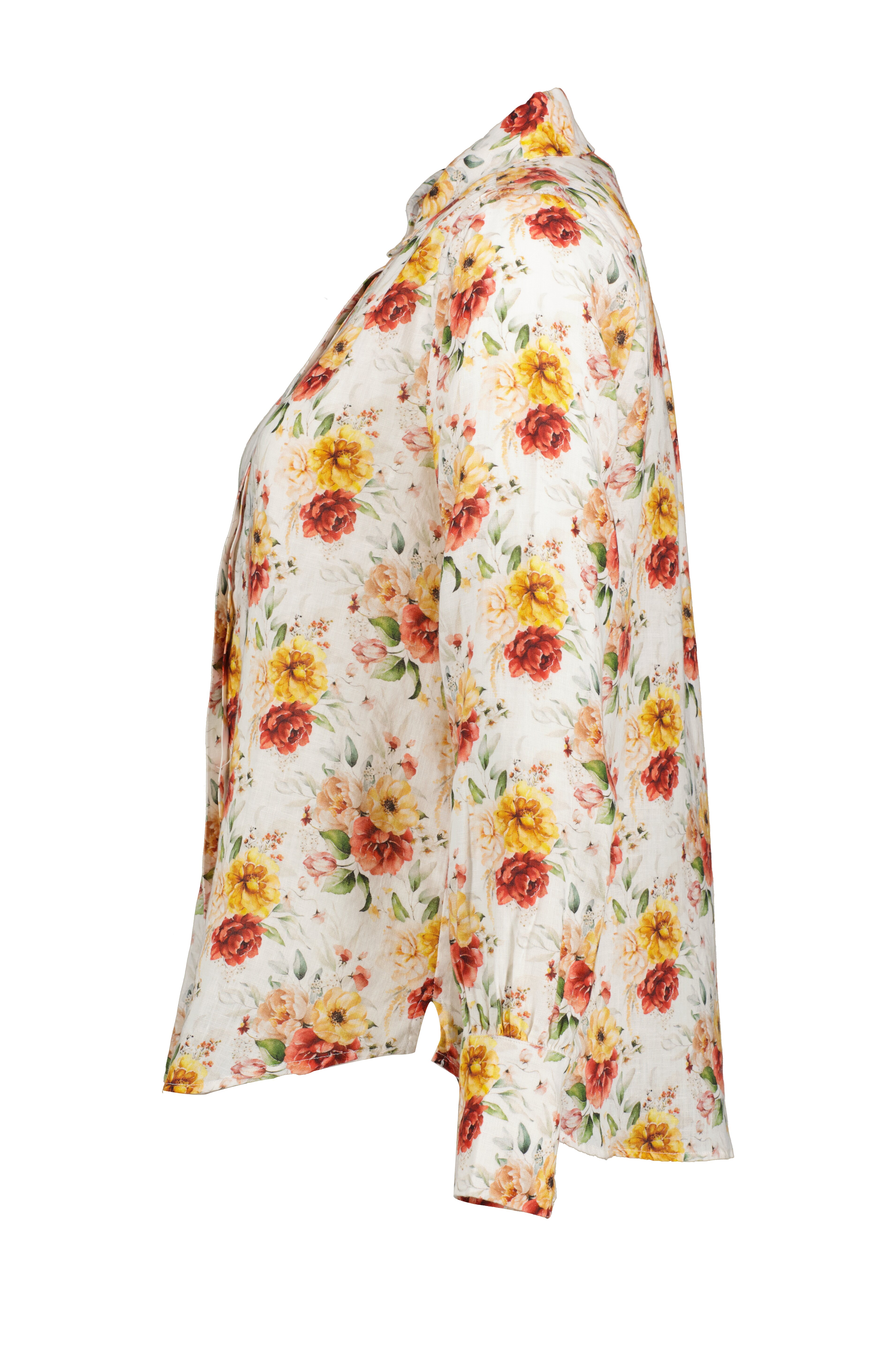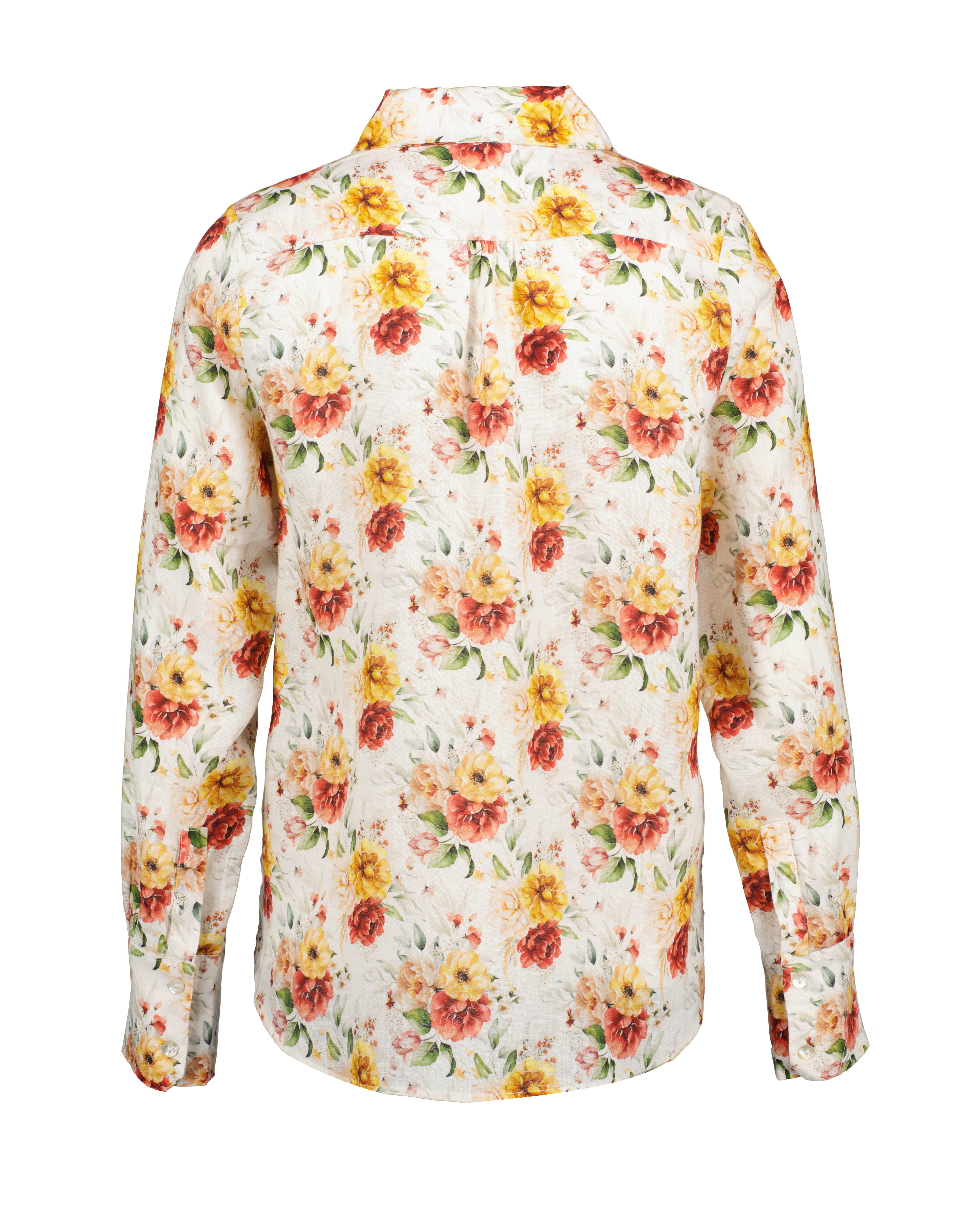 Multifärgad, blommönstrad och långärmad skjorta från My Aurora. Skjortan stängs med dolda knappar och är tillverkad i 100% lin.