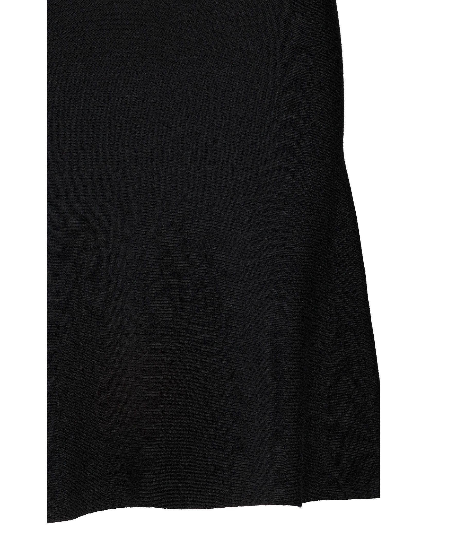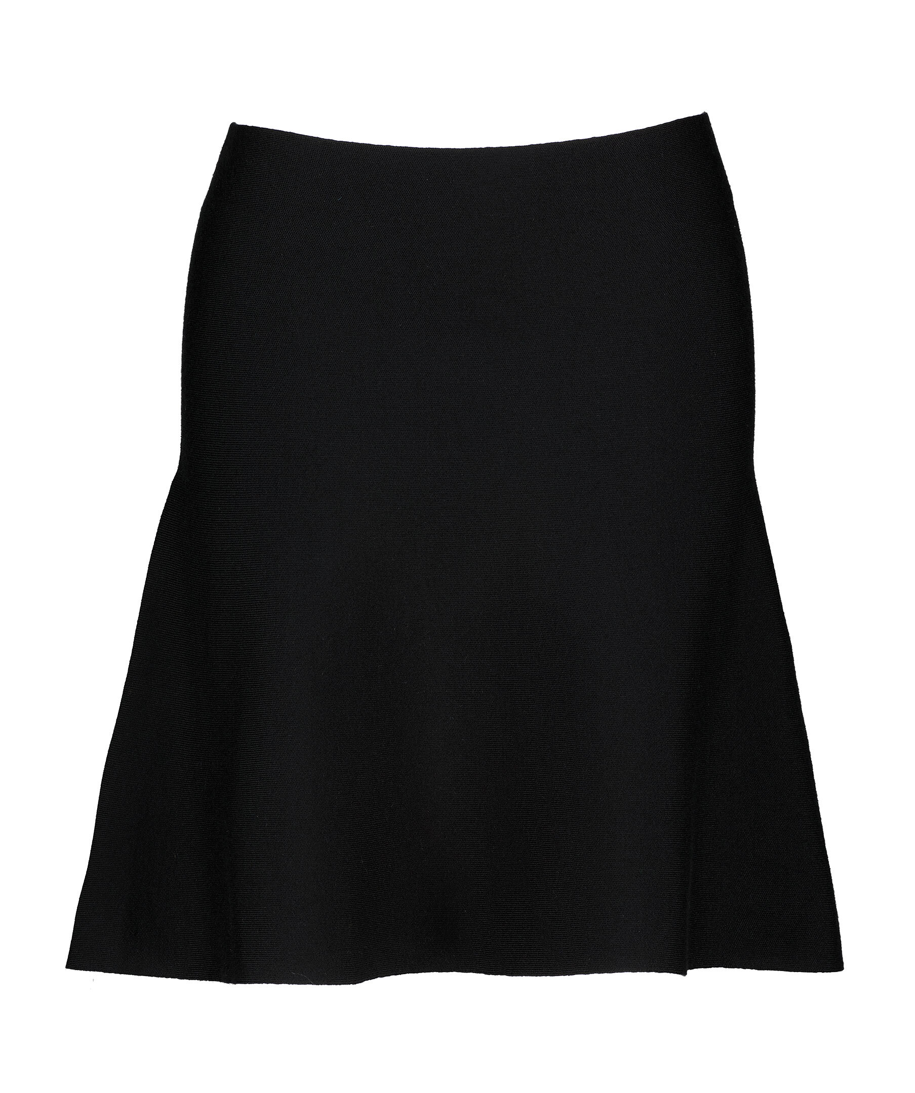Svart finstickad kjol från My Aurora. A-linjeformad. Finstickad. Tillverkad i 100% Merino ull. Kort i modellen.