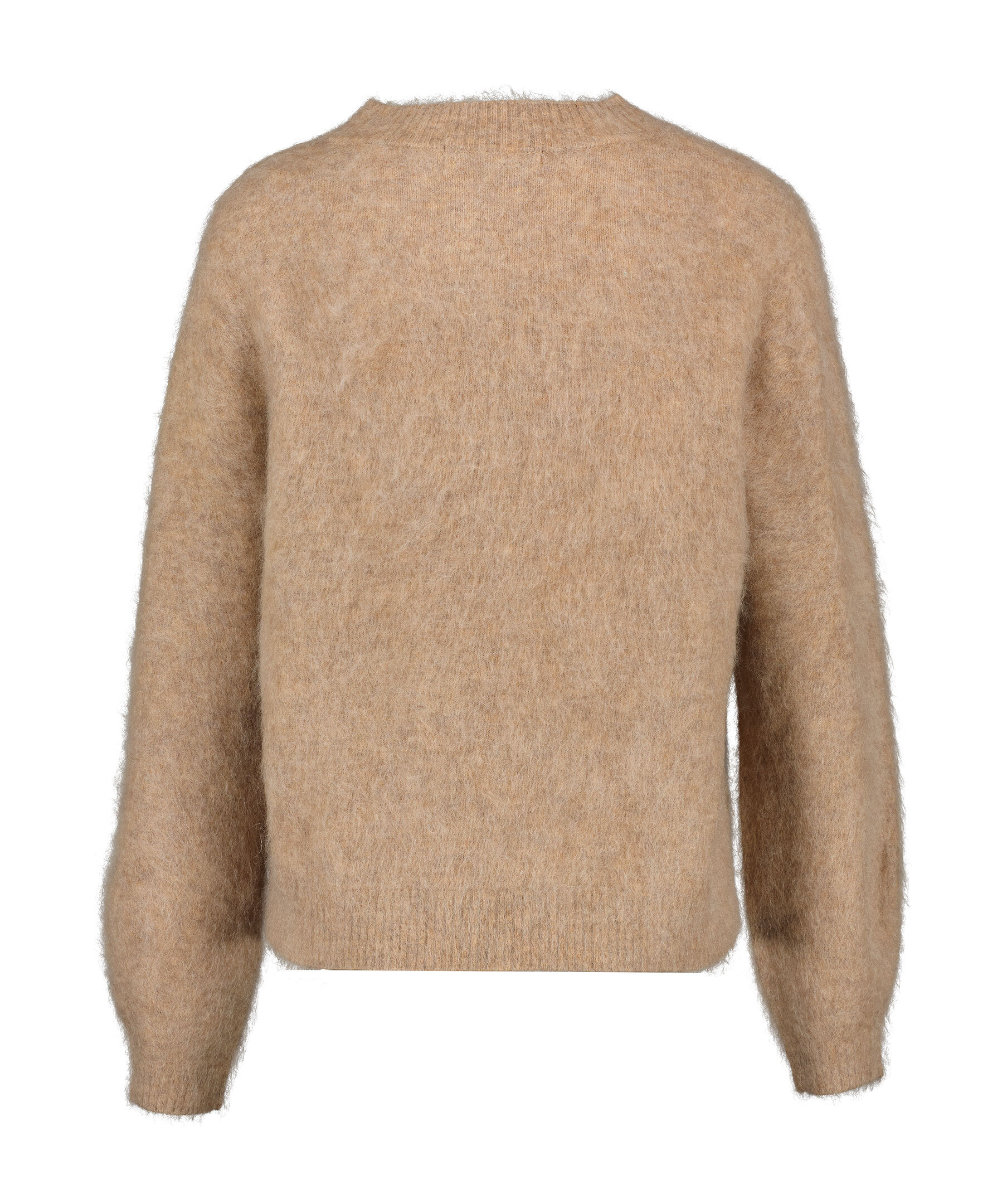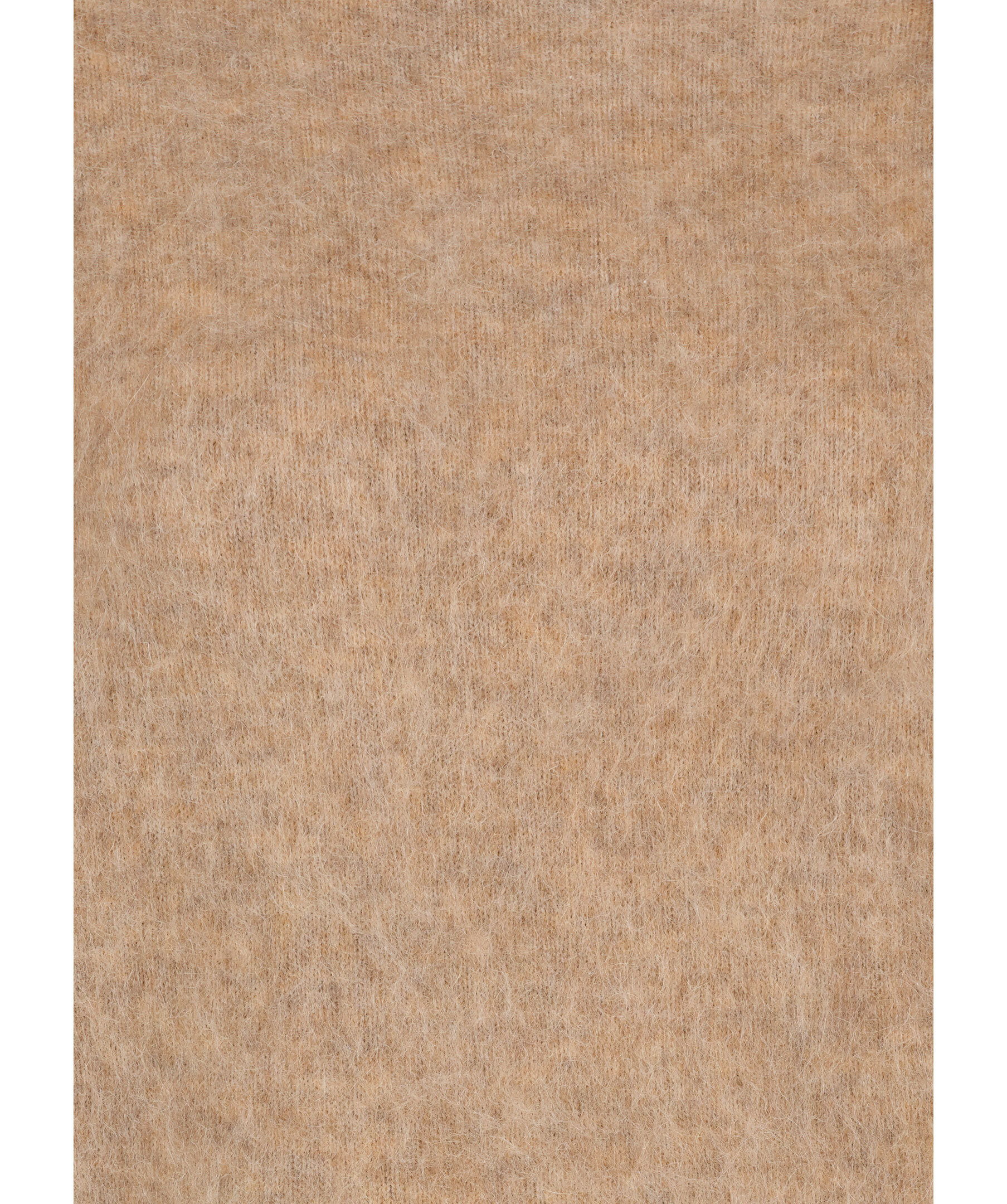 Kamelfärgad stickad pullover från My Aurora Pink. Tröjan har ribbstickad rund halsringning samt ribbstickade muddar vid ärm- och plaggslut. Tillverkad i en ullblandning.