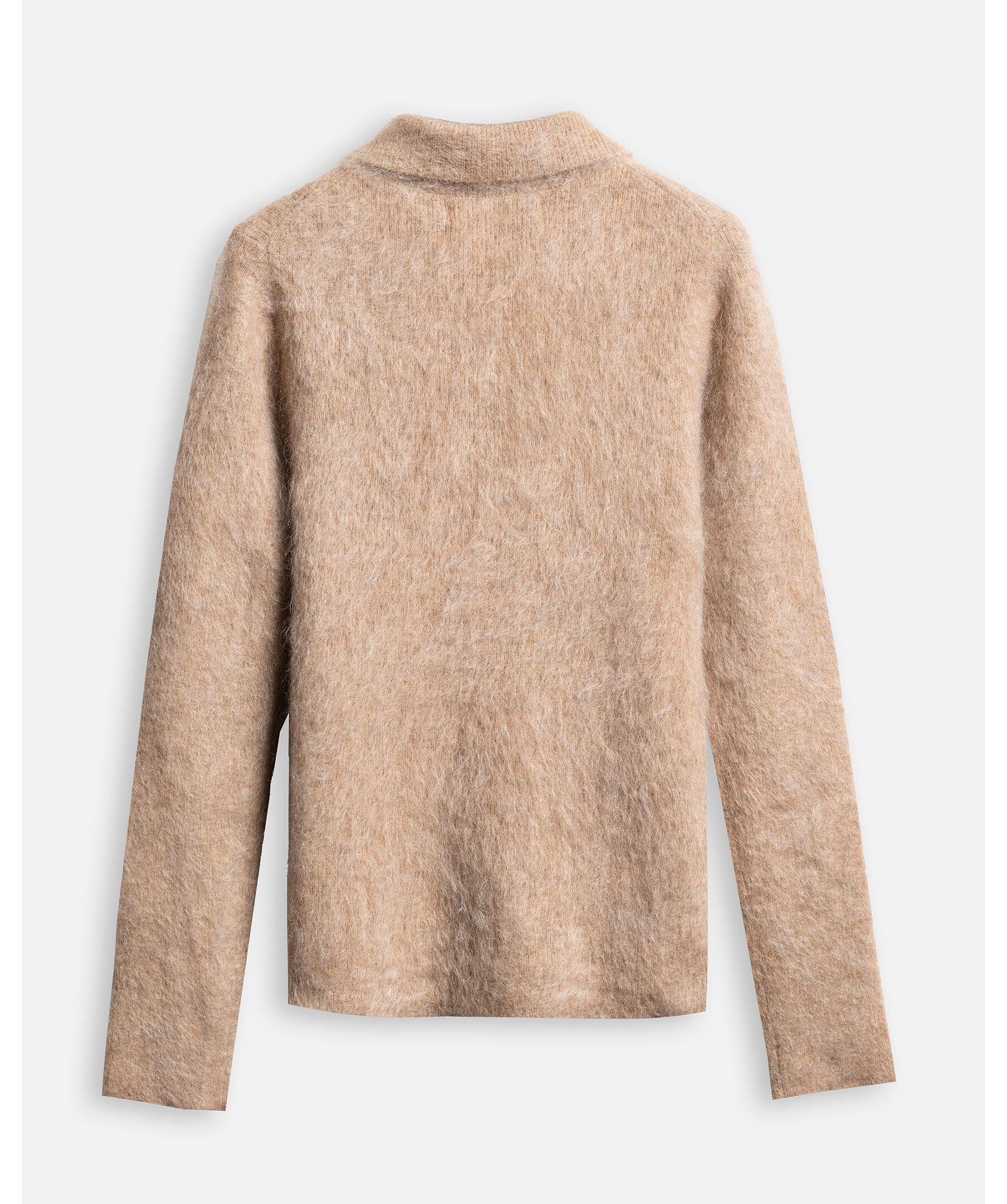 Stickad tröja i mohairblandning. Tröjan har krage och är dekorerad med strassprydda knappar.