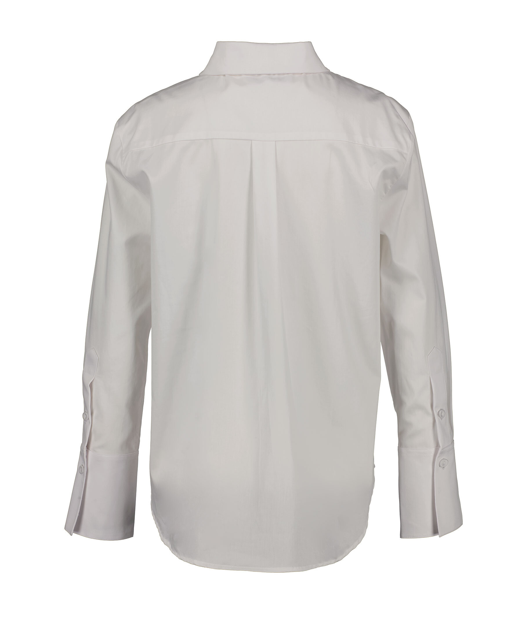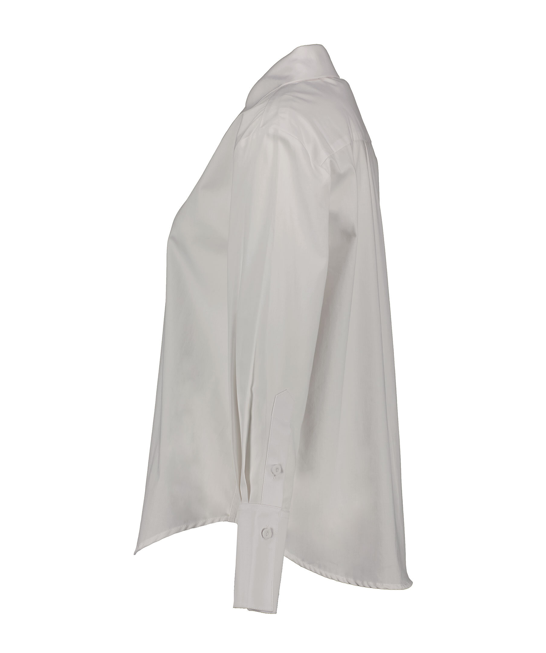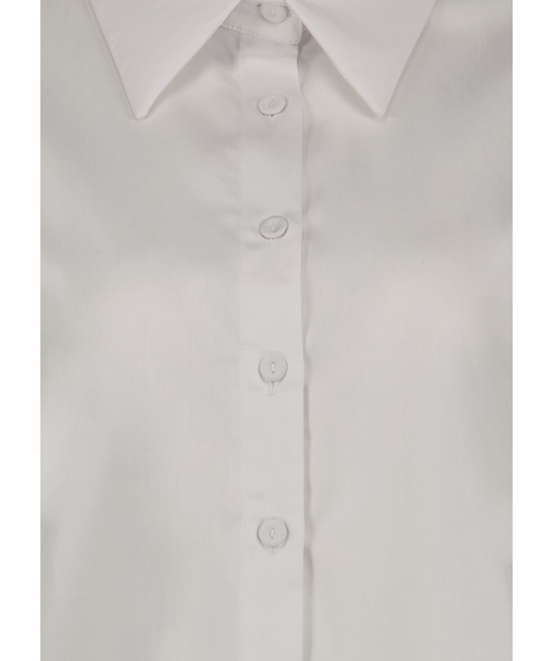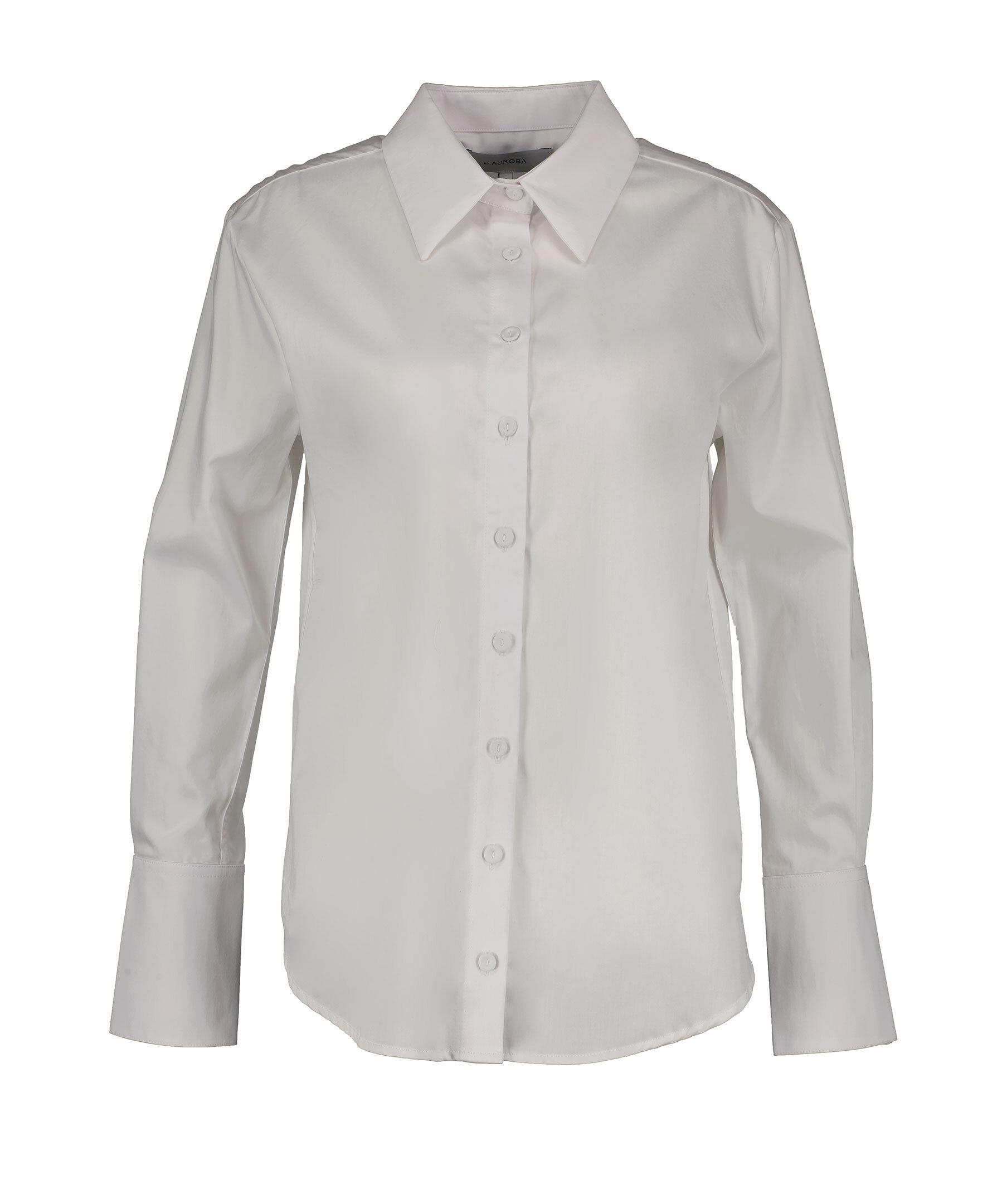 Vit skjorta från My Aurora. Skjortan stängs med klädda knappar, har breda ärmavslut med klädda manschetter och rundat avslut. Tillverkad av 100% bomull.