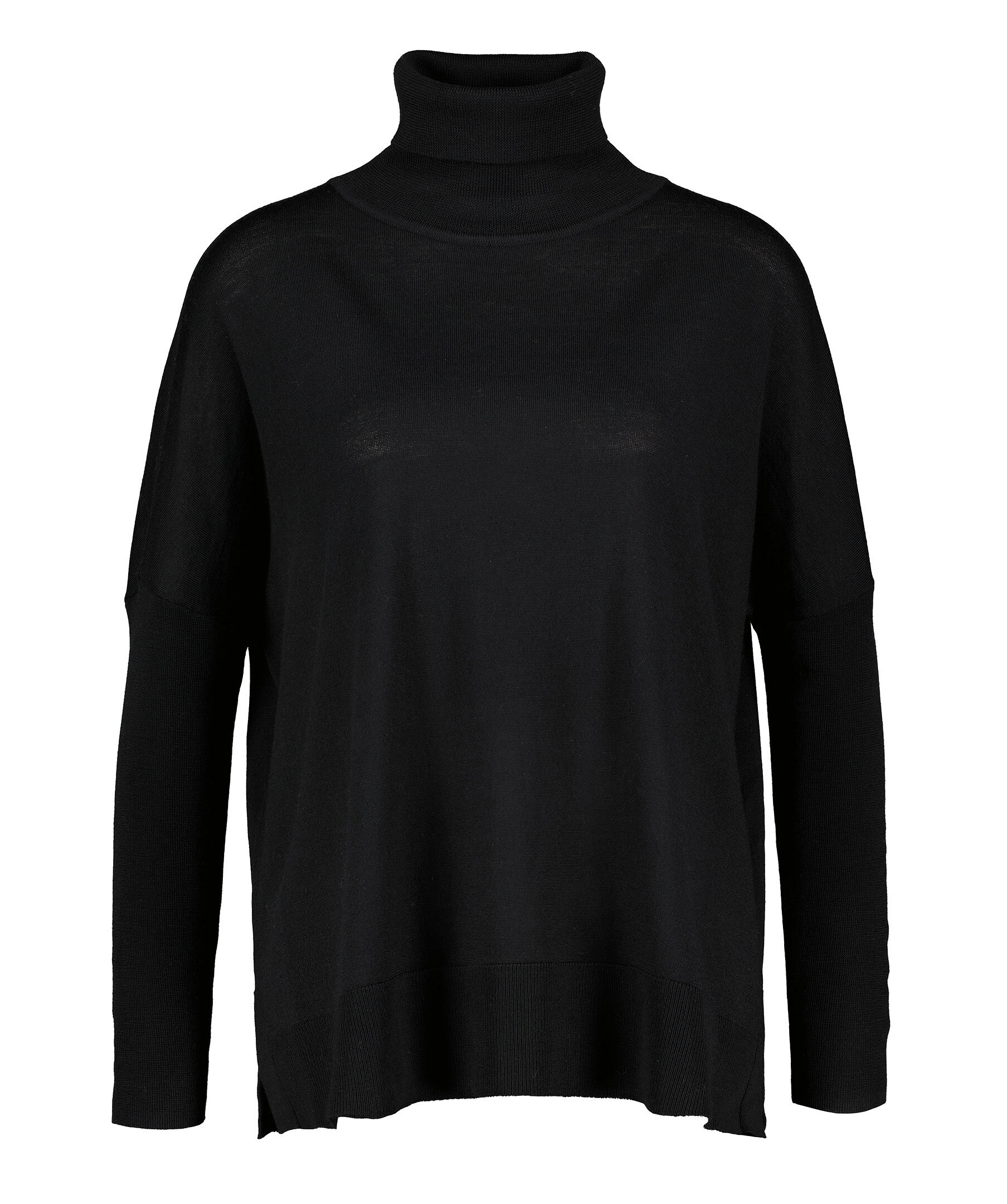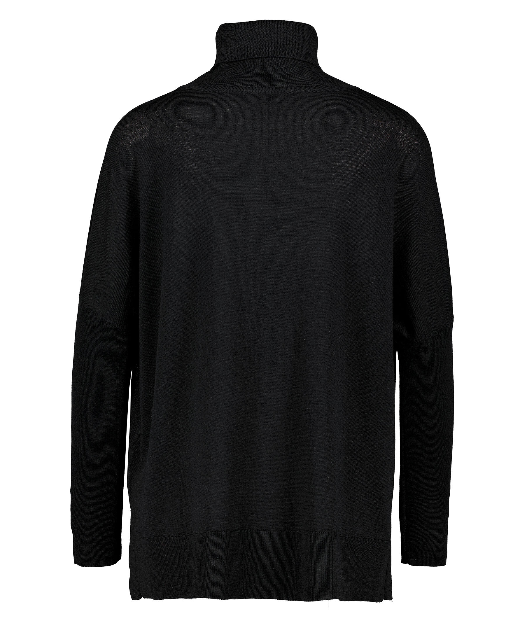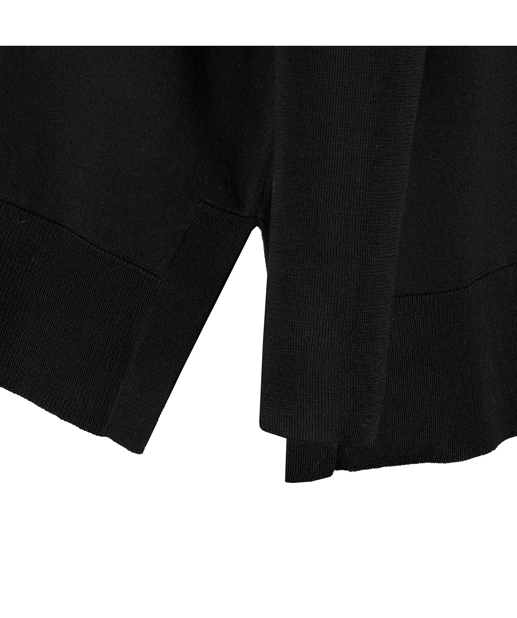Svart stickad polo tröja från My Aurora i en vid modell. Tillverkad i 100% merinoull. Korta slitsar i sidorna.