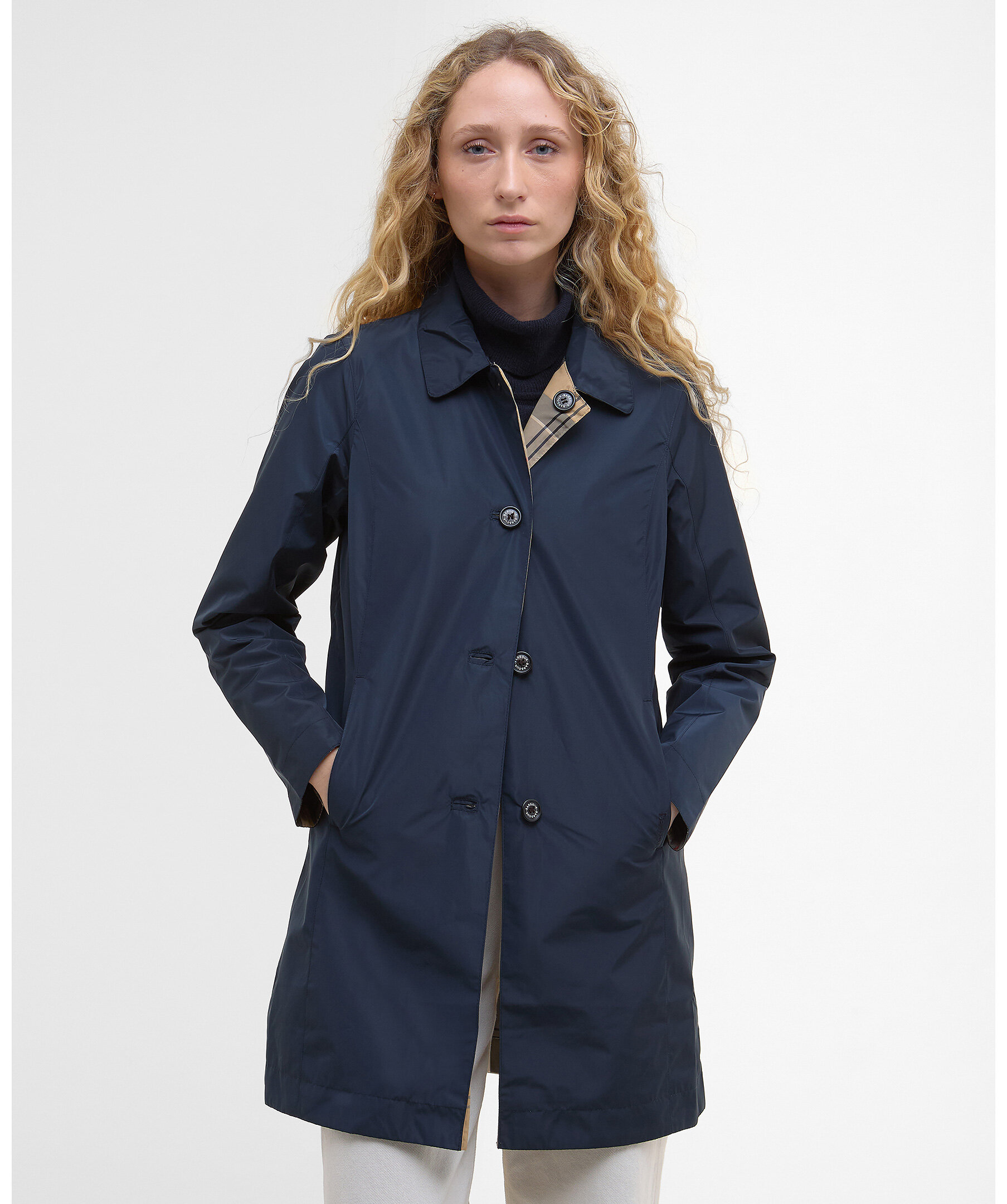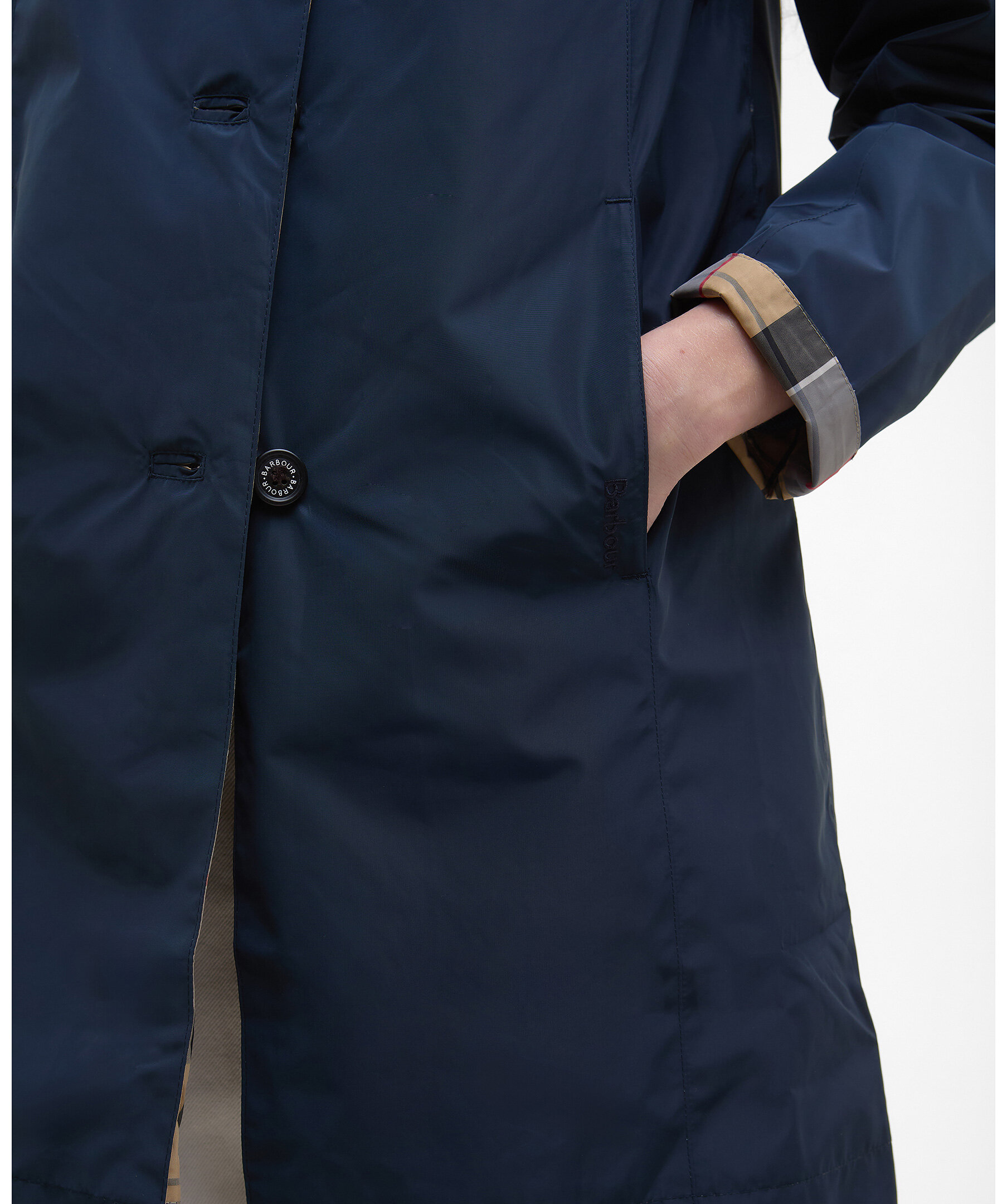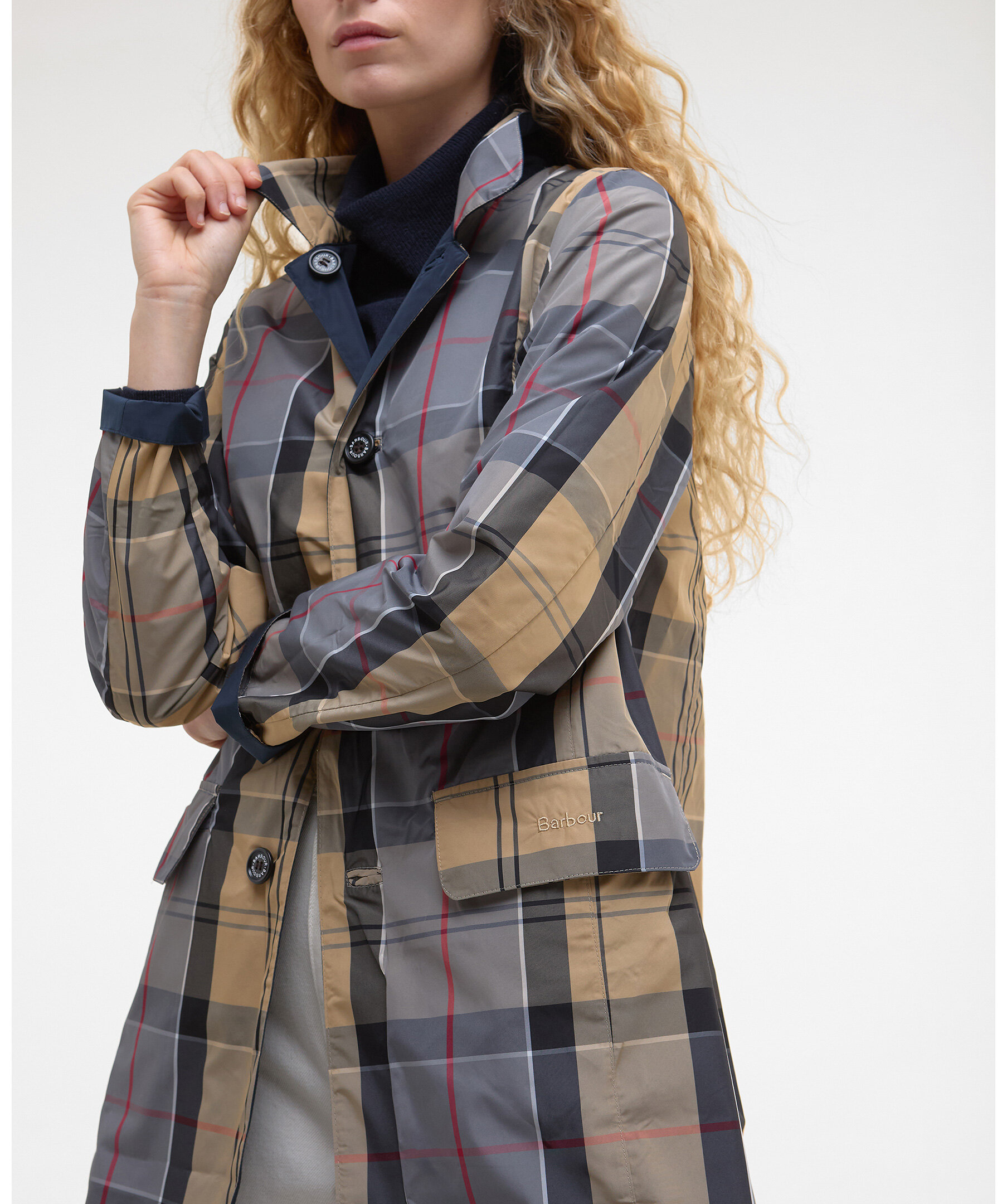 Reversibel jacka från Barbour - en lätt, showerproof jacka med två looks i ett. Jackan har en knappstängd placket och en klassisk sit‑down‑krage, samt en möjlighet att välja mellan en solid utsida eller Barbours ikoniska Dress Tartan‑mönster.